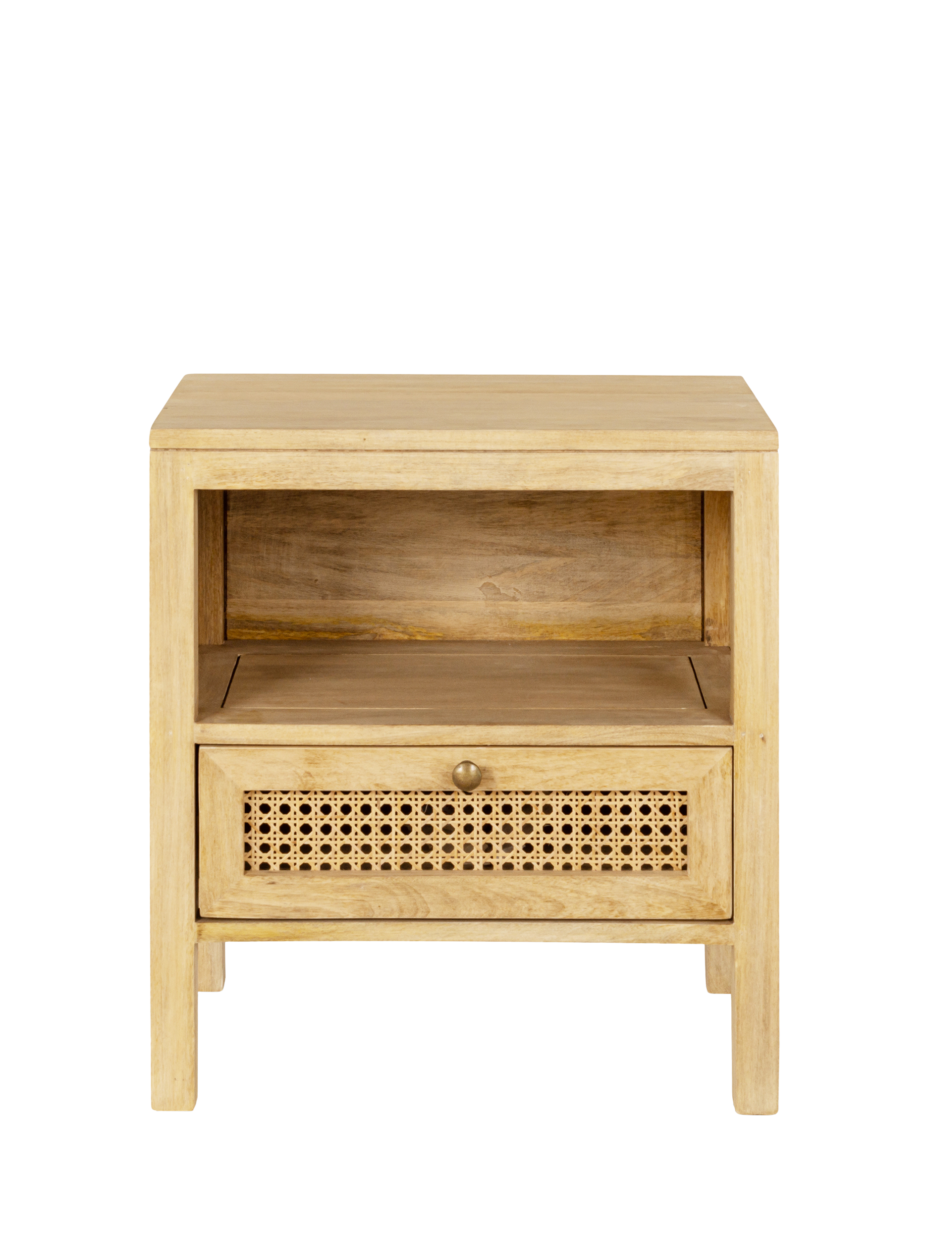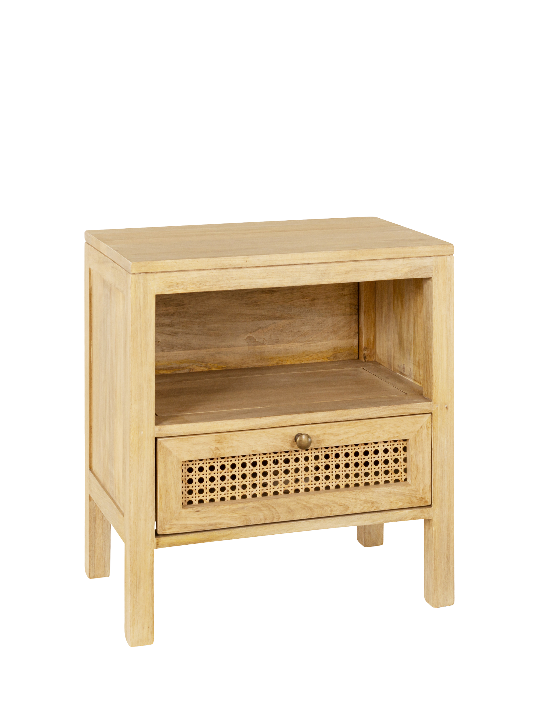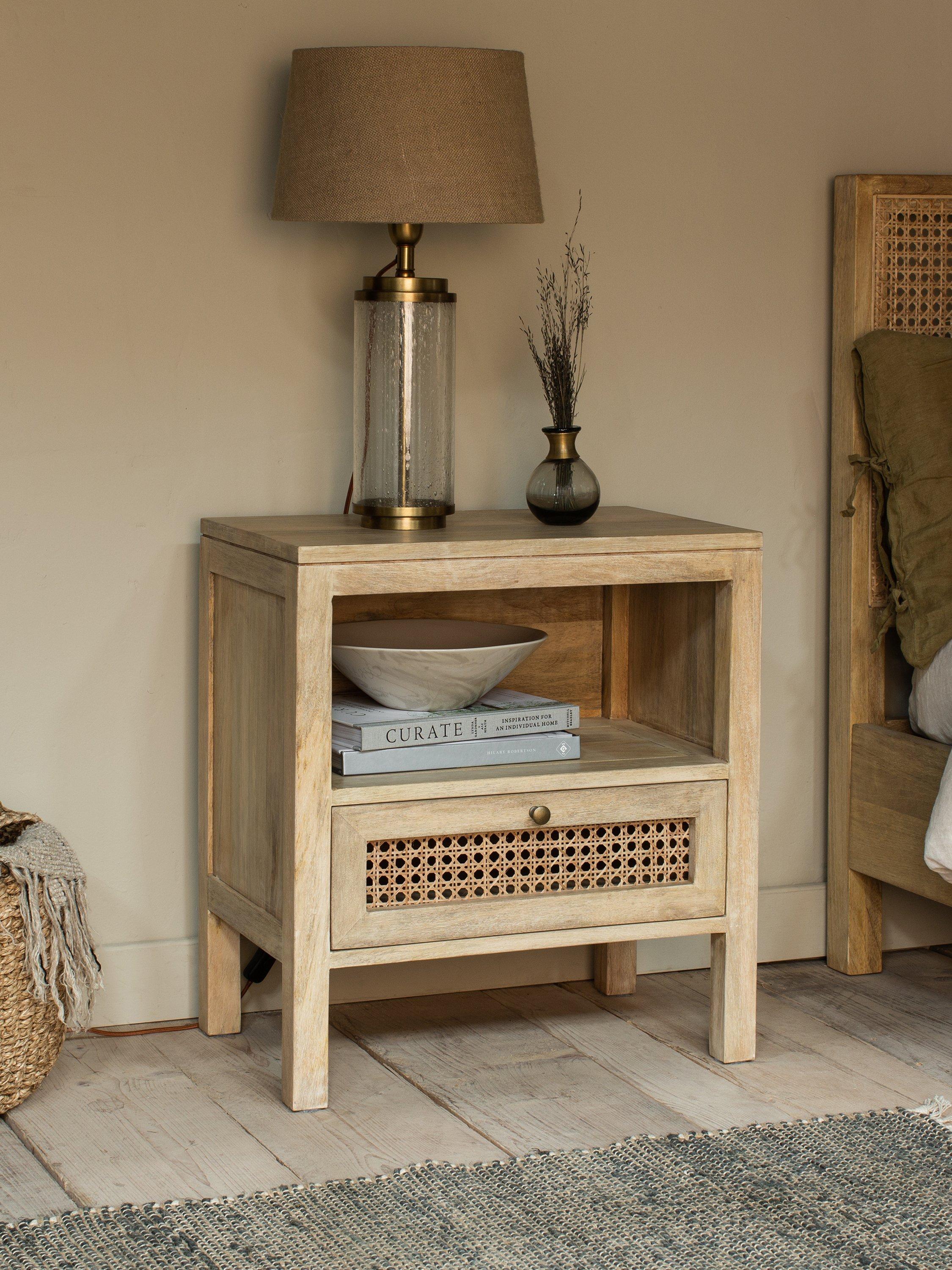 Crafted from mango wood, nkuku's Kanz bedside table will bring a warm and sophisticated style to your space. The visible wood grain gives it an appealingly organic look and feel, and the drawer front is elevated with intricately handwoven cane. Mango wood is only harvested once the tree stops bearing fruit, making it a more sustainable option to other wood types.