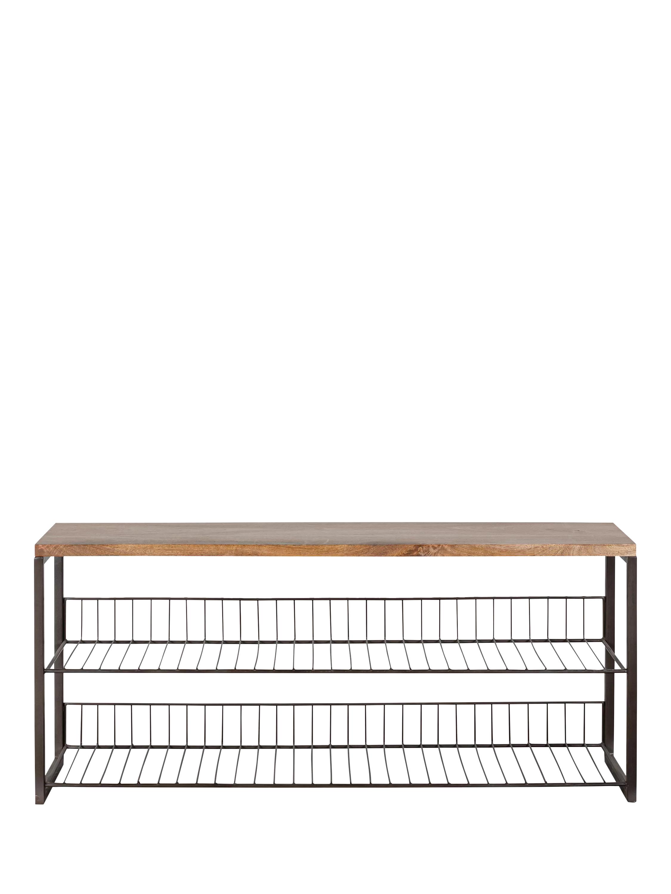 The industrial aesthetic of the low-standing Kiyoma base and shelf is balanced by the natural warmth of the mango wood top. Perfect for a hallway, utility or boot room, the clean lines and simplicity of design lend this piece a versatile look that works in almost any space.