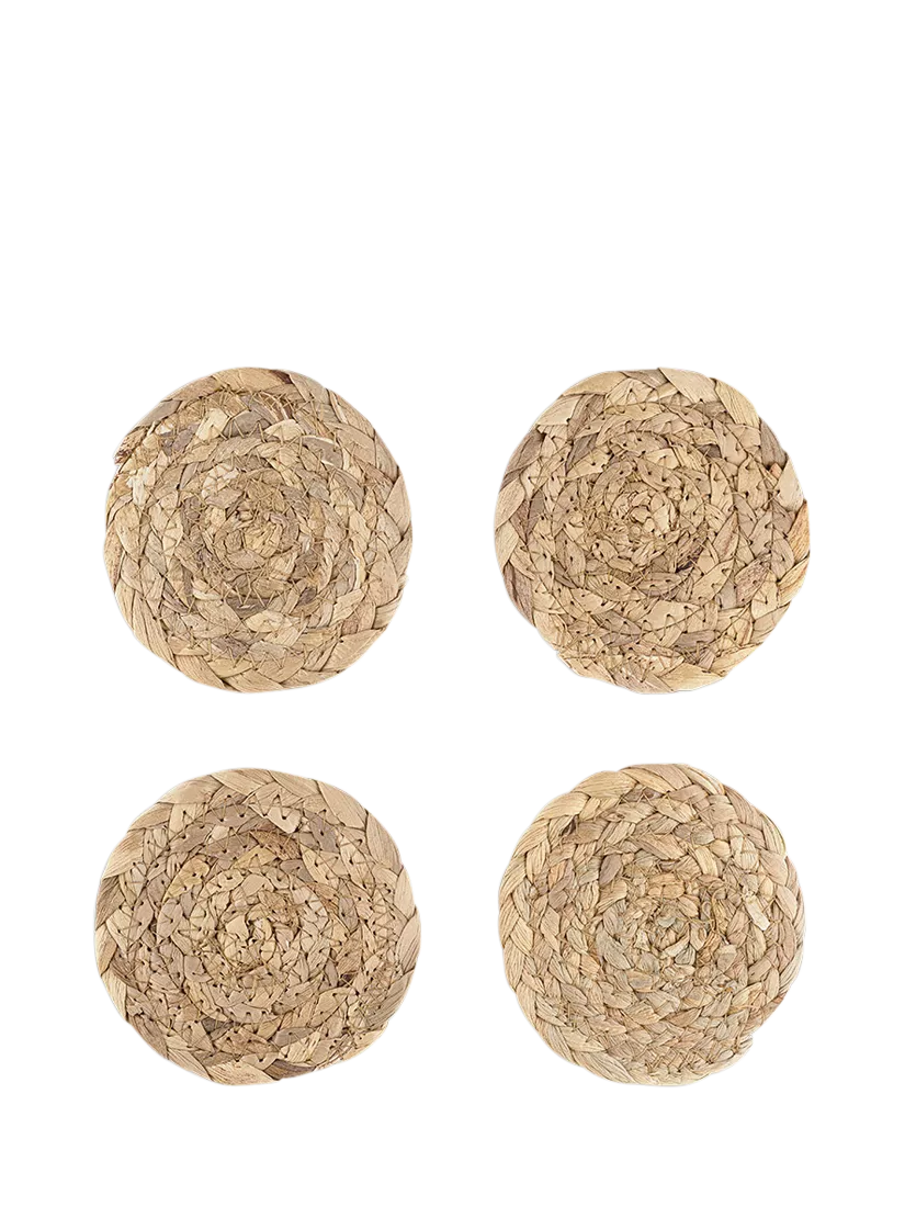 Woven from water hyacinth, these simple yet stylish Lam coasters have an organic circular shape and use the variations in colour of the dried plant material to create a simple block pattern and border.