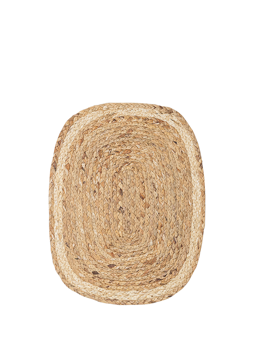 Woven from water hyacinth, these four simple yet stylish Lam table mats have an organic rectangular shape and use the variations in colour of the dried plant material to create a simple block pattern and border.