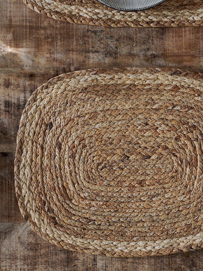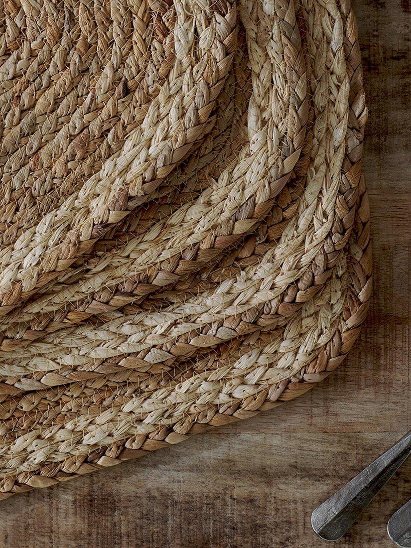 Water hyacinth is a river weed in Vietnam, where these mats are made, so the local weavers Nkuku work with are using an otherwise unwelcome species in the ecosystem.