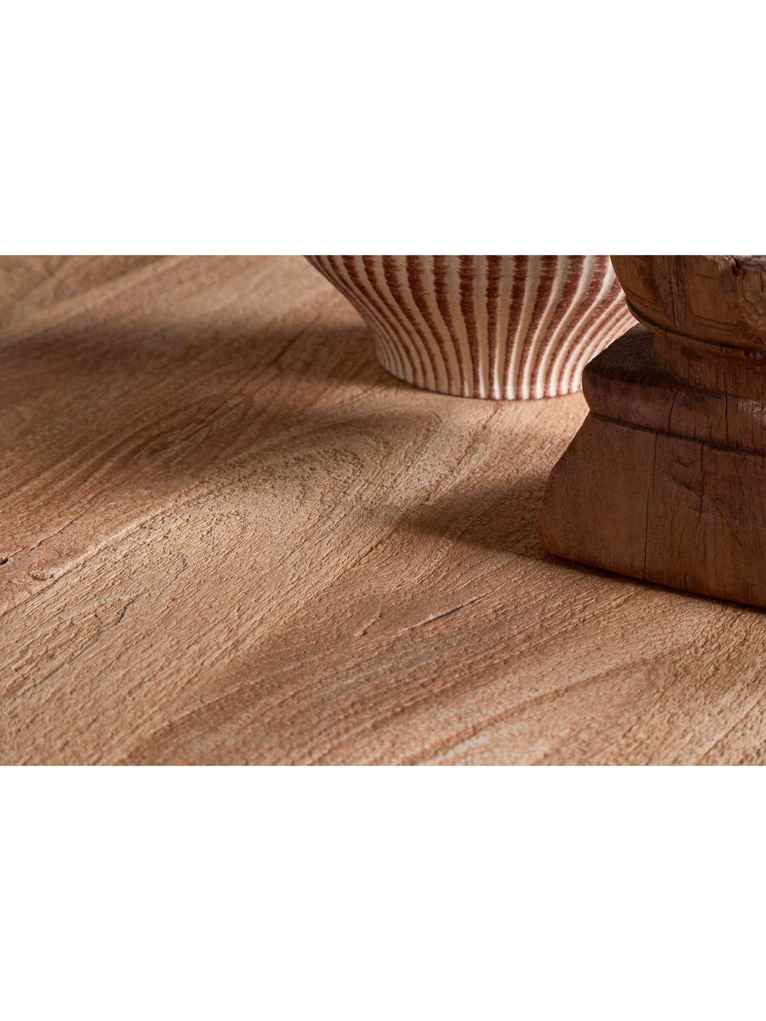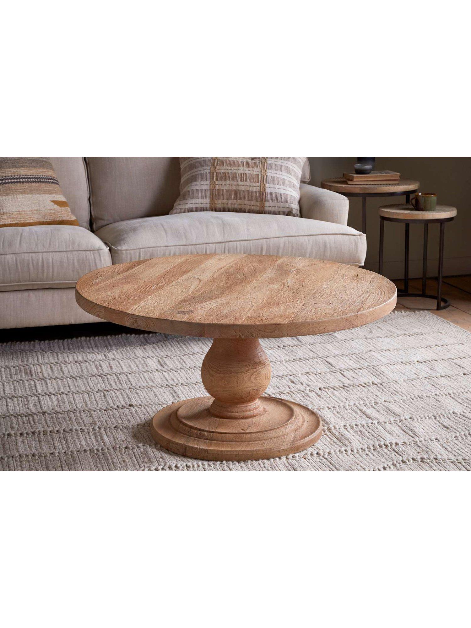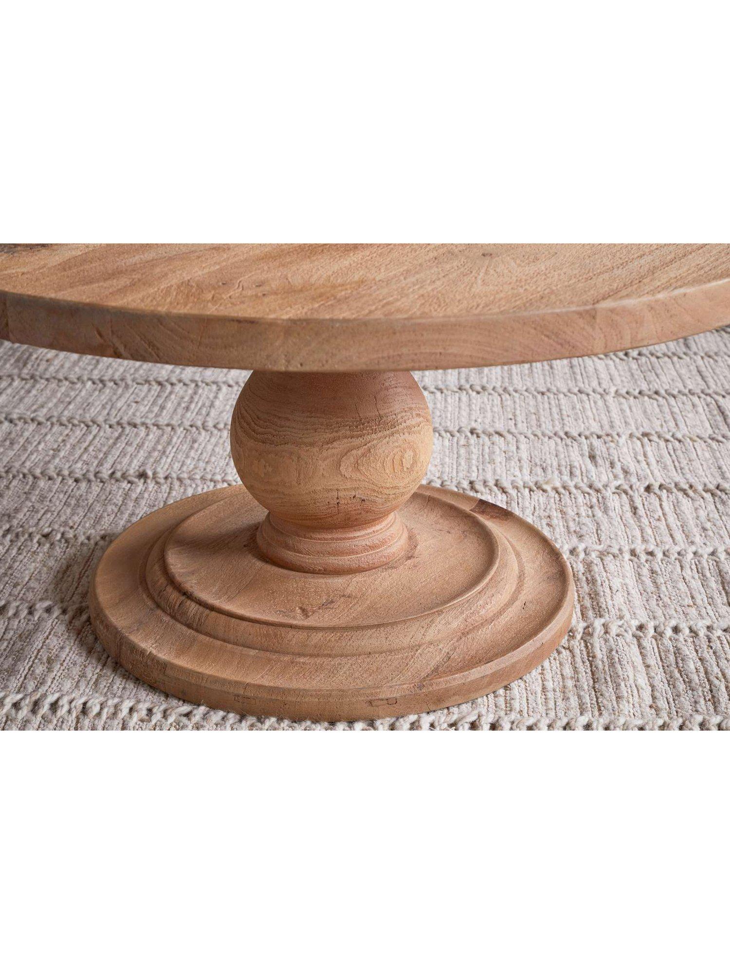 With its distinctive silhouette and generous proportions, the Laya coffee table makes a striking centrepiece. The circular tabletop rests on an elegantly shaped base, creating a balanced and sculptural form. A raw wood finish enhances the natural grain and knots, bringing warmth and texture to your space.