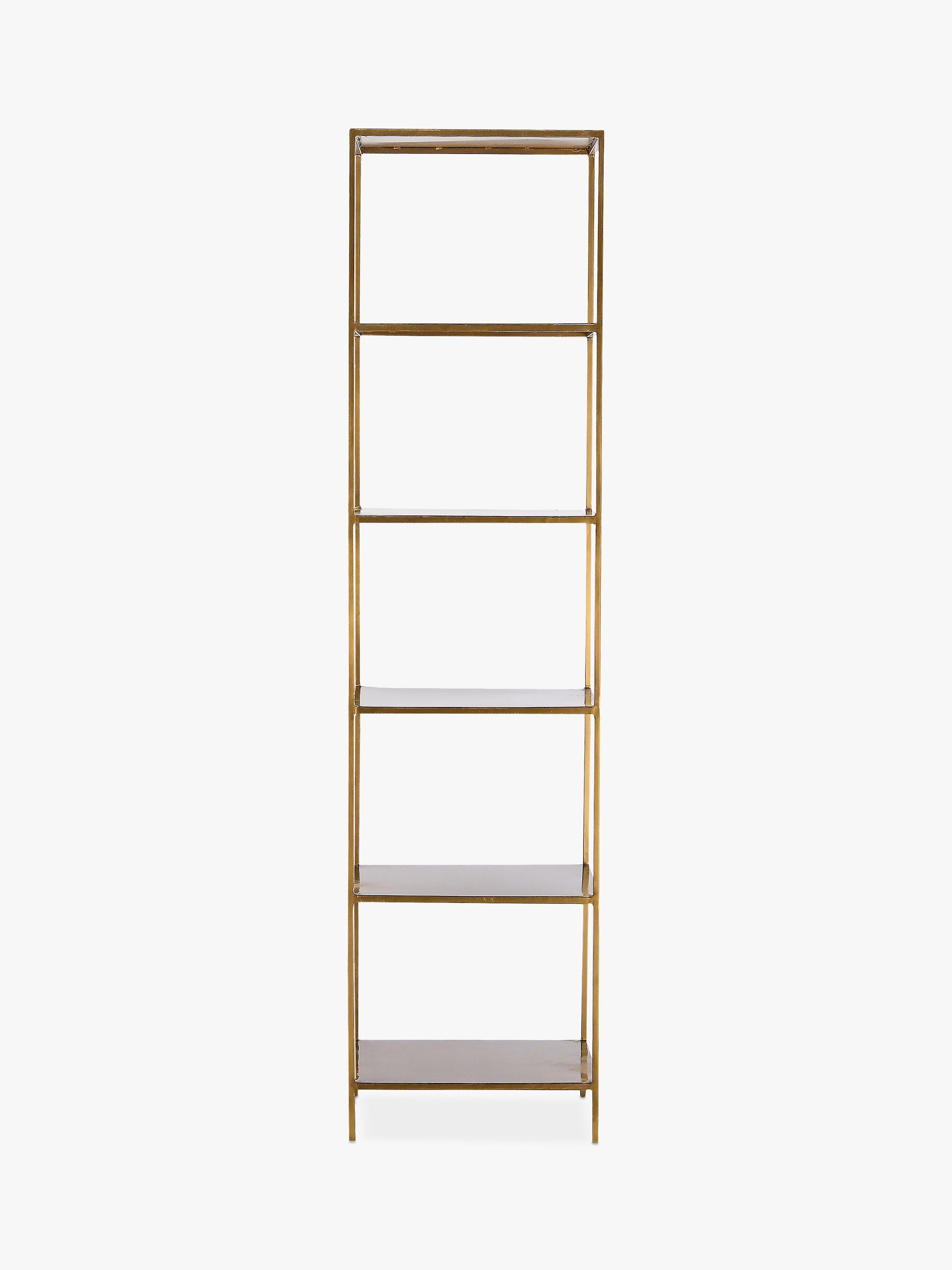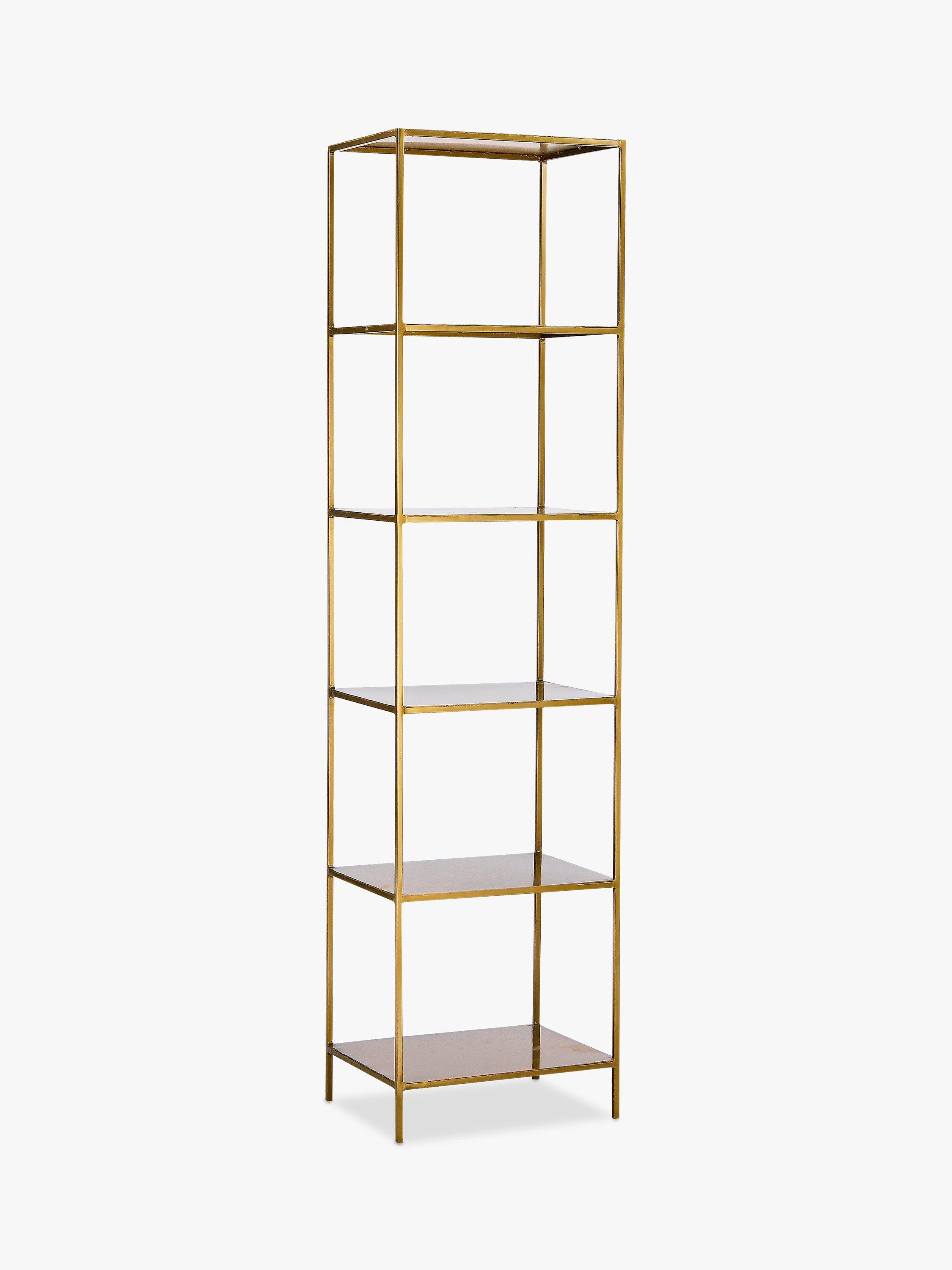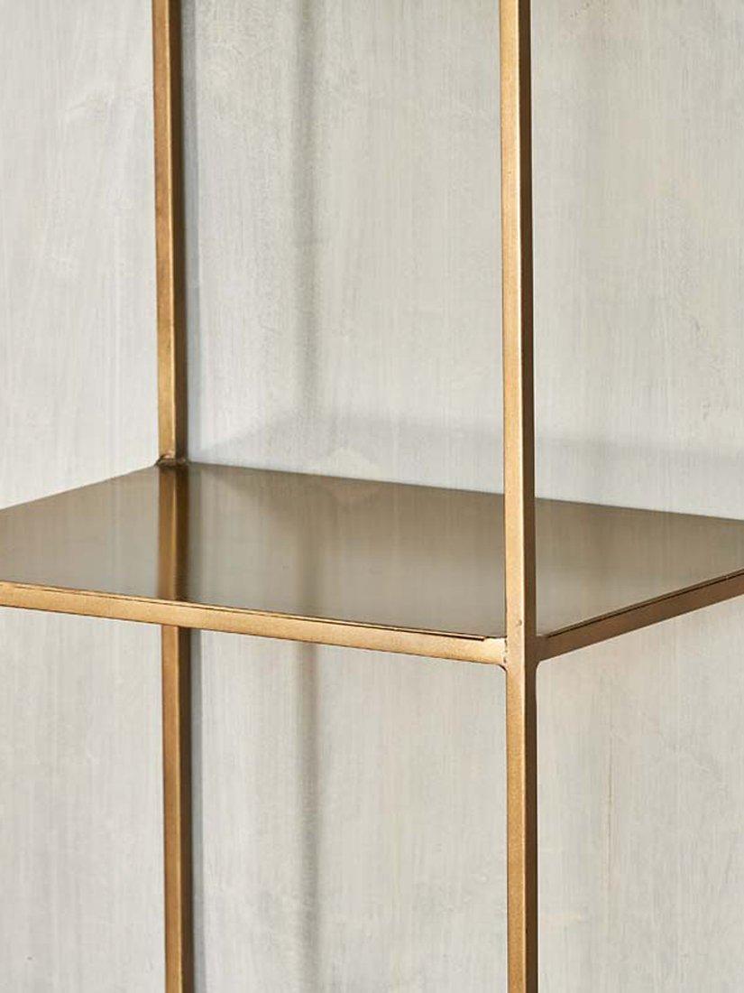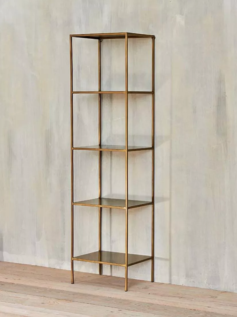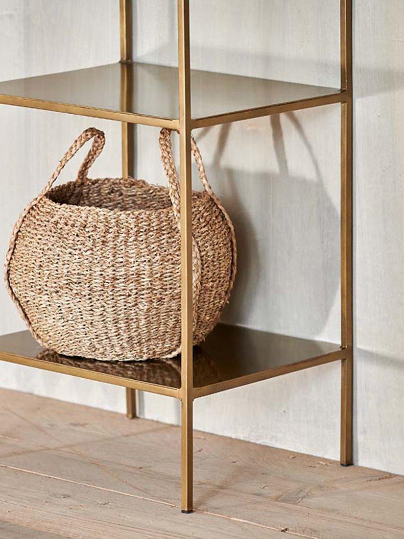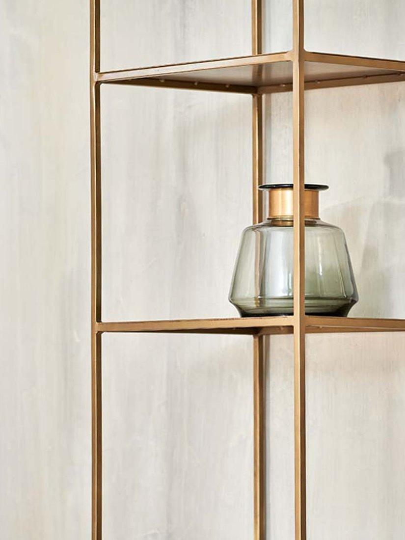 The nkuku Mahi shelving unit is made from high-quality iron in a brass finish and offers four handy shelves, creating a sturdy solution for both display and storage. nkuku works with artisans throughout the world, combining timeless design with traditional skills and natural materials.
