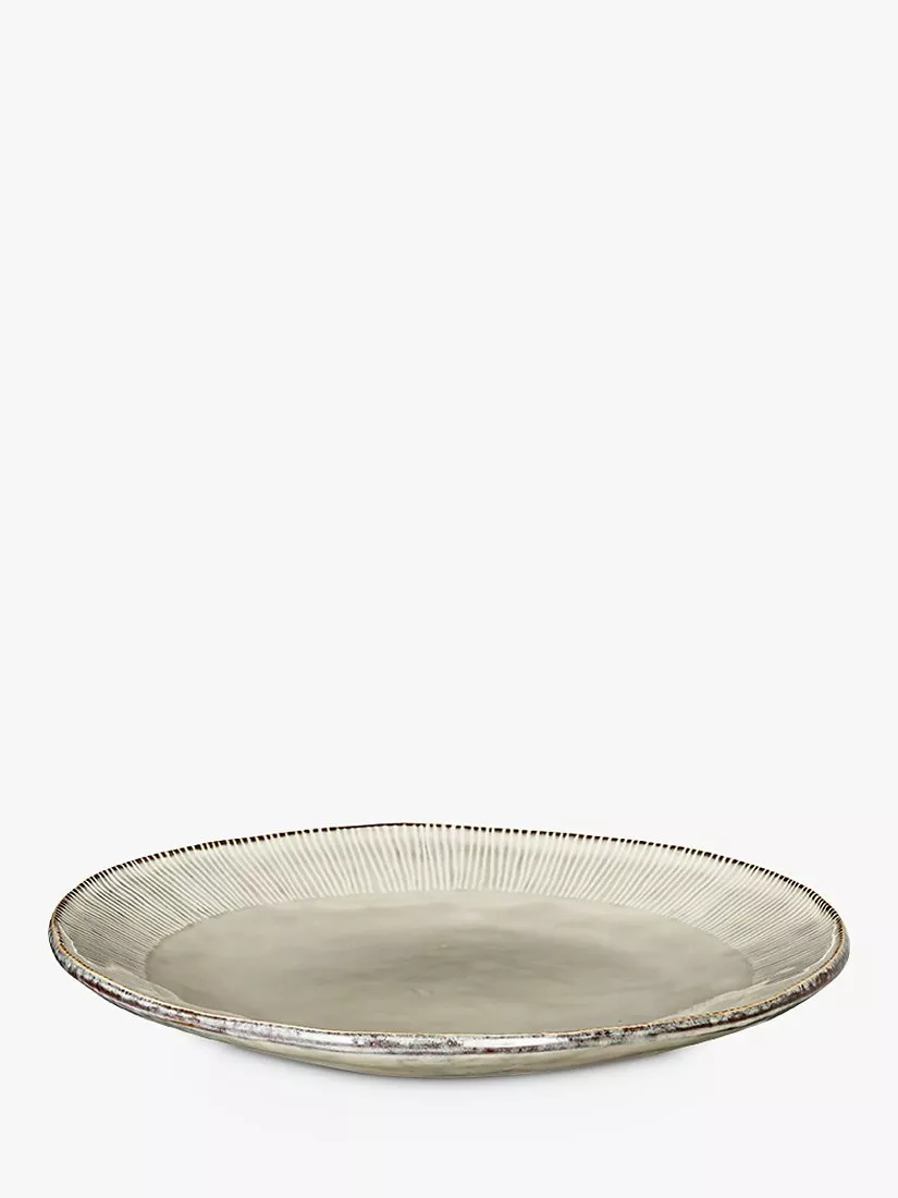 The organic shape of nkuku's Malia collection perfectly illustrates the time-honoured methods used to create it, which include the traditional potter's wheel. The stoneware has been finished with a cream reactive glaze, which responds to the heat of the kiln. The unpredictable nature of this method means each piece is unique, with different markings and colouration adding character. An elegant, hand-painted linear pattern completes the look and adds another layer of interest.