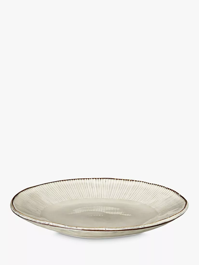 The organic shape of nkuku's Malia collection perfectly illustrates the time-honoured methods used to create it, which include the traditional potter's wheel. The stoneware has been finished with a cream reactive glaze, which responds to the heat of the kiln. The unpredictable nature of this method means each piece is unique, with different markings and colouration adding character. An elegant, hand-painted linear pattern completes the look and adds another layer of interest.