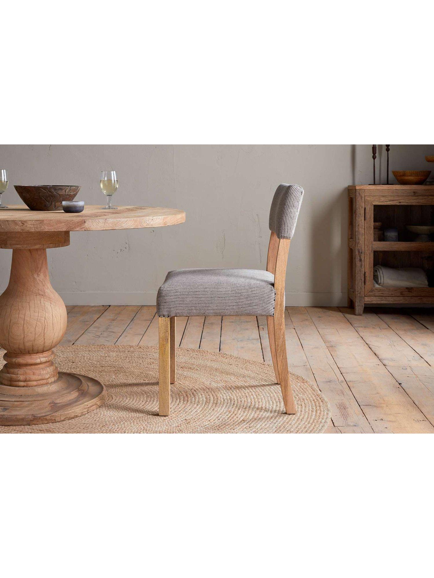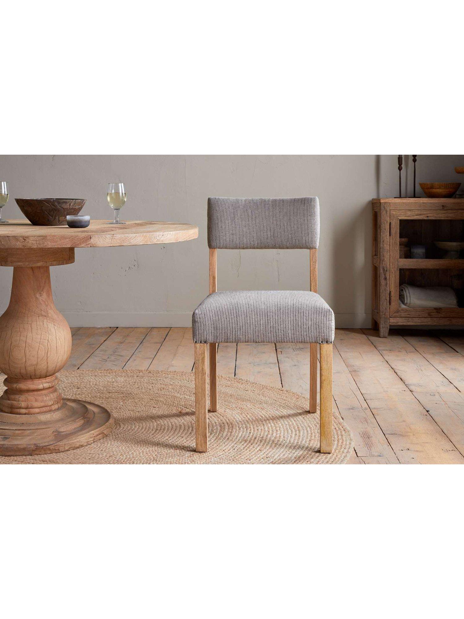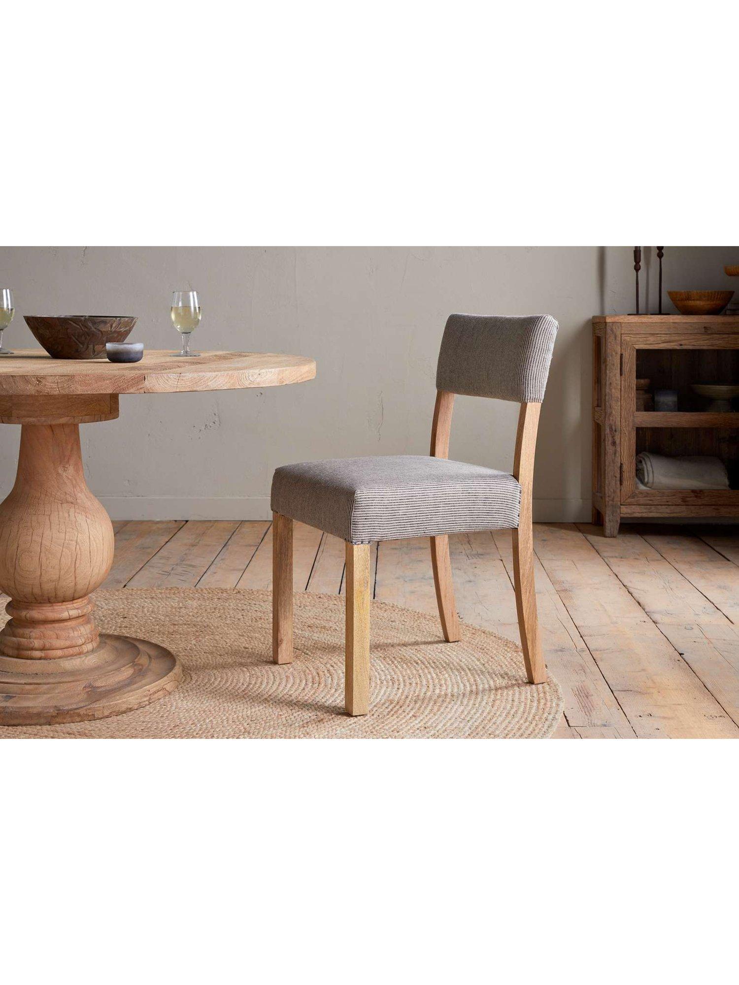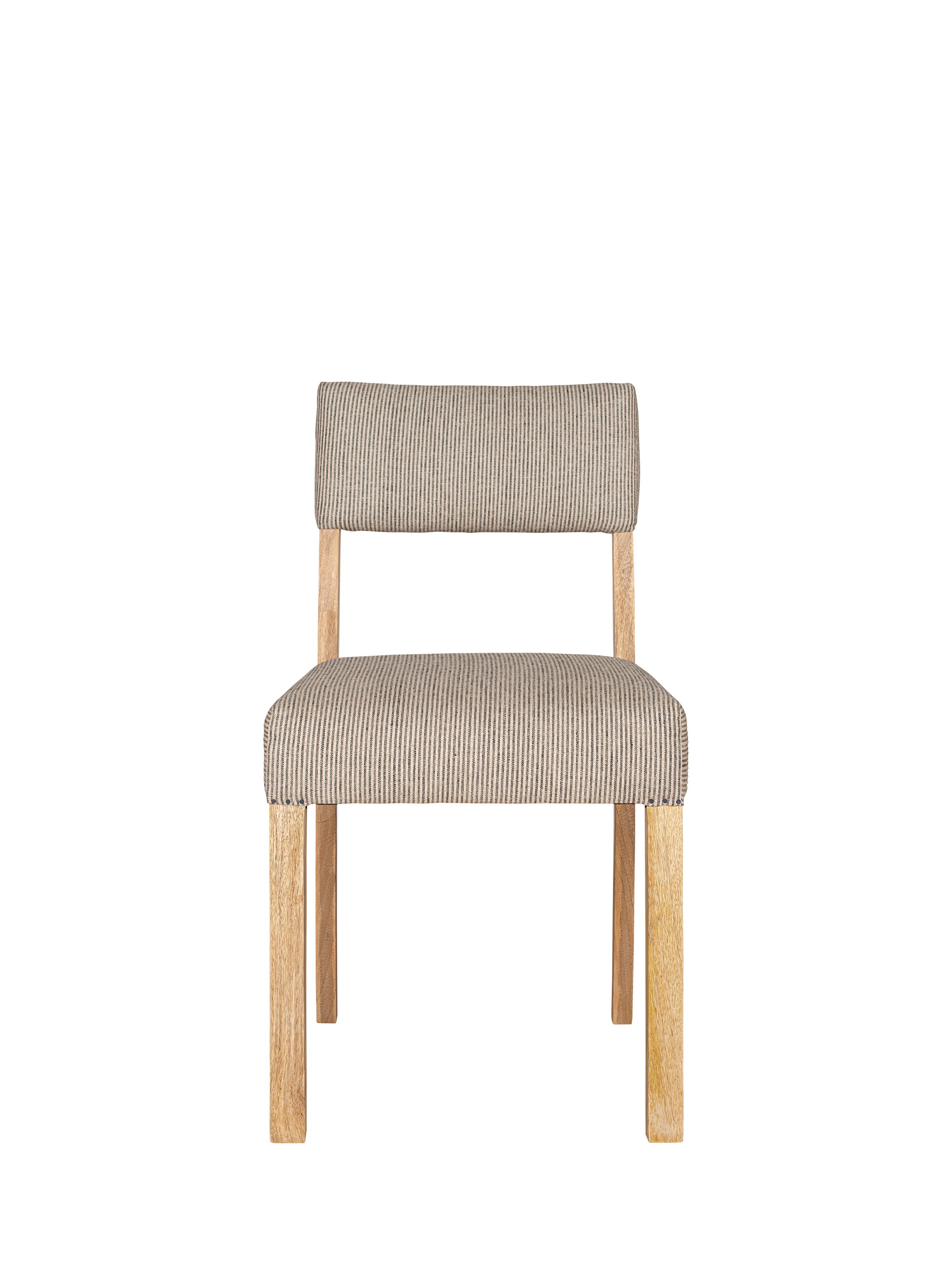 This dining chair blends soft-grey linen upholstery with a warm mango wood frame for a refined, relaxed feel. The cushioned seat offers lasting comfort, while the clean lines and neutral palette make it an effortless match for a range of interiors.
