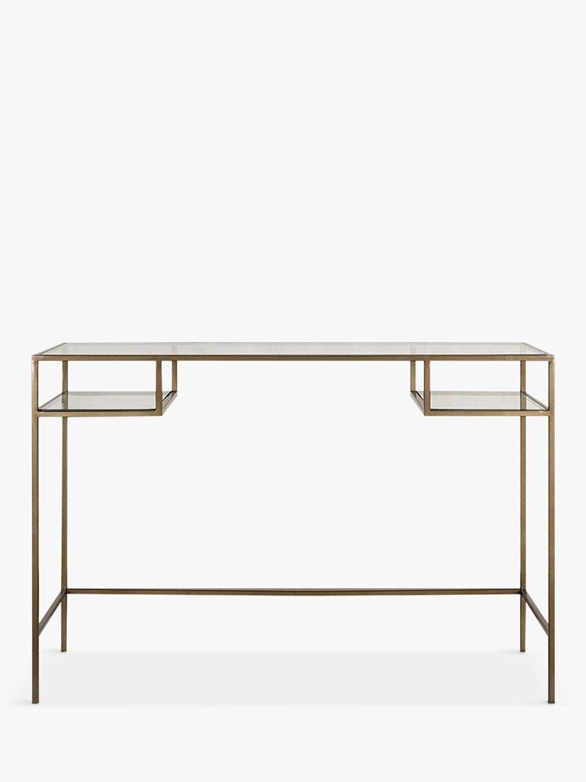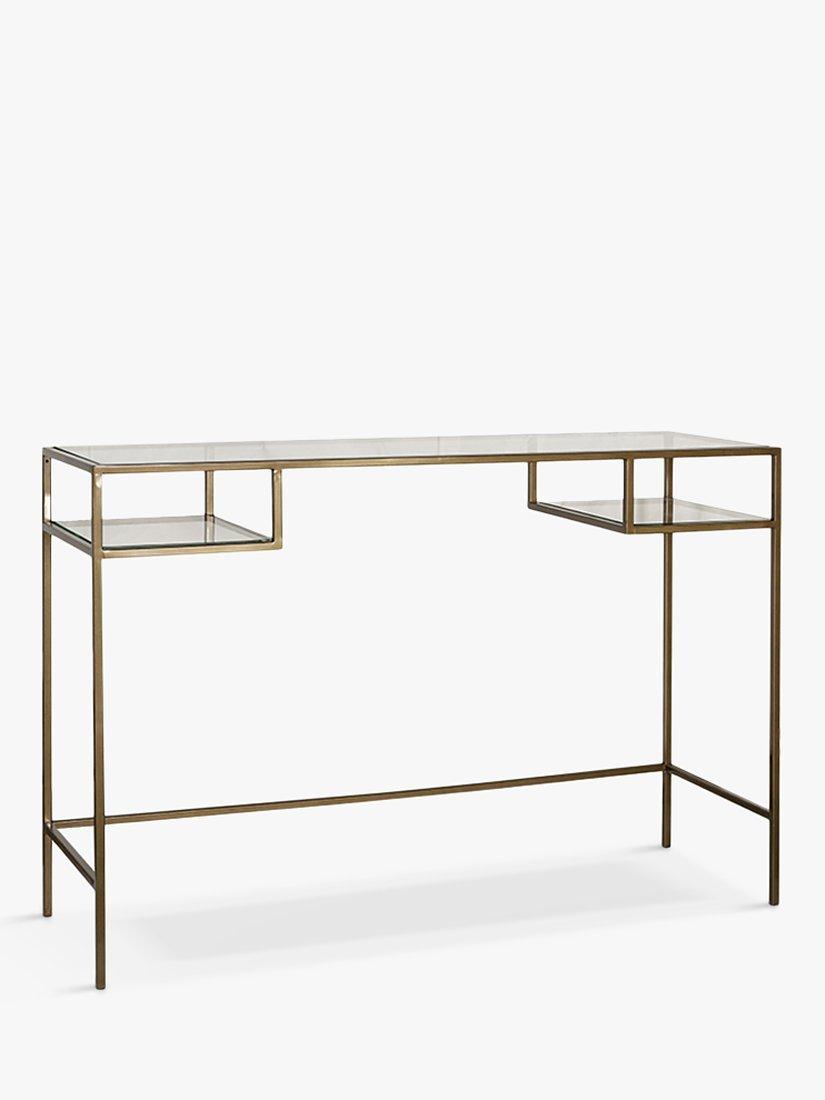 The Nkuku Nakuru console table has two practical glass compartments that are perfect for storing your belongings, leaving the top clear for lamps or decorative items.