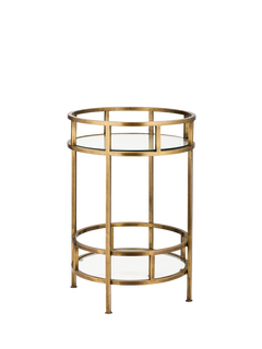 The stylish and sturdy iron framework has two practical levels. The lower is perfect for holding bottles and drinks accessories and the top for glasses and cocktail shakers. The table top is a crafted from glass.