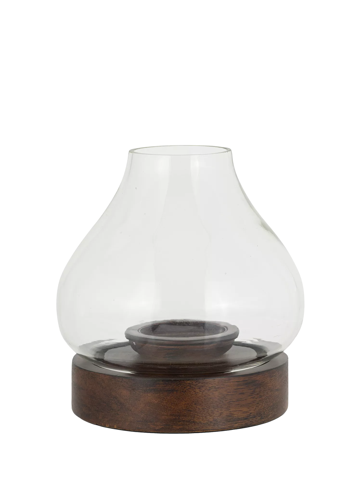 Perfect for atmospheric evenings, our stylish Naryla lantern has an elegant neck that slopes into a generous organic form and sits perfectly in its solid mango wood base. The contrasting glass and wood design creates a wonderfully tactile piece that brings understated style to a living space. Display on a sideboard or as a centre piece to a table and style with our rustic pillar candles.