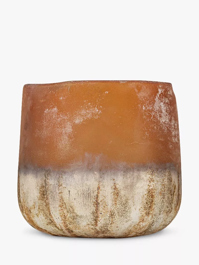 A classic nkuku Ngolo tealight holder with warming hues and textured rustic finish. Created from recycled glass, skilfully hand blown into striking organic forms. When lit, they add a beautiful soft glow for an inviting living space exuding peace and tranquillity.