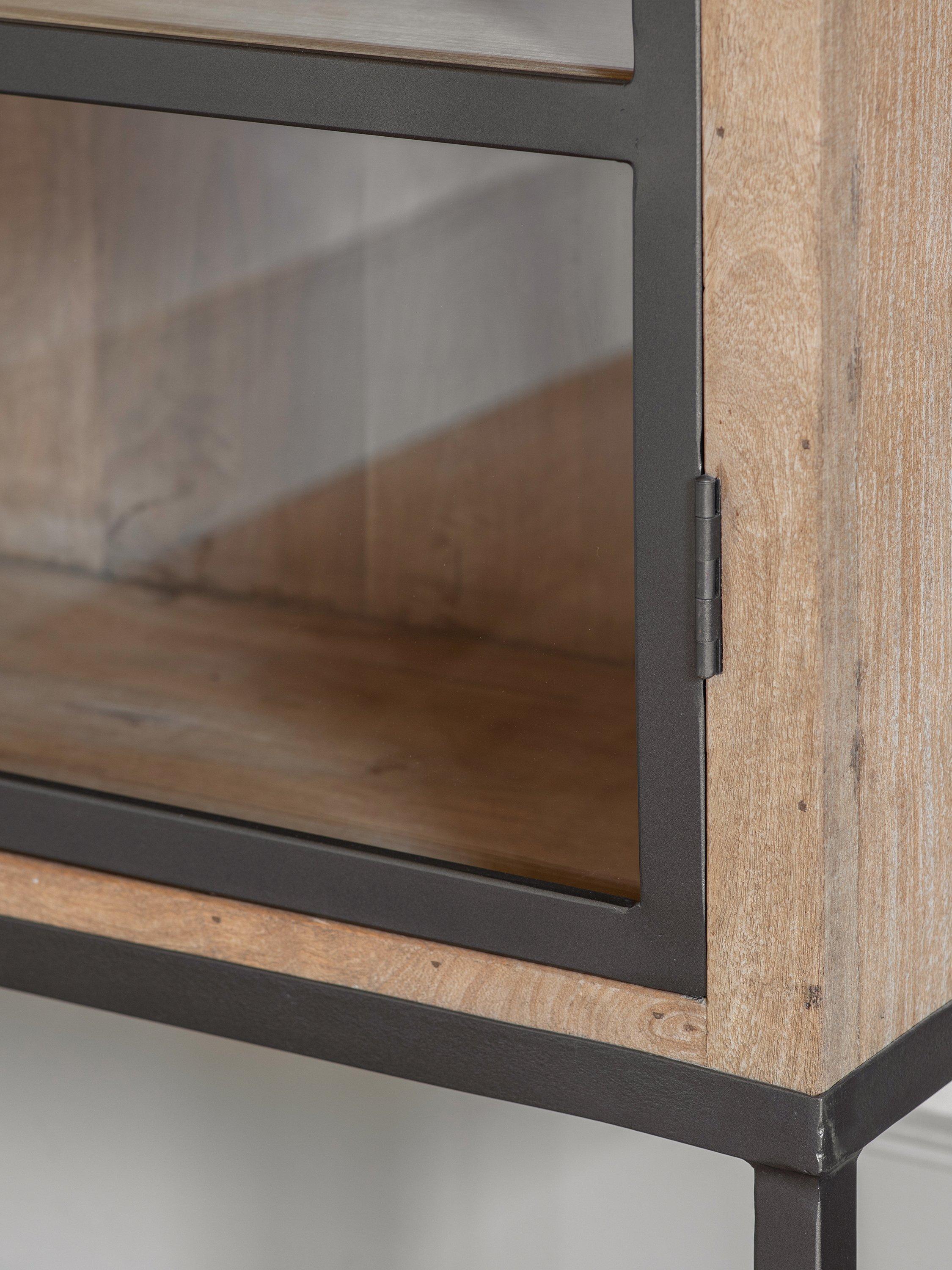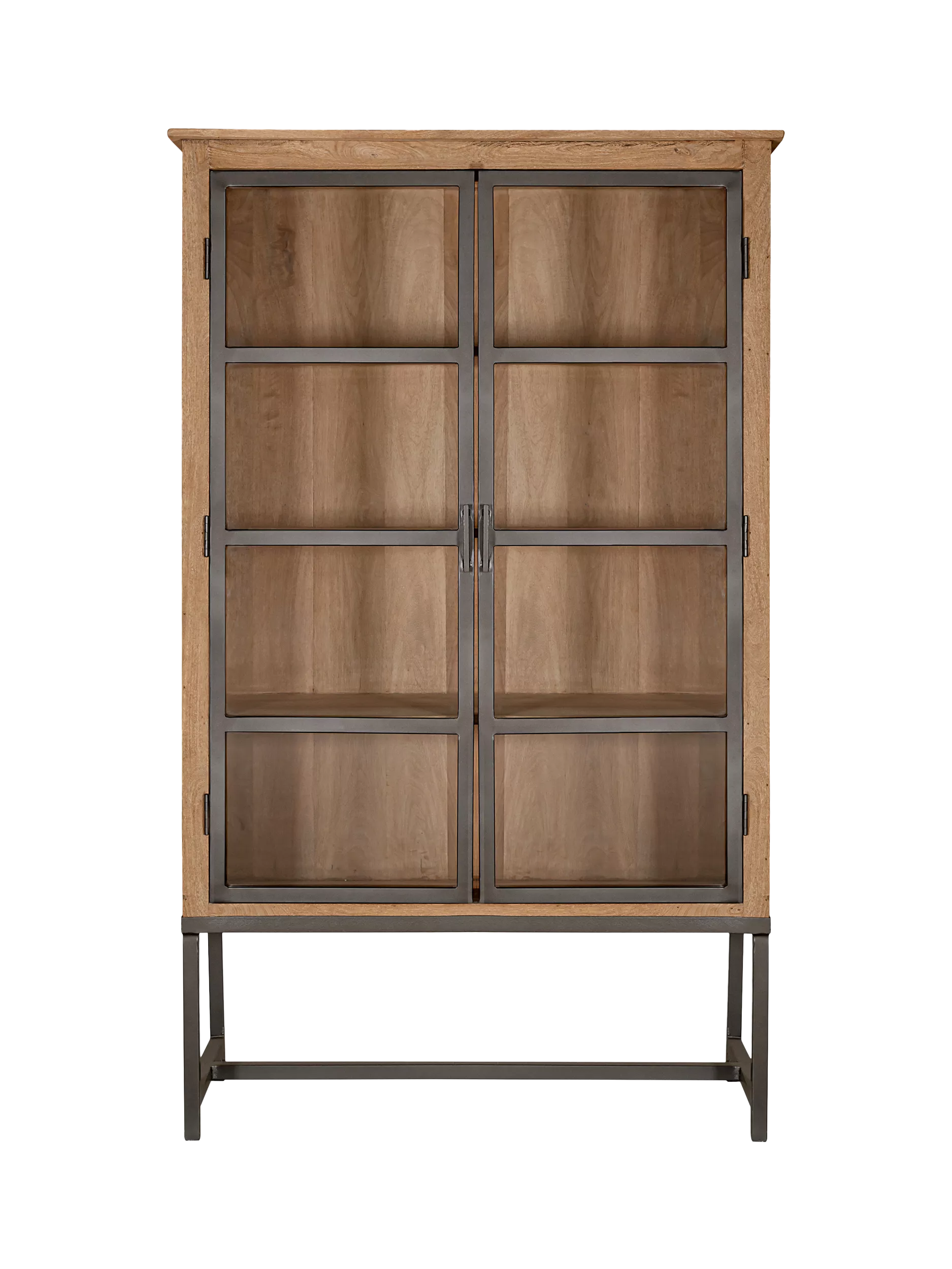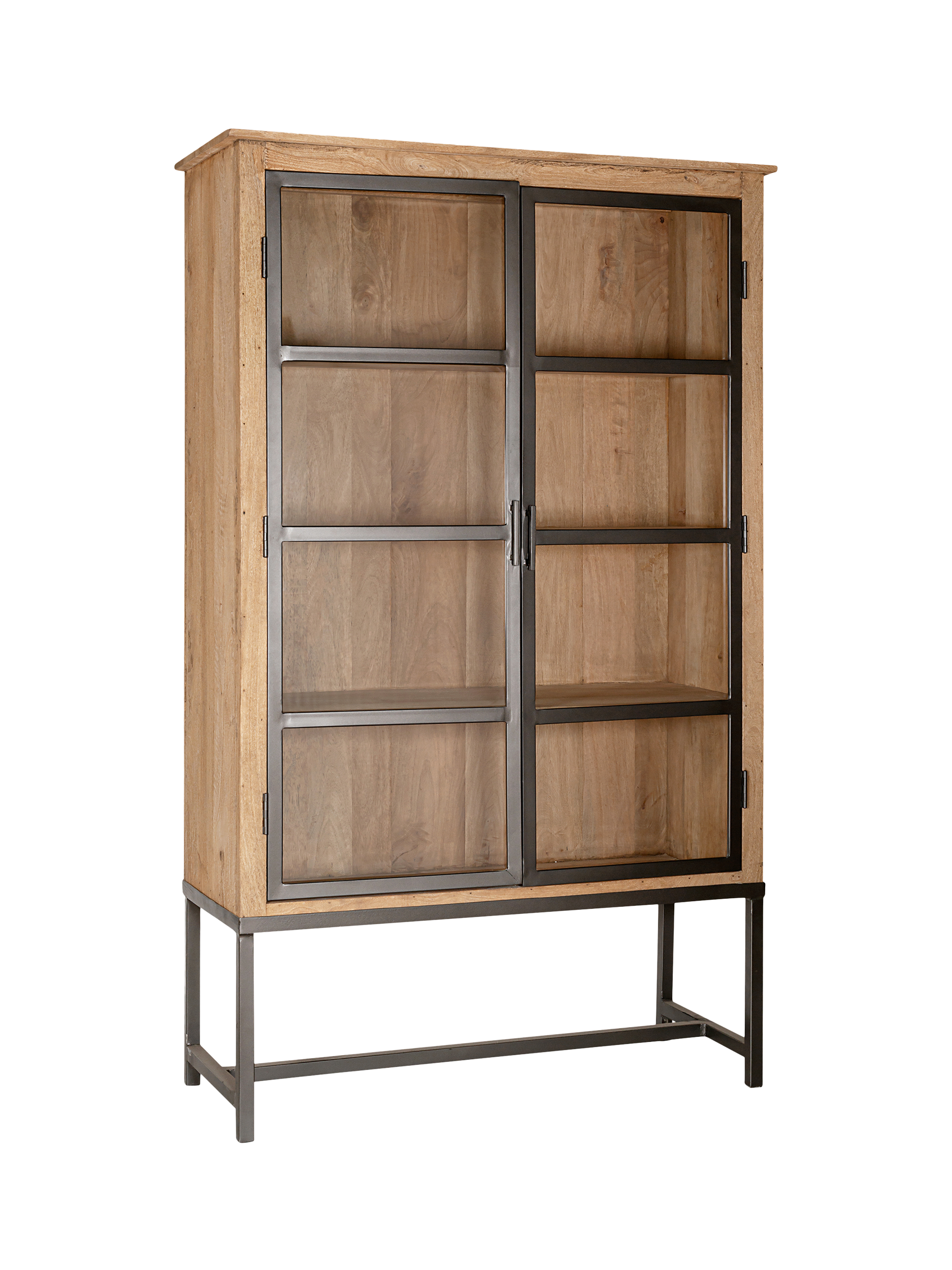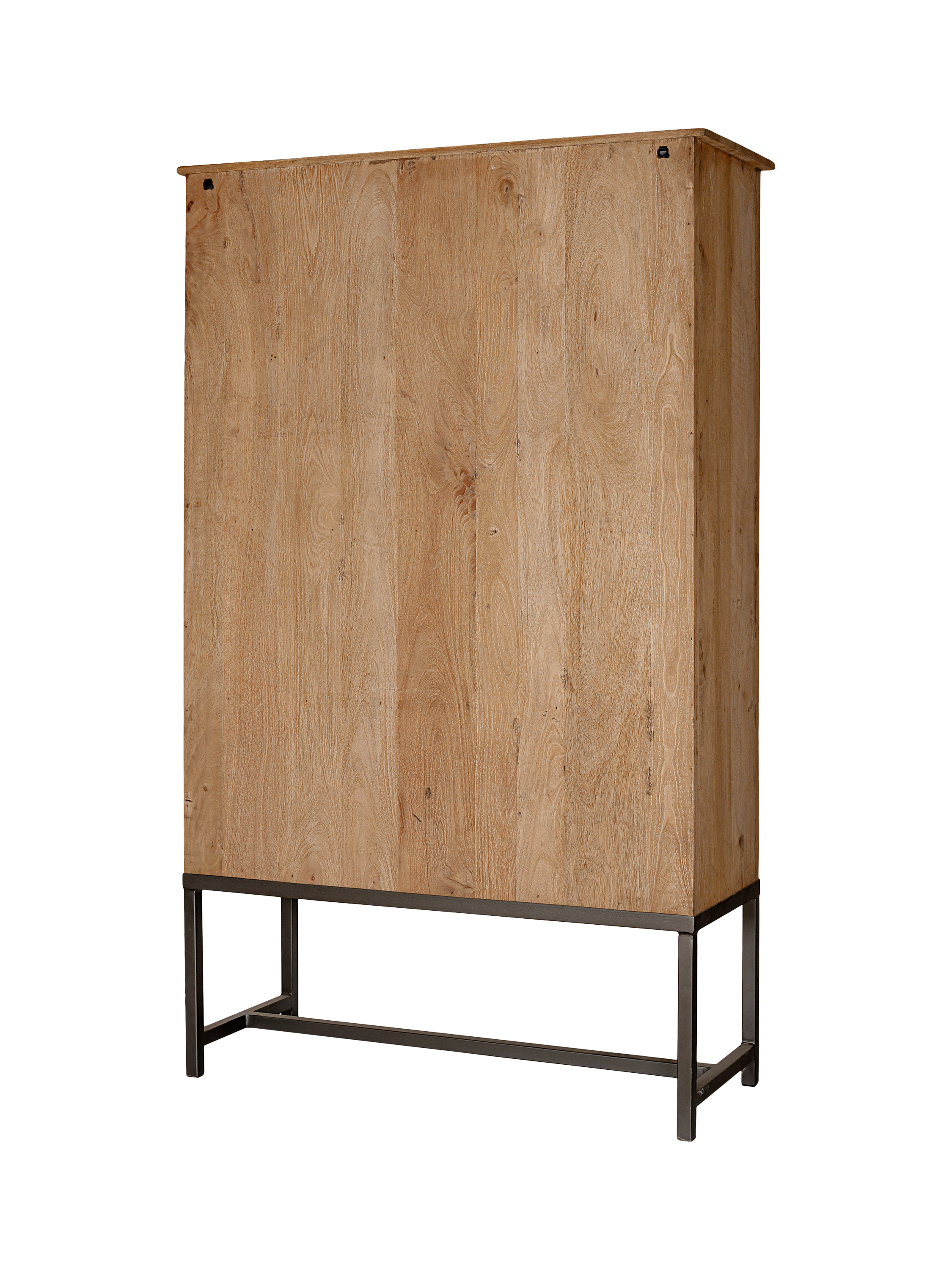 The elegant Nirvi cabinet has an antique black iron structure for an industrial aesthetic which is complemented by the warm natural tones of the mango wood cabinetry. Perfect for a hallway or living space to curate your choicest books and objet d’art, or in a kitchen as a handsome stand-alone crockery cupboard.