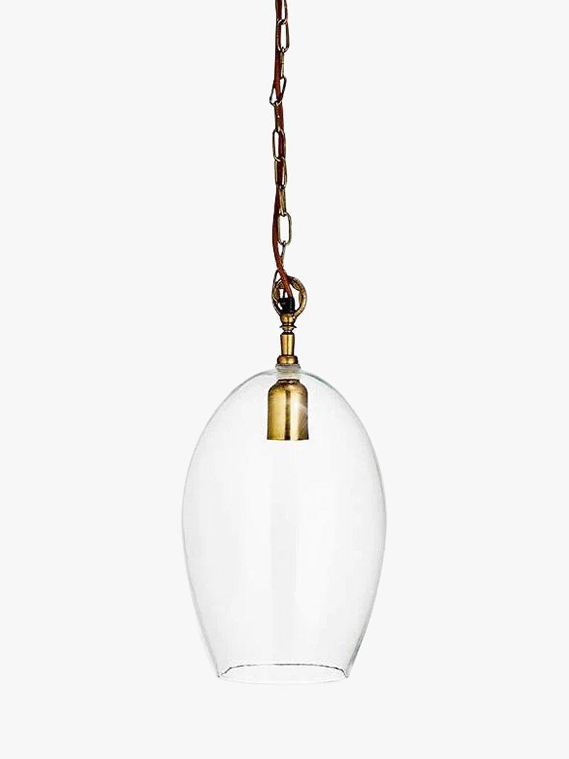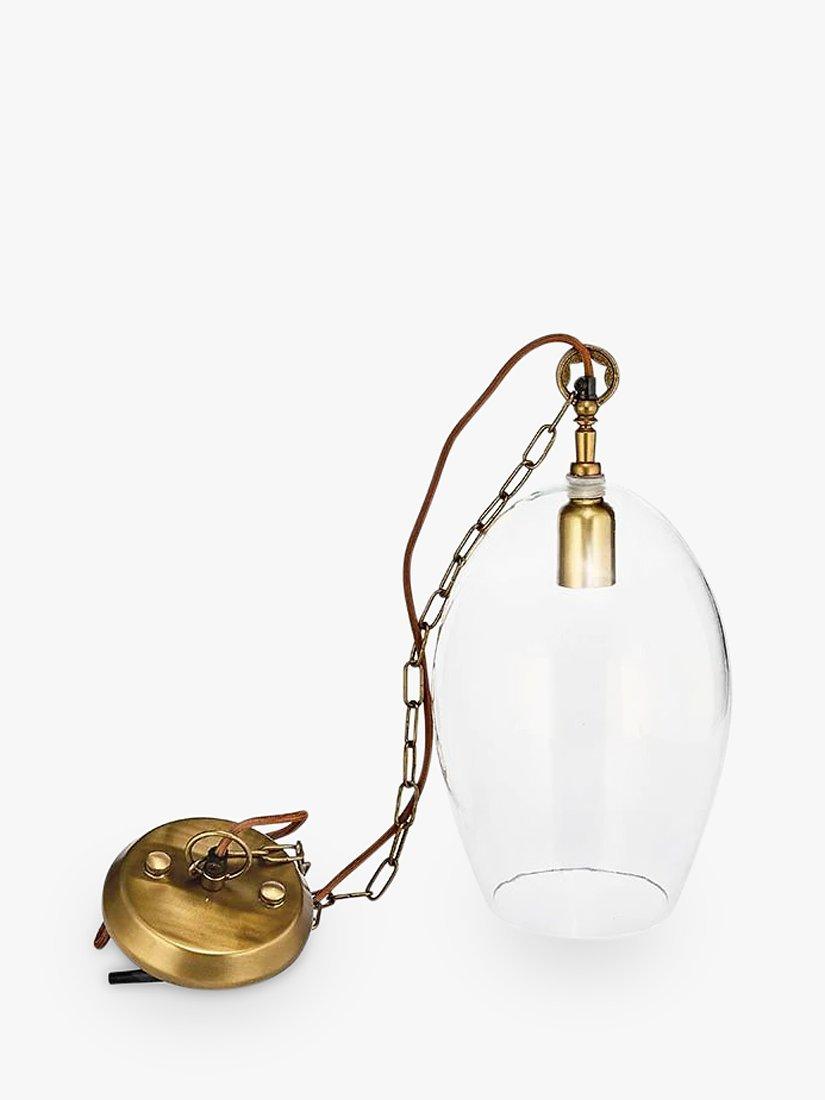 The nkuku Otoro pendant light creates an elegant, modern look. Made from recycled glass with a brass ceiling rose adding a pop of colour, it's finished with a brown braided cord. The light is handmade in India by skilled artisans using traditional techniques.