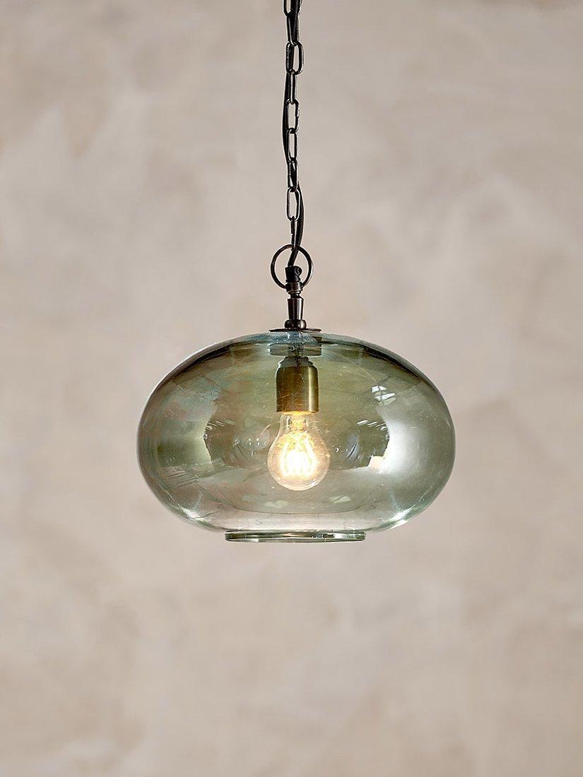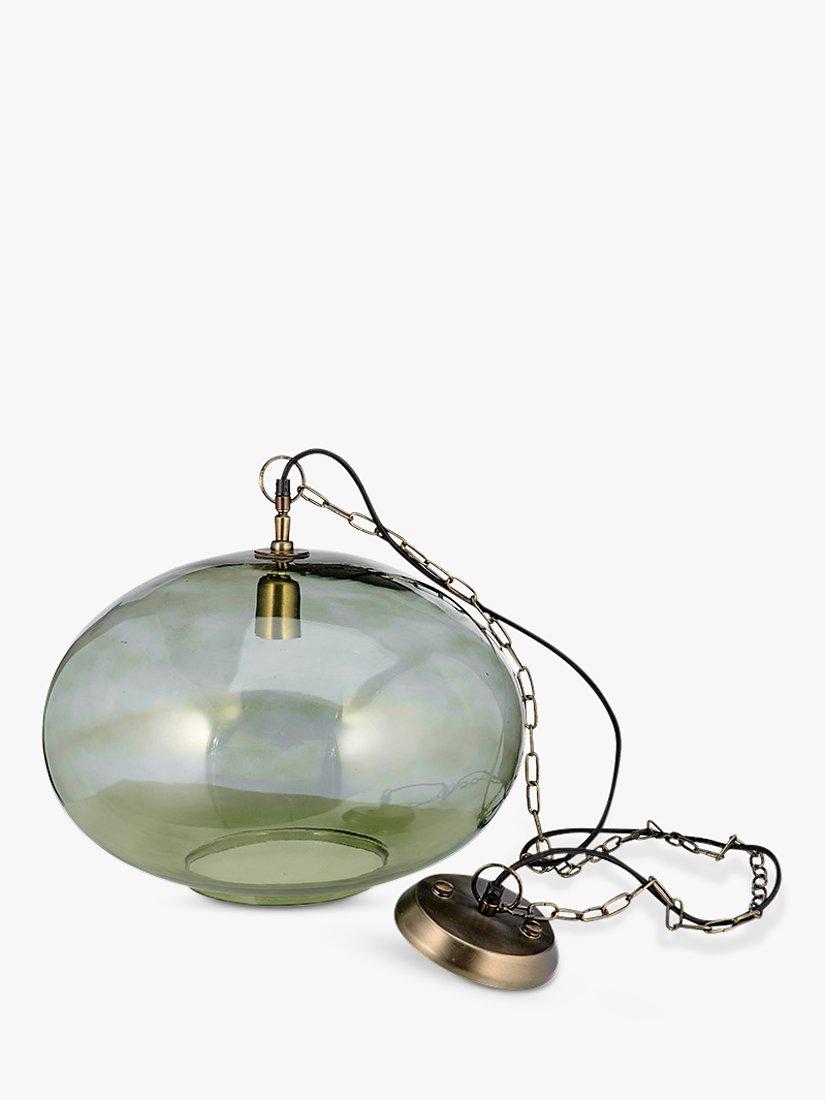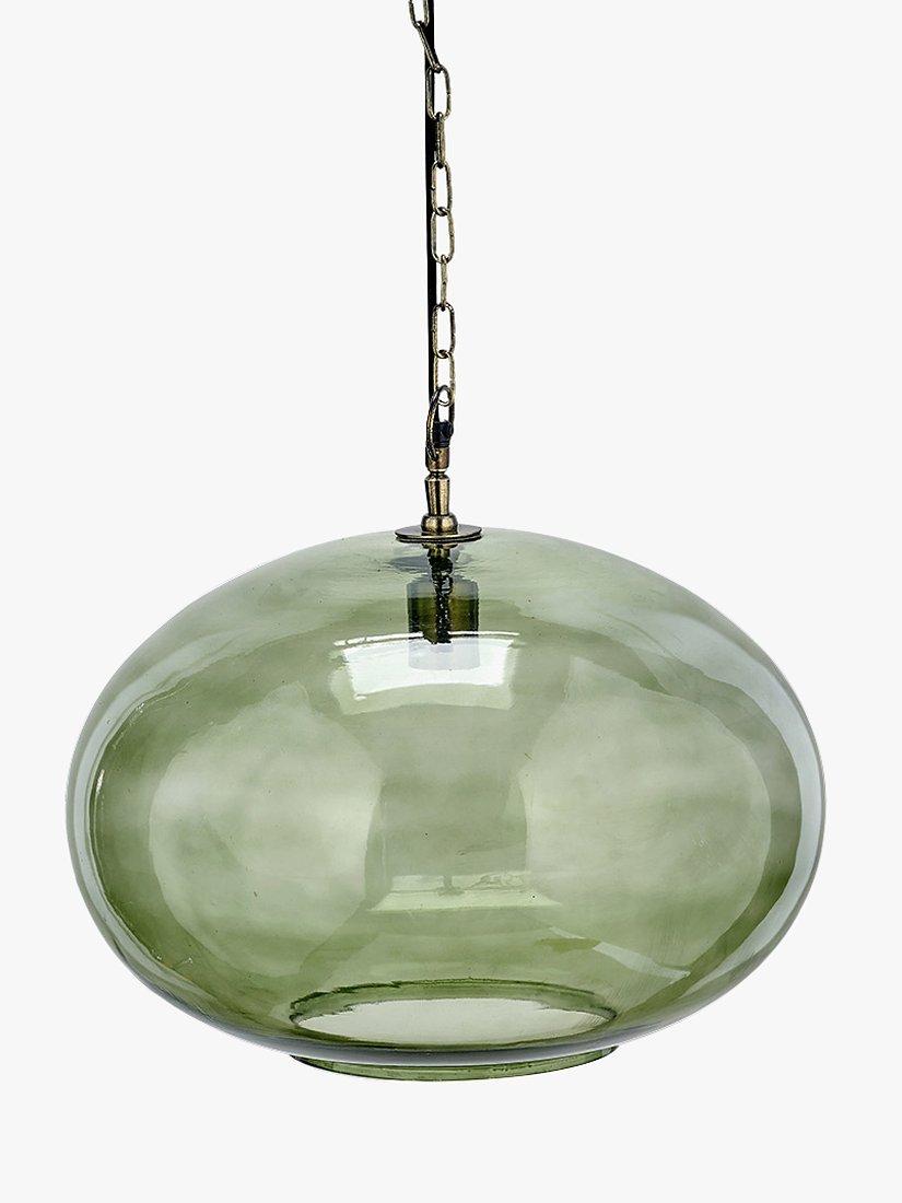 nkuku's Otoro pendant light creates an elegant, modern look. Made from recycled glass with a brass ceiling rose adding a pop of colour and finished with a brown braided cord.