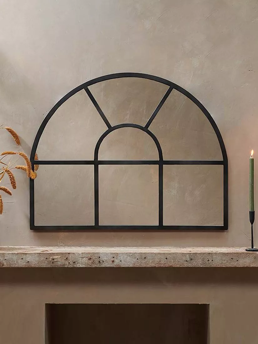 The nkuku Imoma overmantel mirror makes a striking focal point for your hallway or living room with its arched window design. The mirror is held by an elegant but durable iron frame that has been handcrafted by skilled artisans in India using traditional techniques.