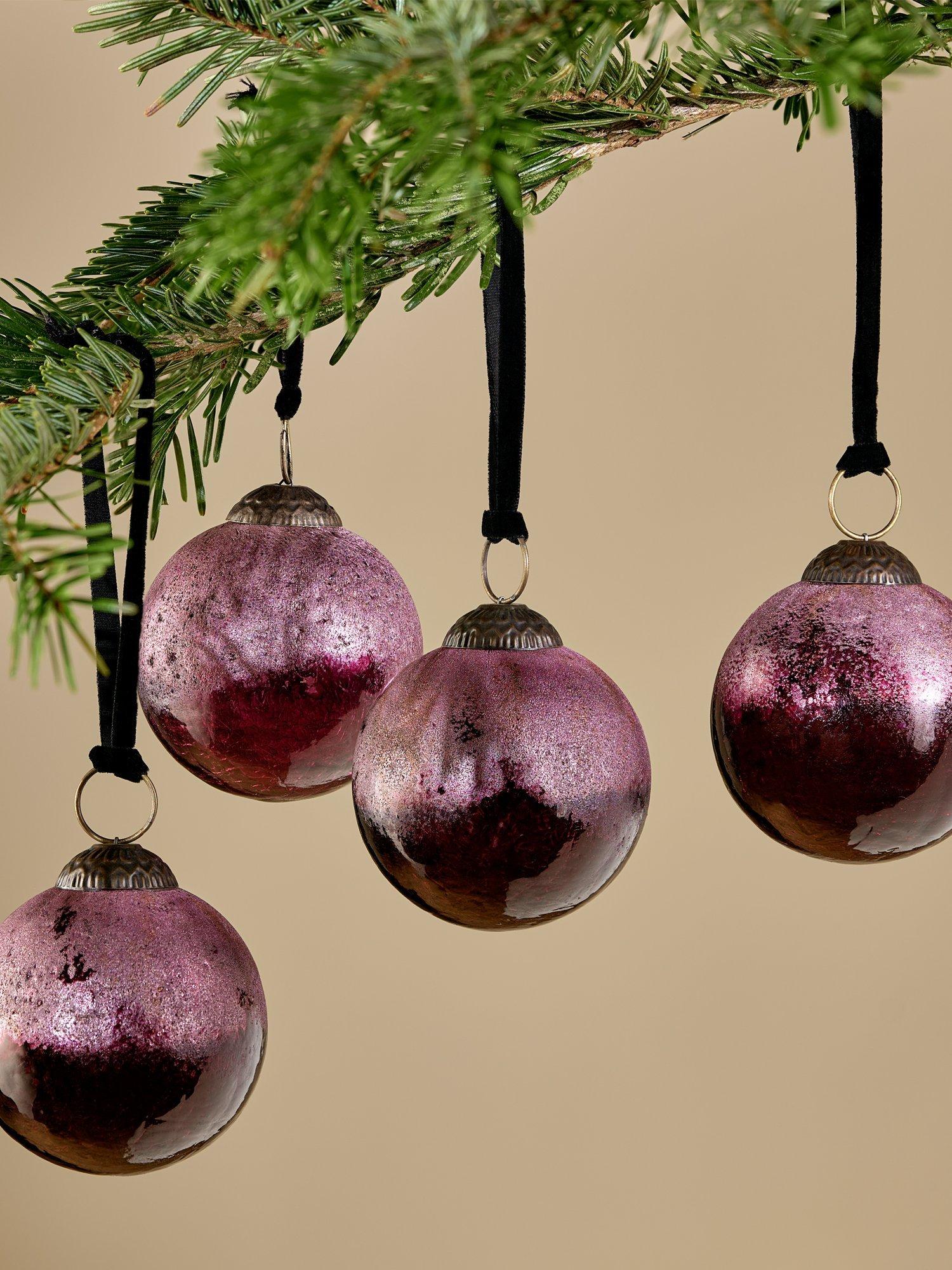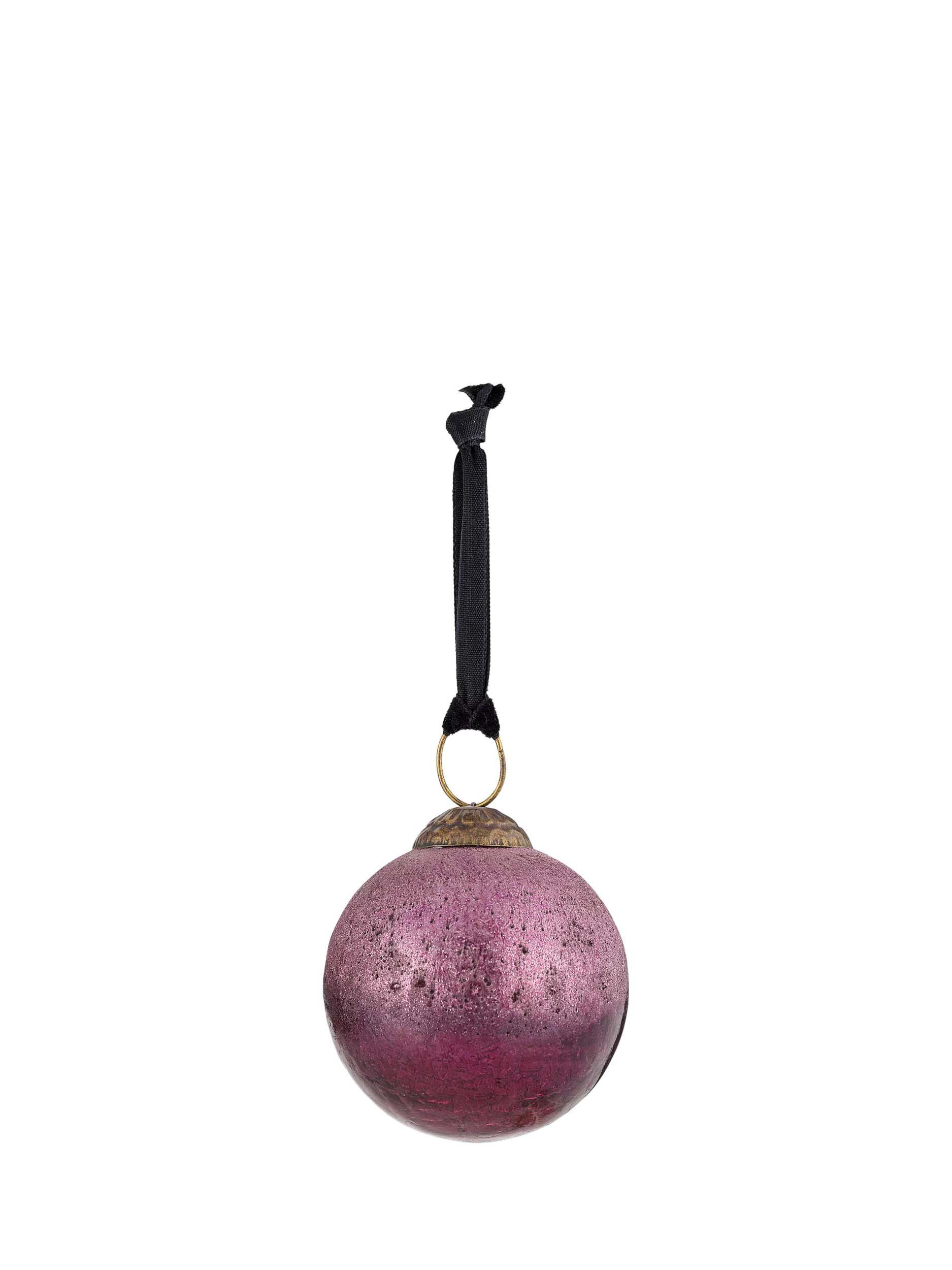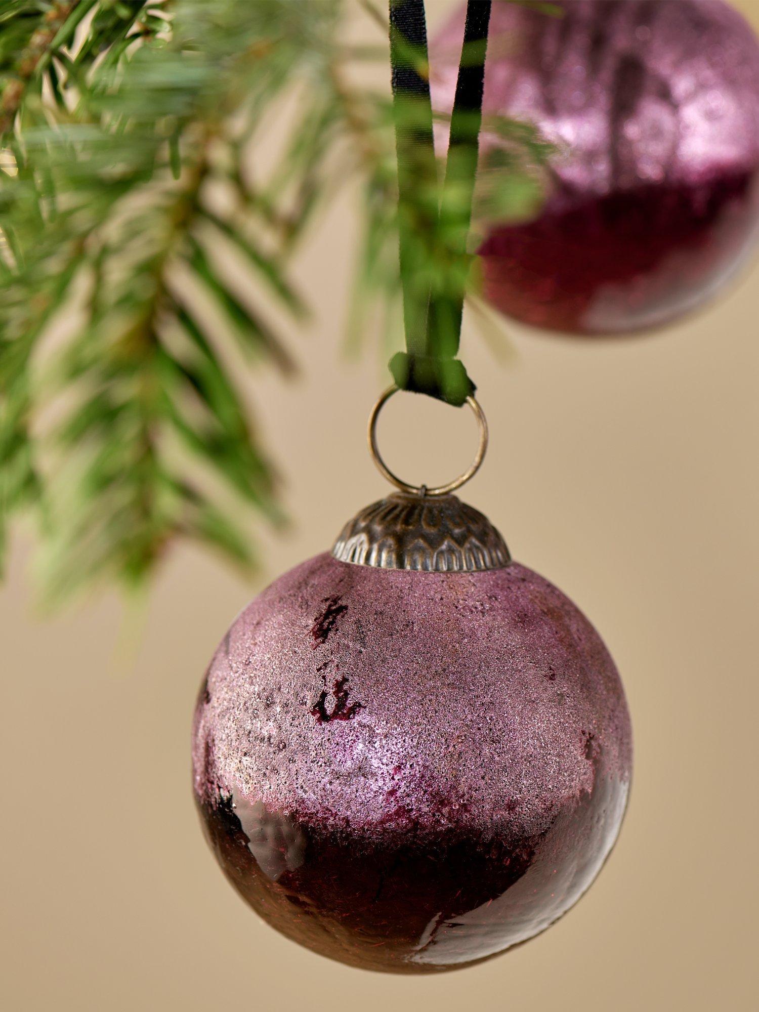 Pannee baubles have a sumptuous metallic effect added to the top half of each sphere that delivers an iridescent shimmer to a tree, garland or table setting. The understated matt brass clasp contrasts the sugary ruby tones and creates a sophisticated finish to this boldly bright bauble.