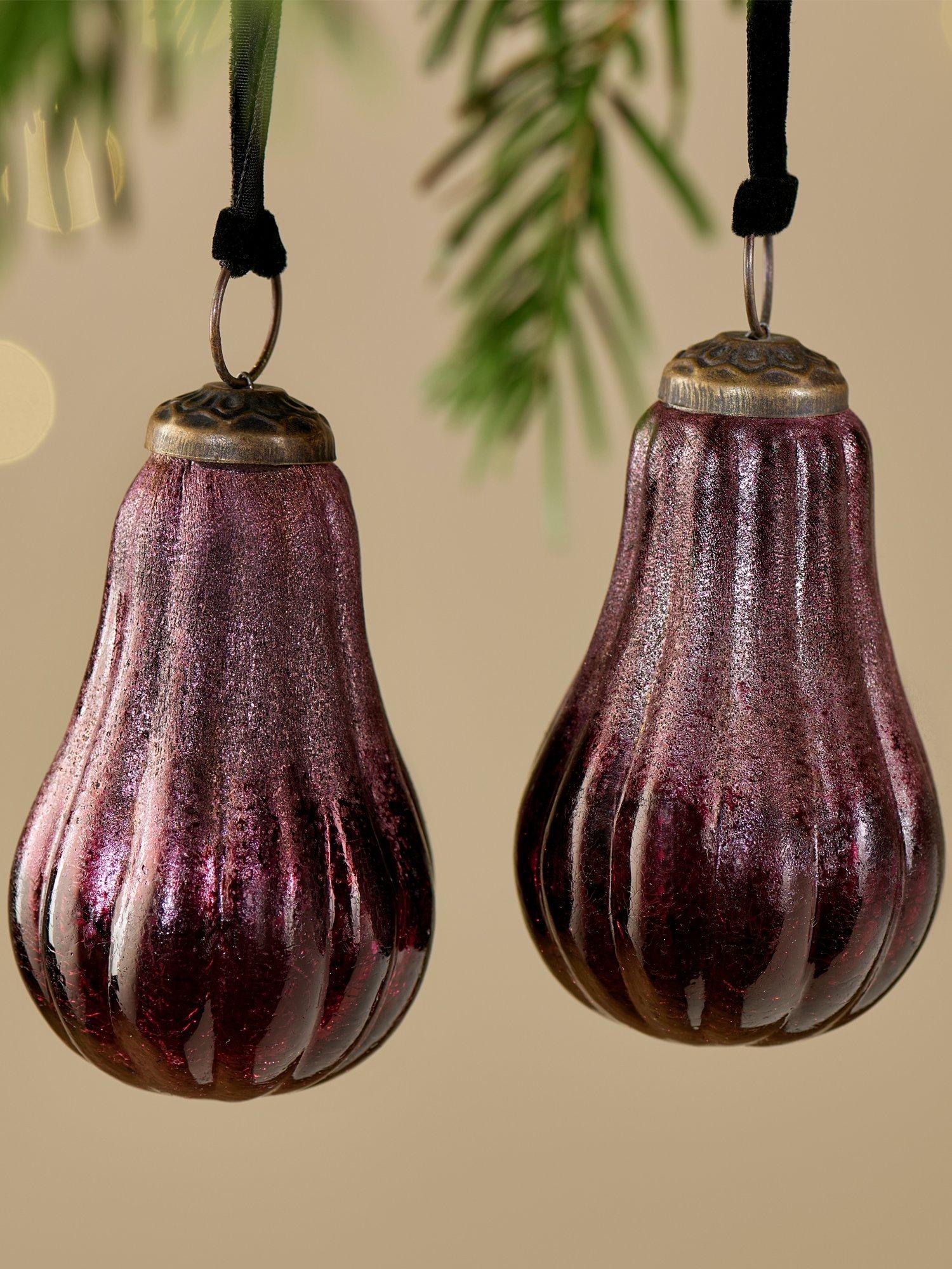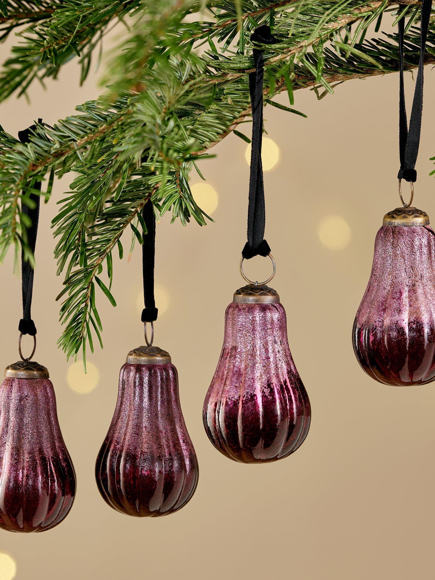 The irresistible and gloriously sparkling Pannee drop baubles has a sumptuous metallic effect added to the top half of each sphere that delivers an iridescent shimmer to a tree, garland or table setting.