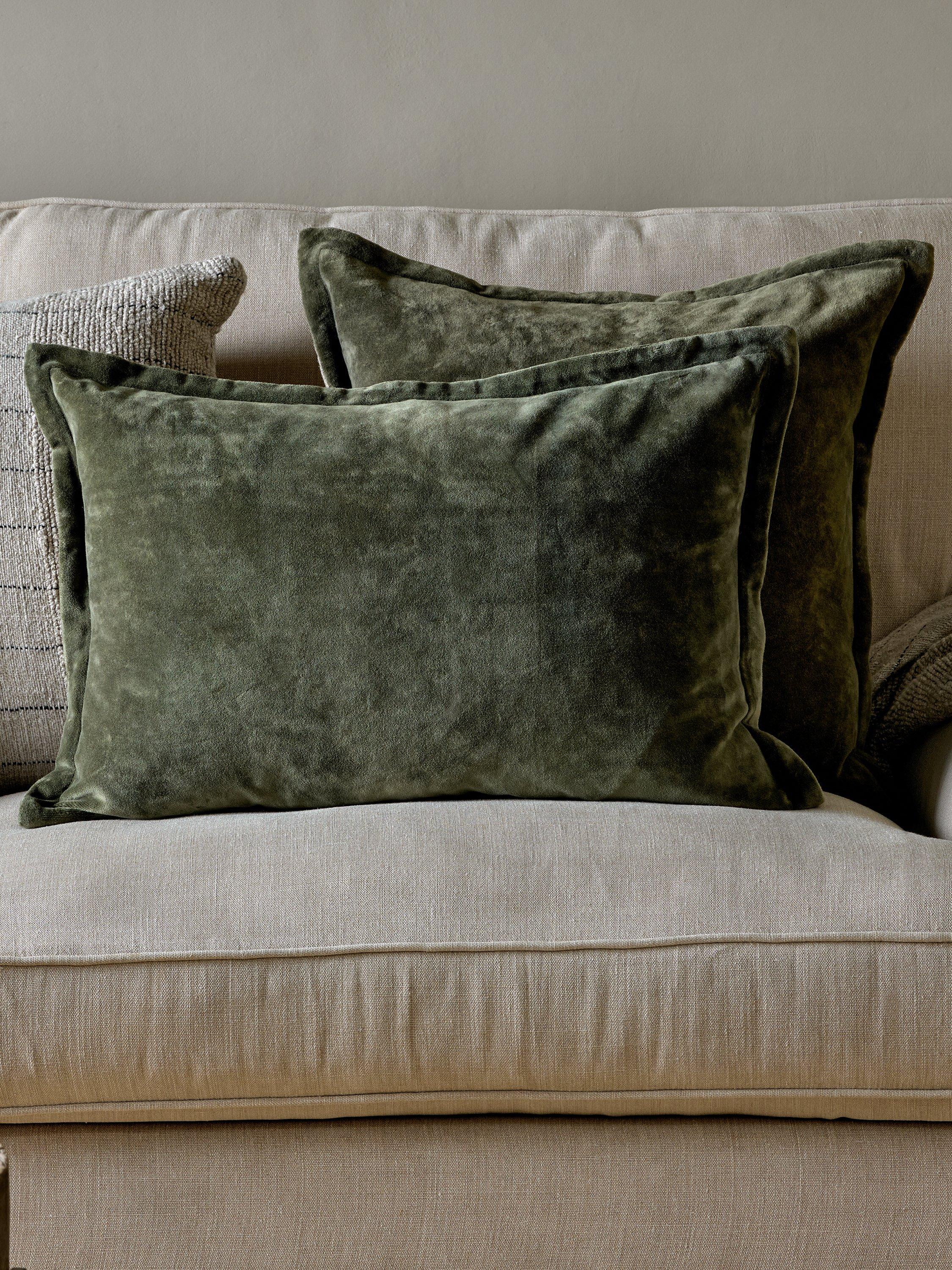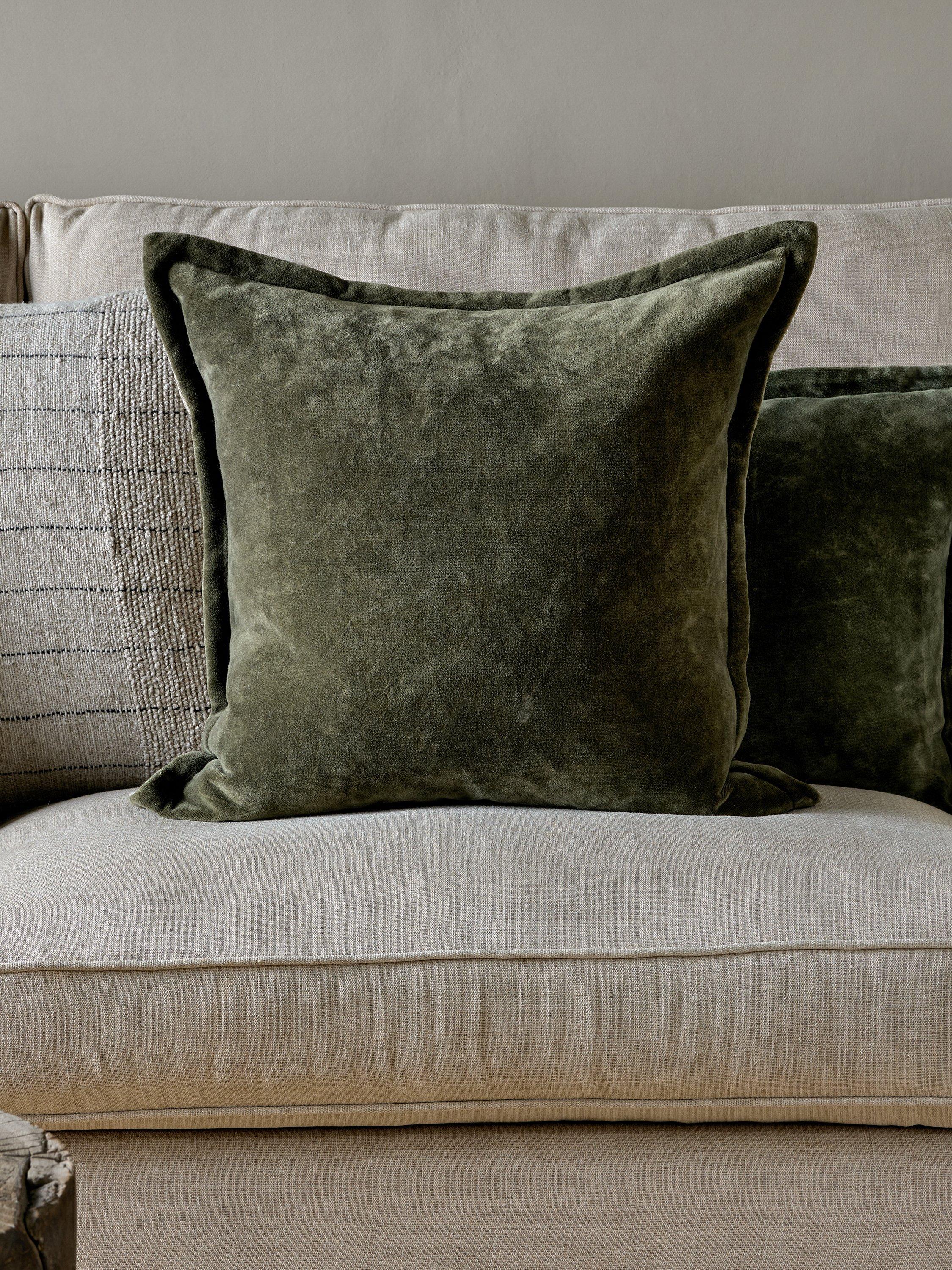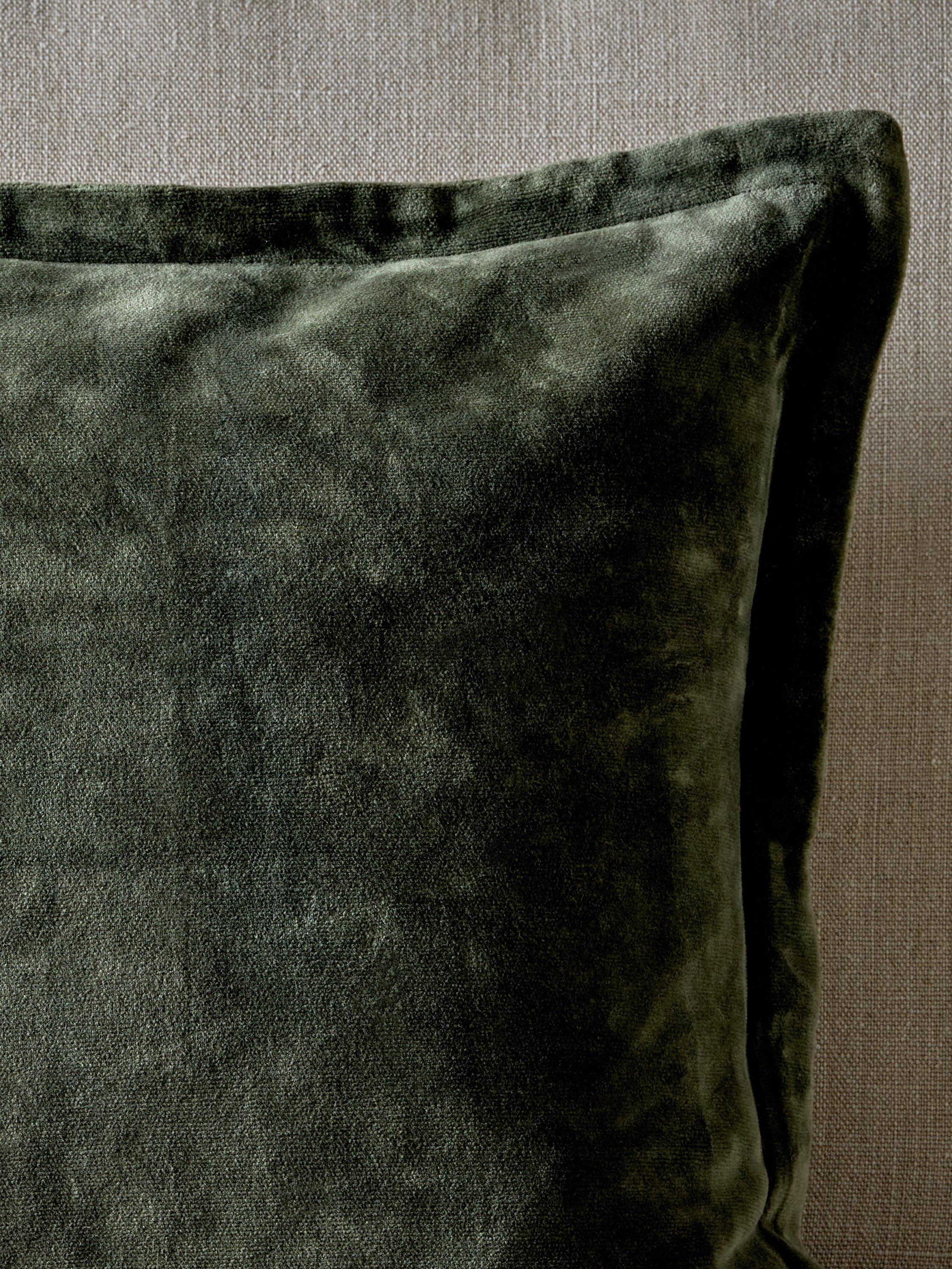 Luxurious and elegant, this cushion cover features a rich, thick velvet front in a beautiful deep green colour. Backed with natural linen and finished with a flange edge, it combines luxurious texture with durable craftsmanship.