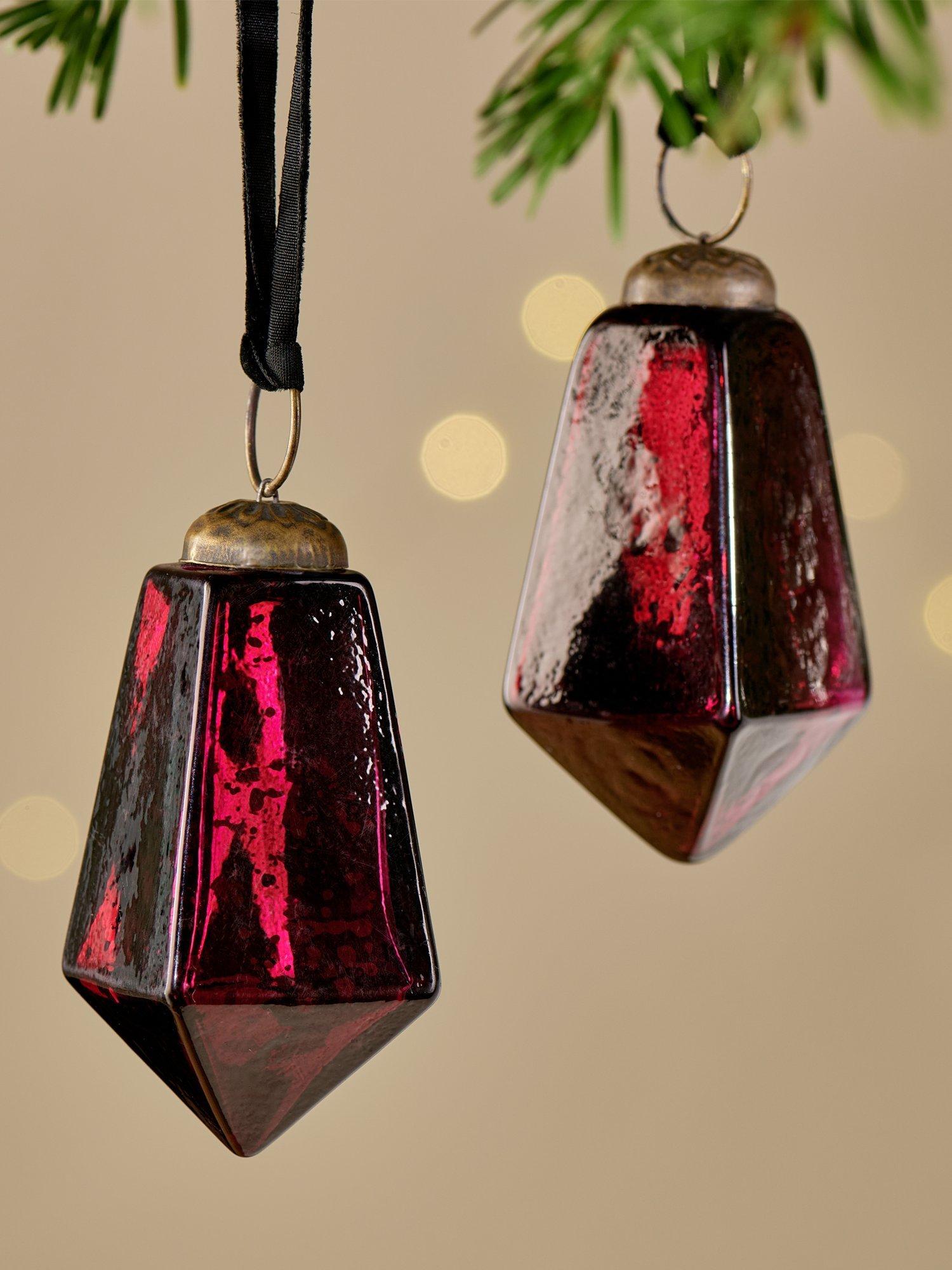 Rich ruby red with an antique glass finish and a simple antique gold clasp, this large bauble is classically shaped to bring a traditional and irresistible jewel-like finish to a tree, seasonal wreath or table setting.