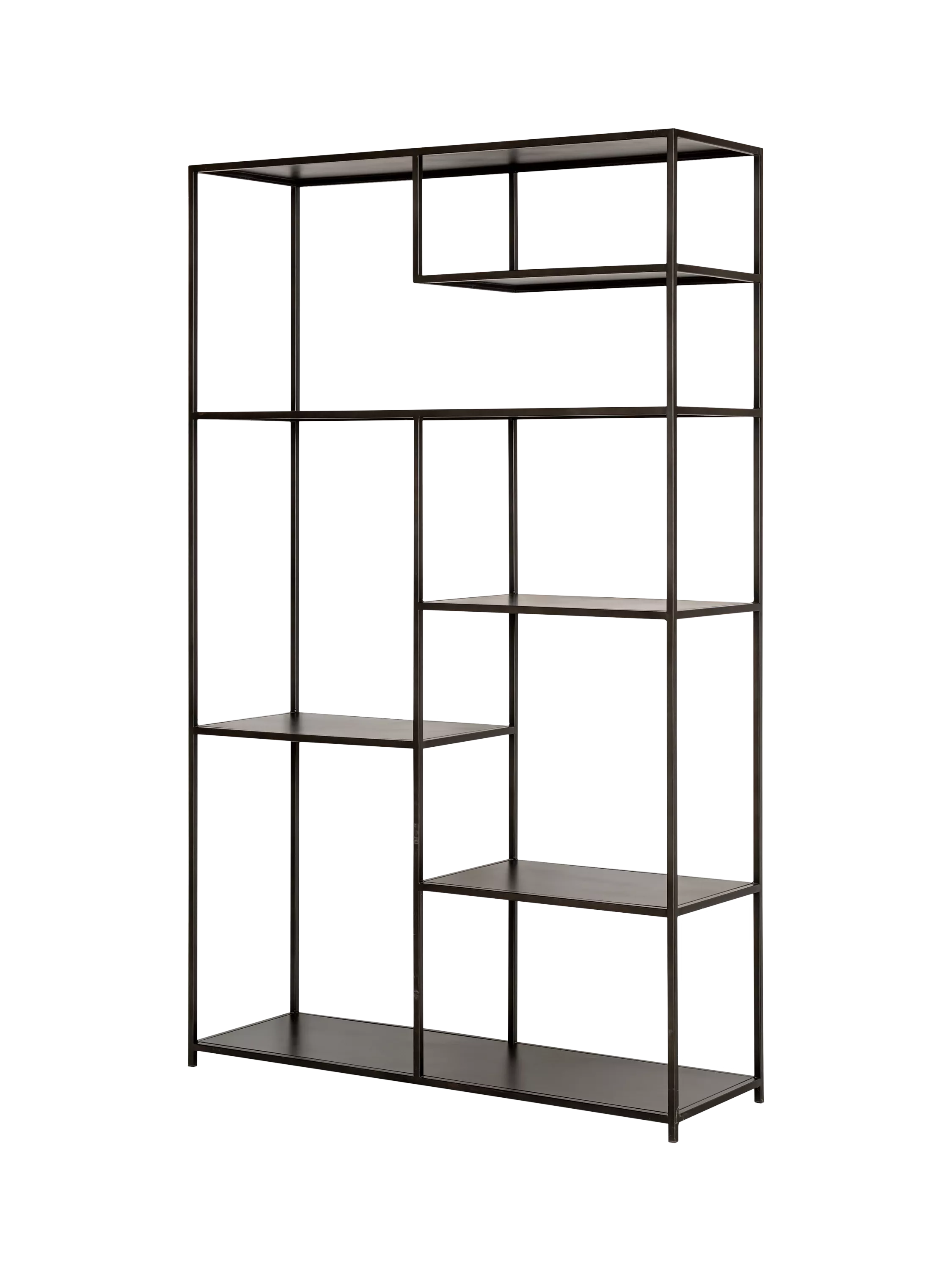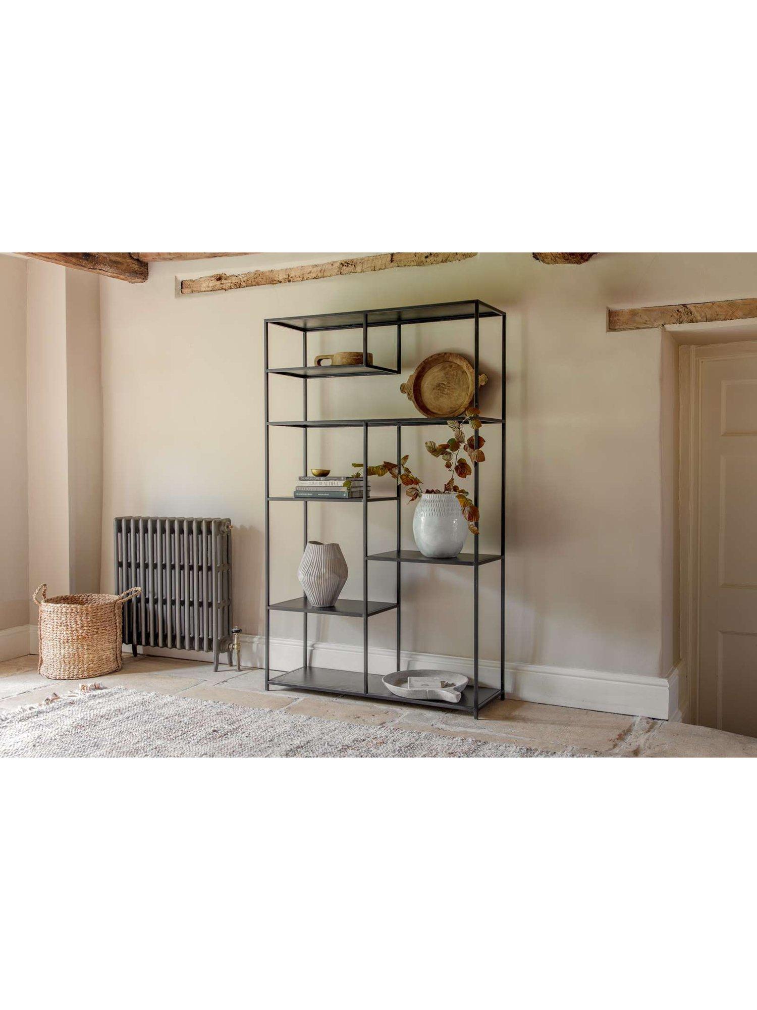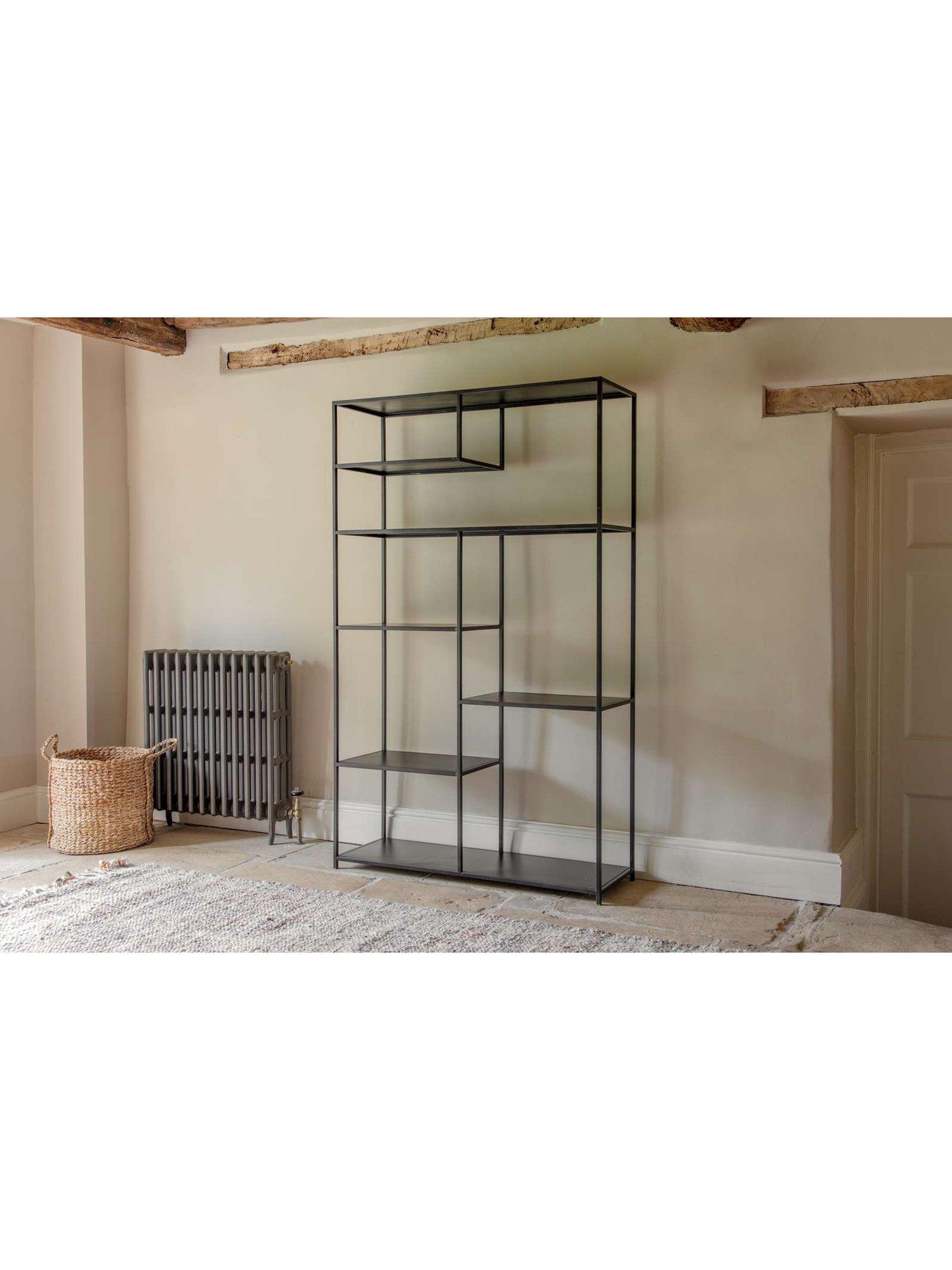 Made from iron and finished in a matt antique black, this has an industrial feel, yet the delicate uprights keep the silhouette clean and uncluttered. As well as bringing extra shelving to a living space, hallway or bedroom, this piece could also be used as a room divider as it is dual-sided.