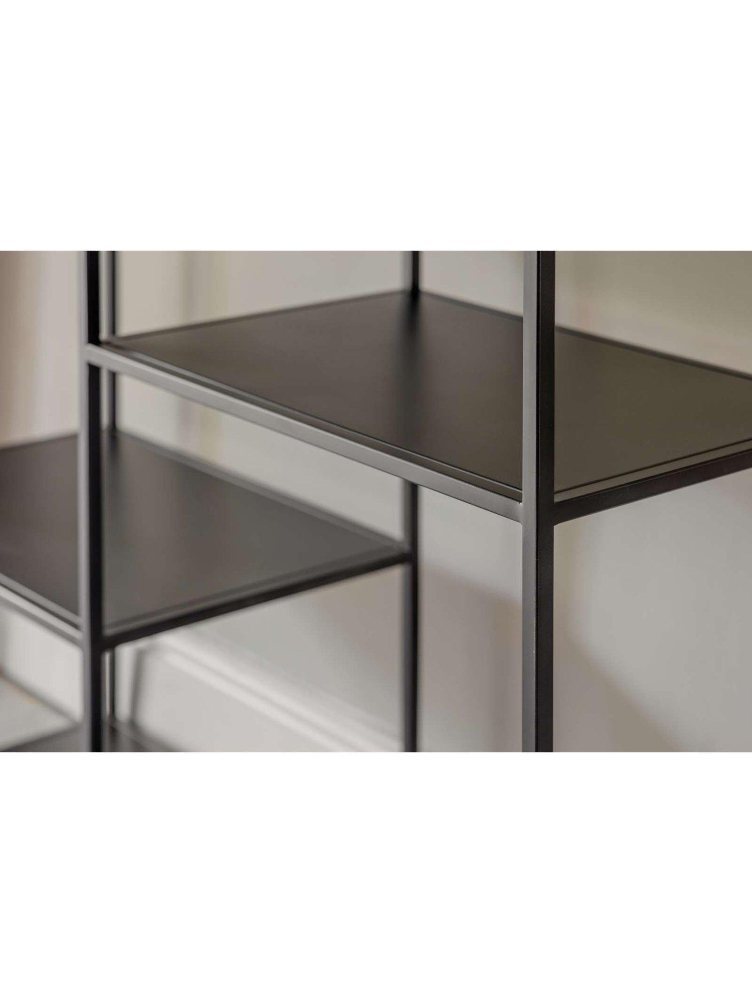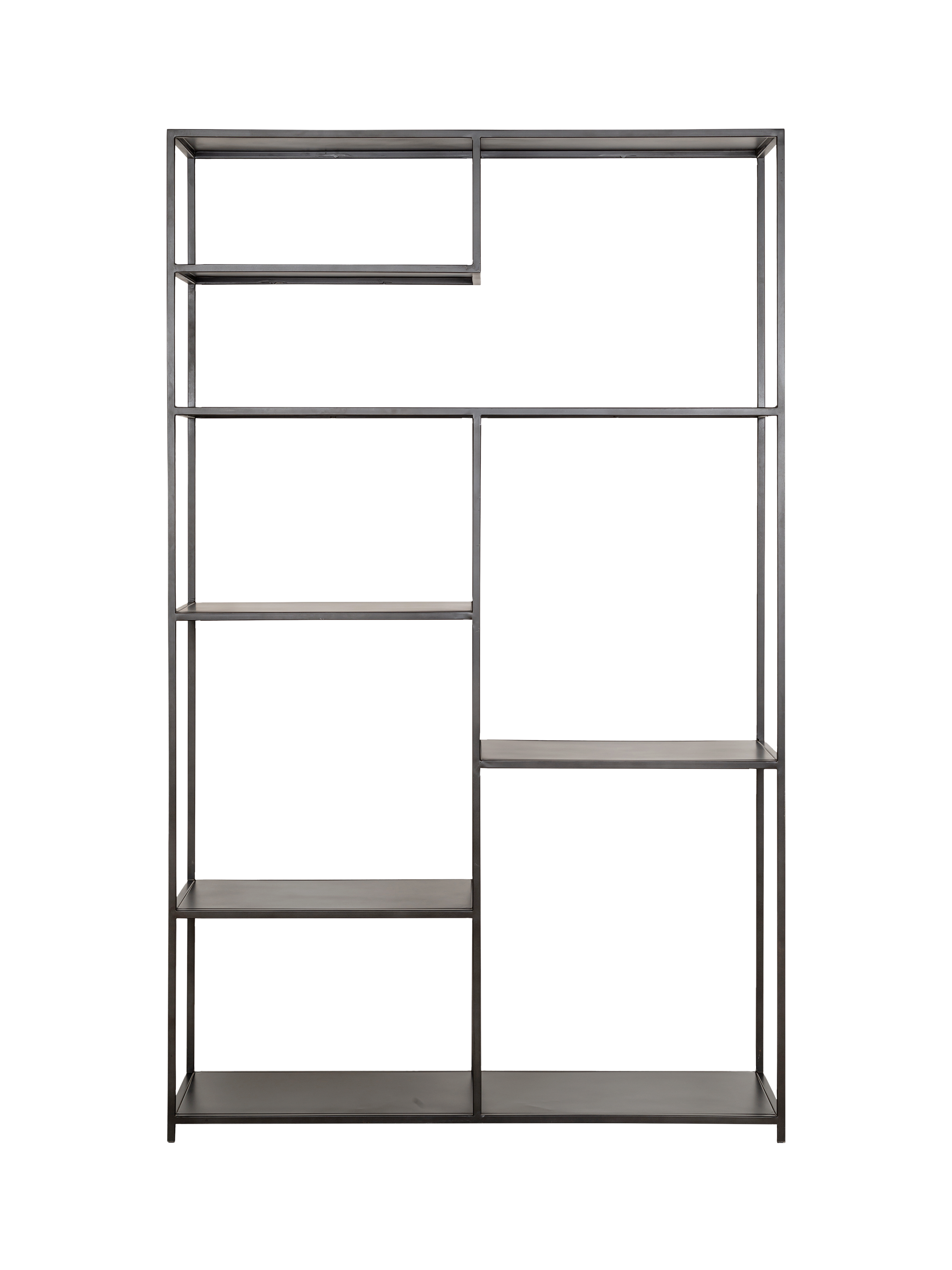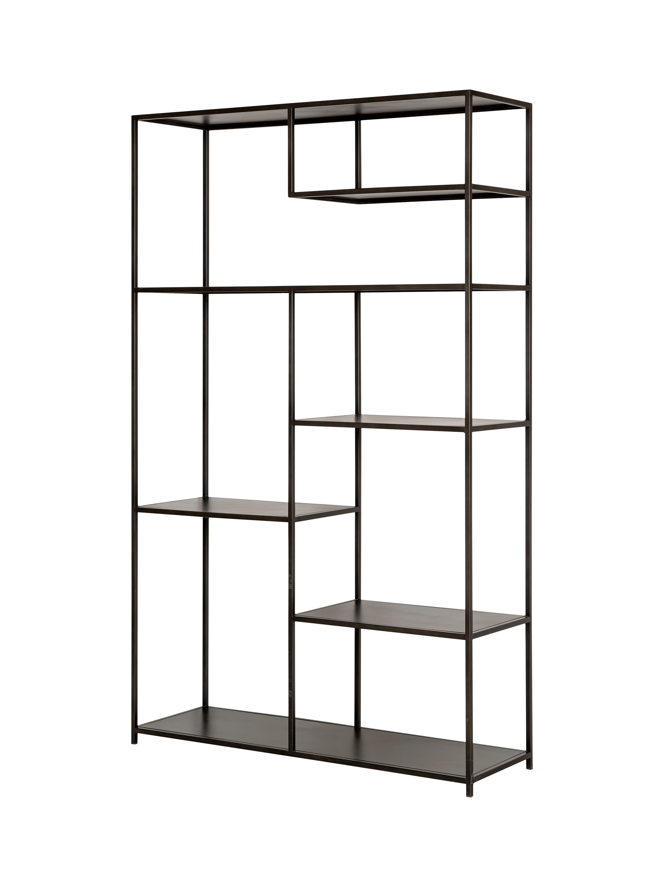 Made from iron and finished in a matt antique black, this has an industrial feel, yet the delicate uprights keep the silhouette clean and uncluttered. As well as bringing extra shelving to a living space, hallway or bedroom, this piece could also be used as a room divider as it is dual-sided.