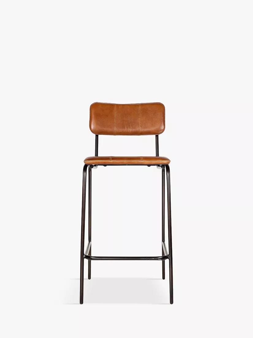 This practical, durable, and comfortable design has a simple, solid iron frame and footrest, with a padded seat and back support. Upholstered in handmade buffalo leather, it is stitched to create three panels which adds a stylish design detail to the piece.Designed to work with a kitchen island, counter or breakfast bar, the Ukari counter chair tucks neatly under a kitchen countertop.
