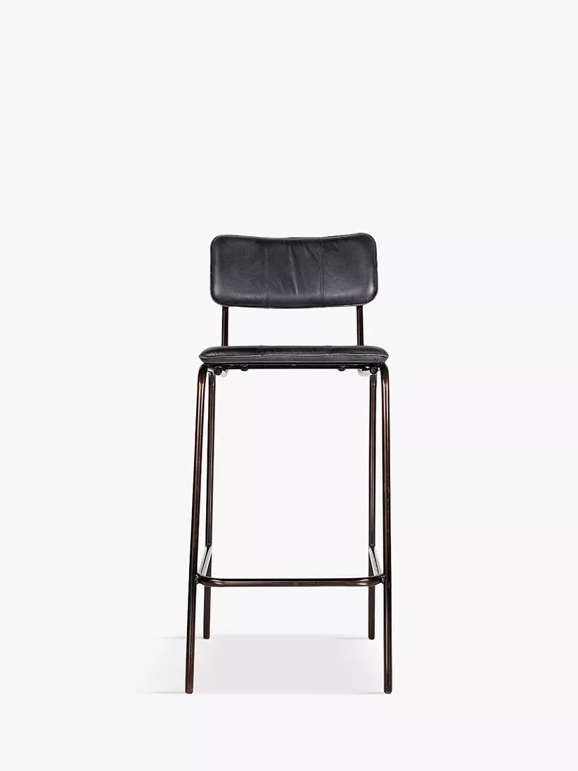 This practical, durable, and comfortable design has a simple, solid iron frame and footrest, with a padded seat and back support. Upholstered in handmade buffalo leather, it is stitched to create three panels which adds a stylish design detail to the piece.Designed to work with a kitchen island, counter or breakfast bar, the Ukari counter chair tucks neatly under a kitchen countertop.