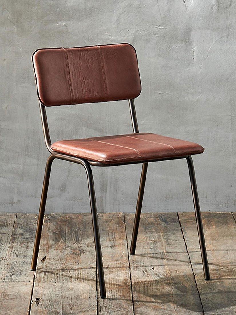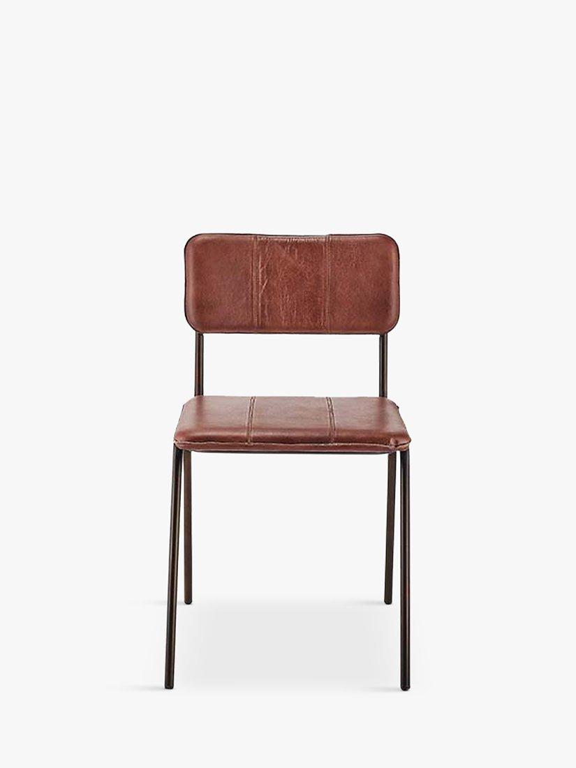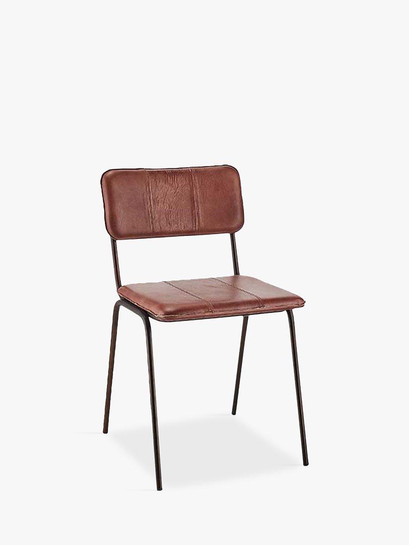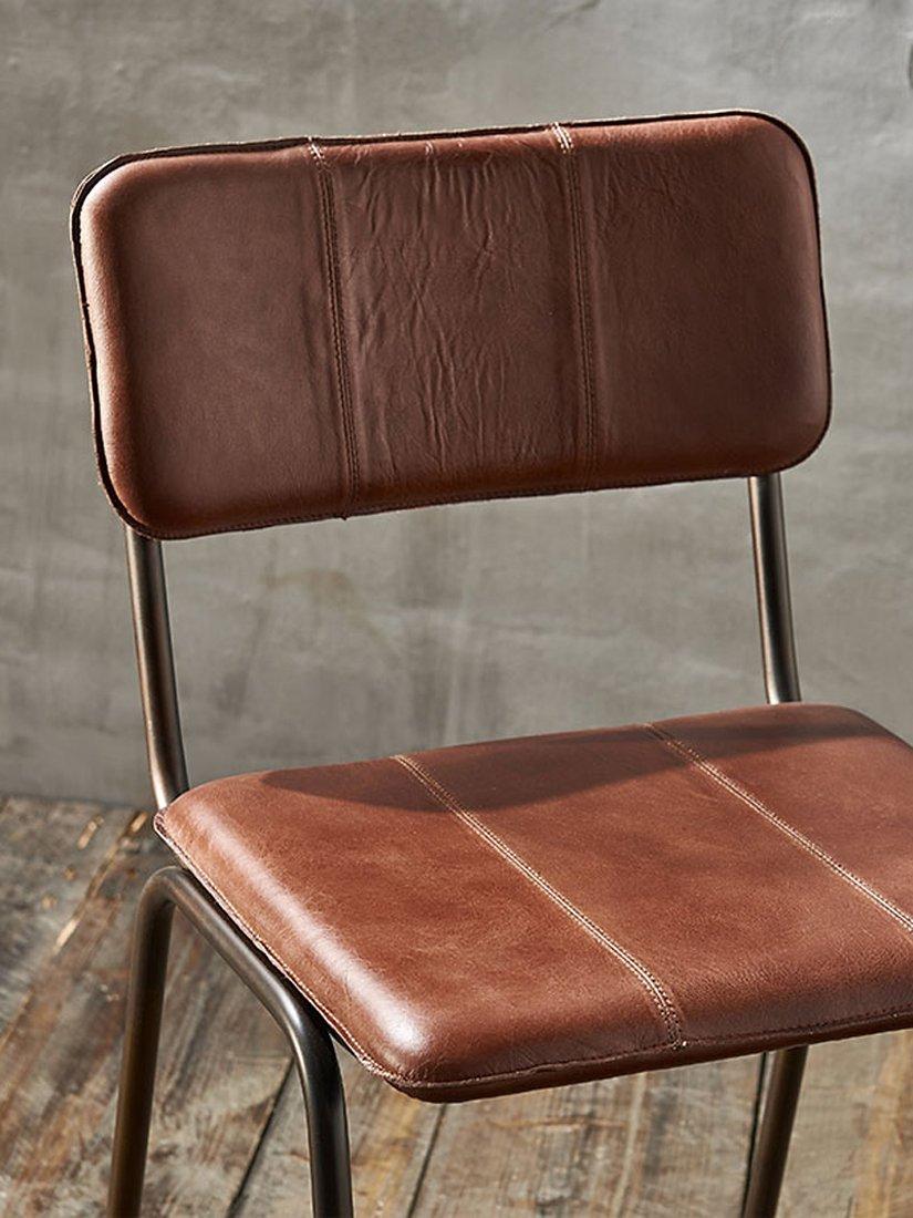 Elevate your kitchen or dining space with the nkuku Ukari dining chair. Designed with a sturdy iron frame and an aged leather, padded seat and backrest, it's as comfortable as it is stylish, with subtle stitching detail on the seat and back adding to the aesthetic.