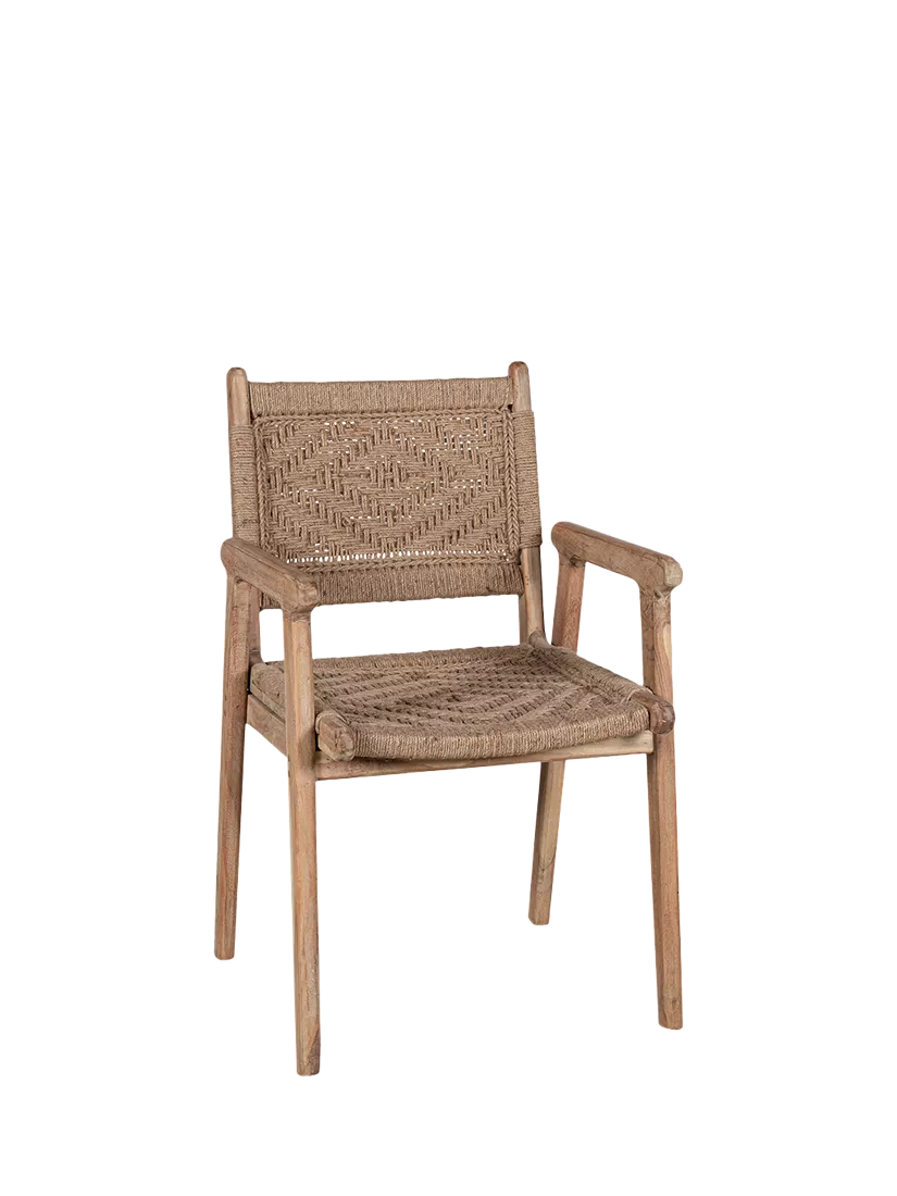 A unique dining chair, crafted from mango wood with woven jute panelling on the seat and back. It's elegantly proportioned, and it will elevate your space with warmth and texture thanks to the combination of natural materials. The shapely armrests also add comfort, while enhancing the chair's sturdy frame.