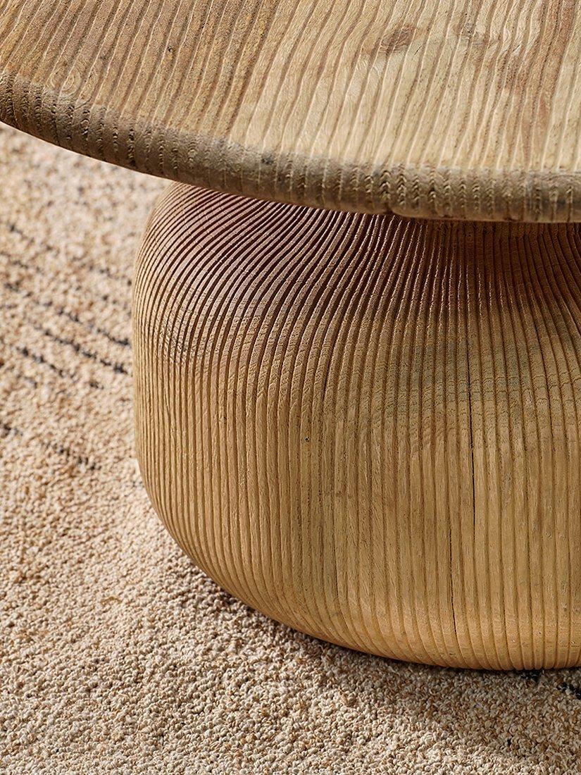 The heavy-weight, organic design of nkuku's Vivan coffee table makes it a standout piece that will look beautiful in any living scheme. Hand-carved from sustainable mango wood with a beautifully textured grooved surface that accentuates its simplicity and style, this generously proportioned table has a fresh contemporary feel that is effortlessly elegant.
