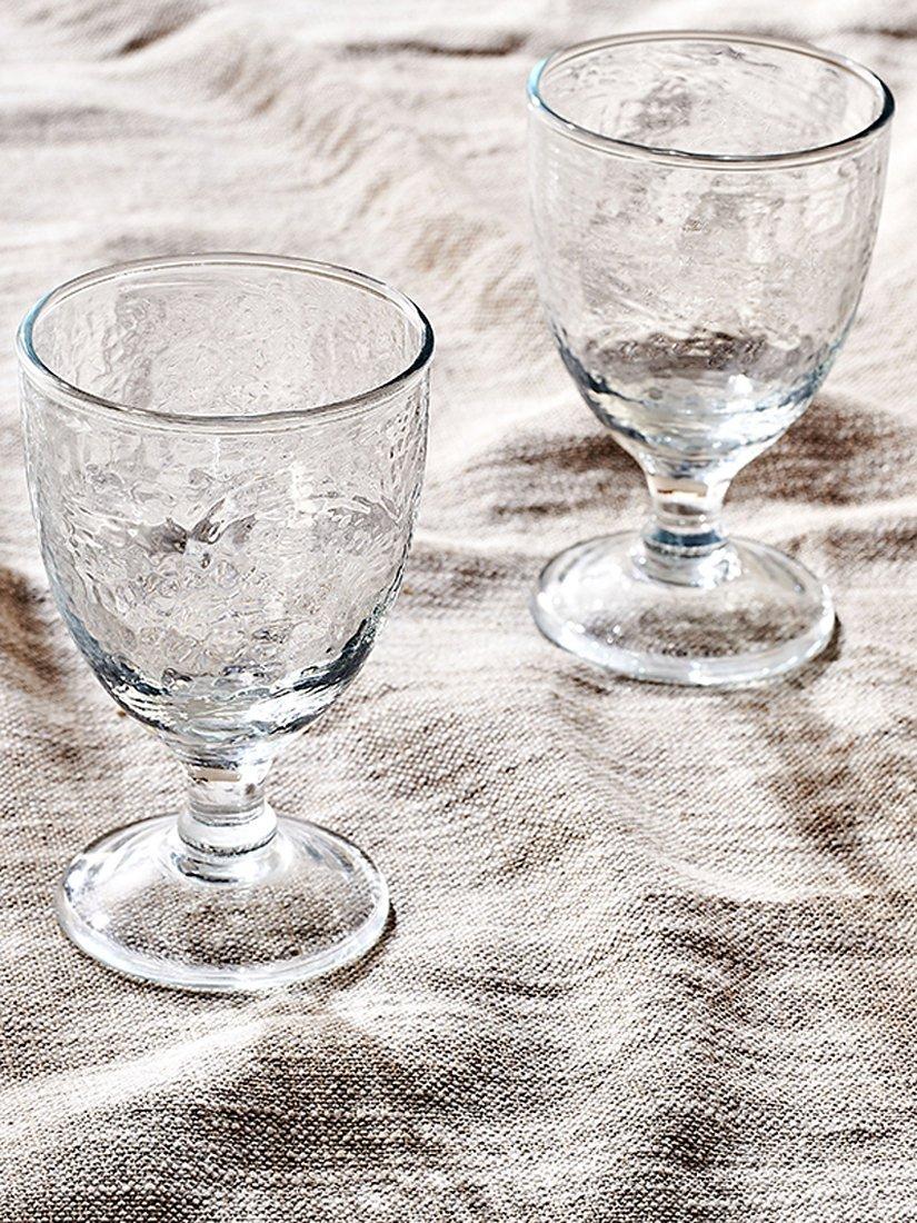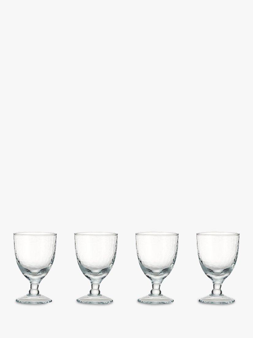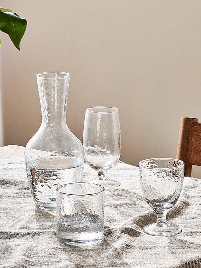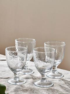 The nkuku Yala wine glass comes in a set of four, perfect for finishing off your table for dinner parties. Handmade in India by skilled artisans, the hammered finish has a timeless, organic look and is created using traditional tools. The glassware is dishwasher safe.
