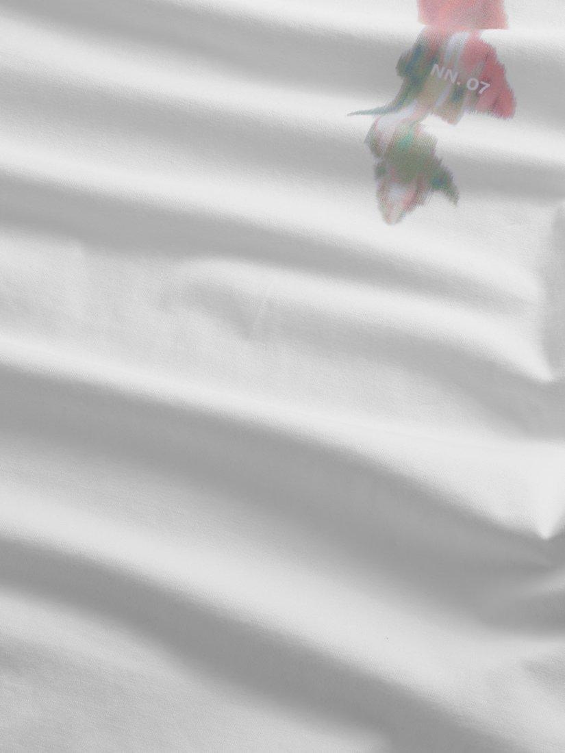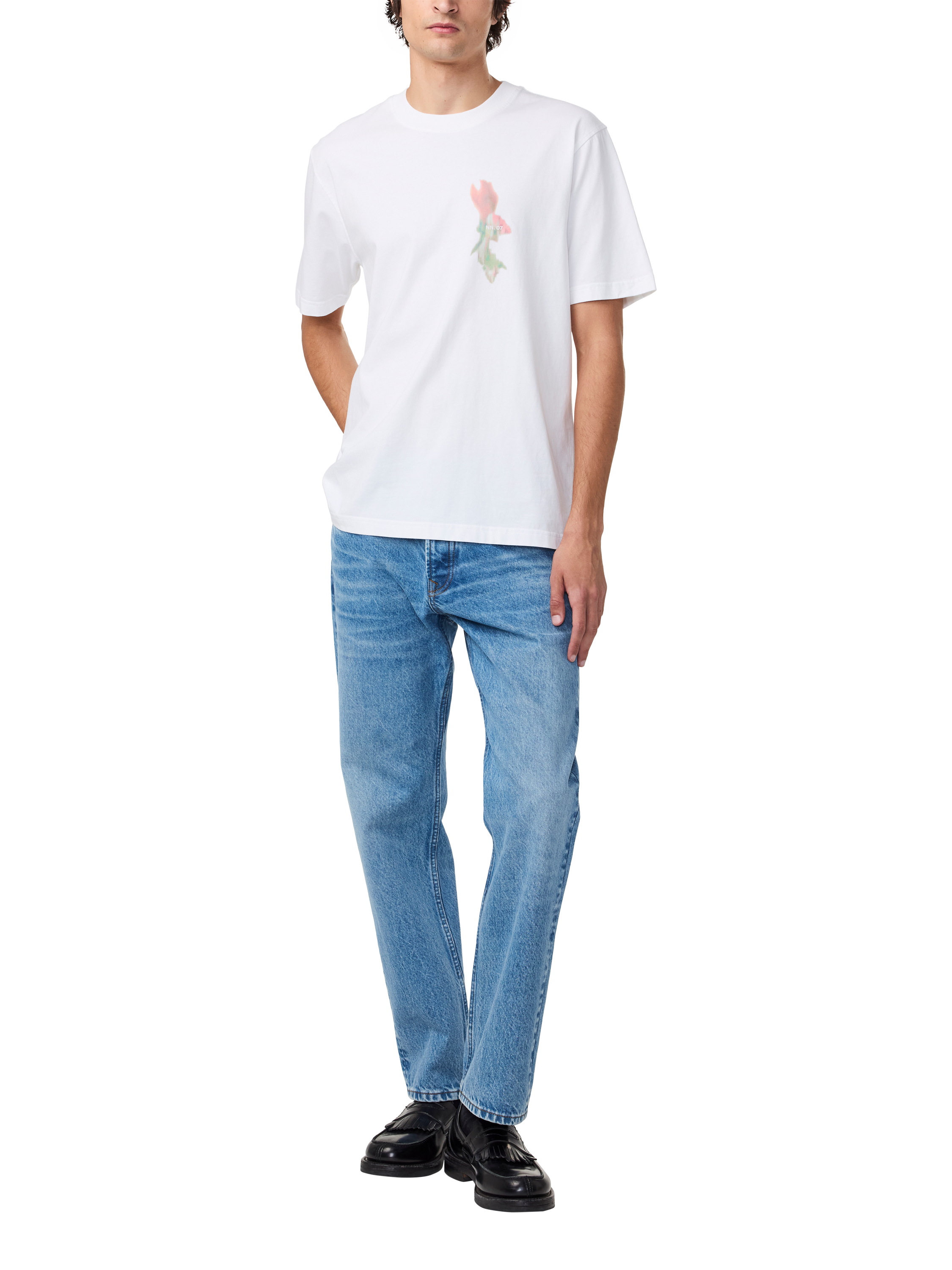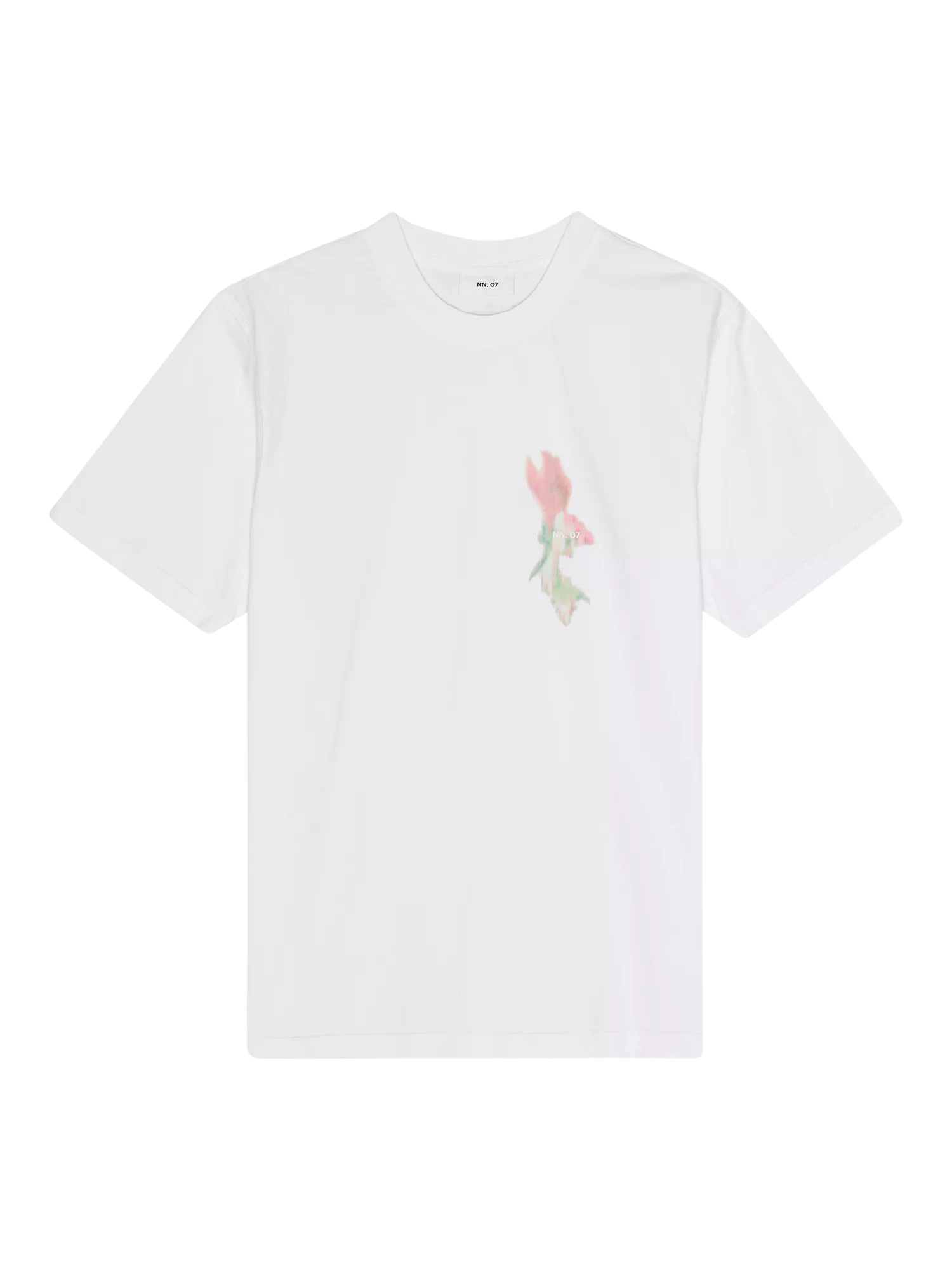Complete with twin needle stitching throughout, an abstract flower motive and a rib detail along the neckline.