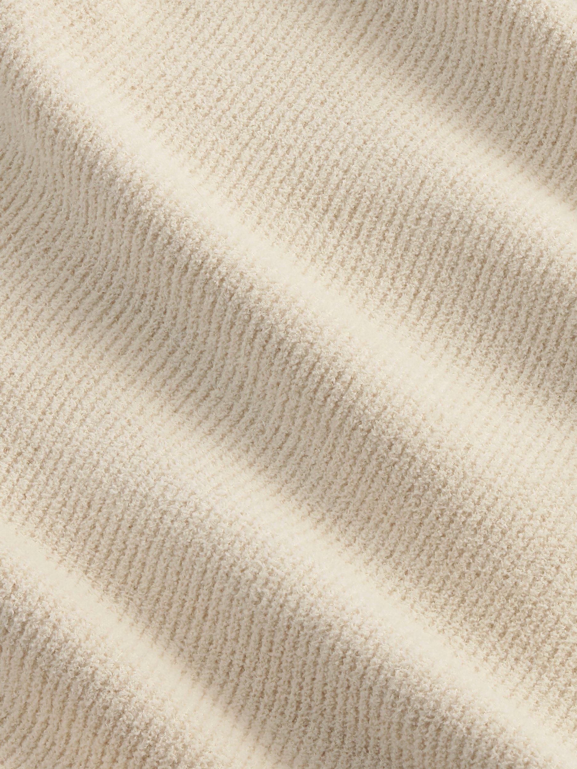 A soft crewneck sweater crafted in a lightweight polyester blend, designed with a neat rib and fashion detailing along the arm and neckline.