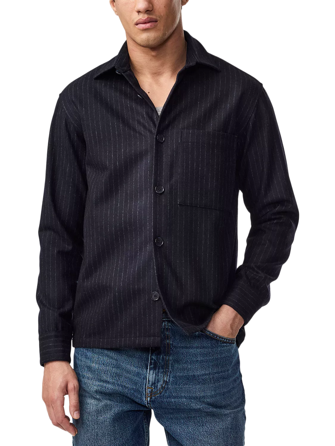 Mediumweight hybrid made from a woollen Italian wool blend twill. Designed with buttons and chest pocket.