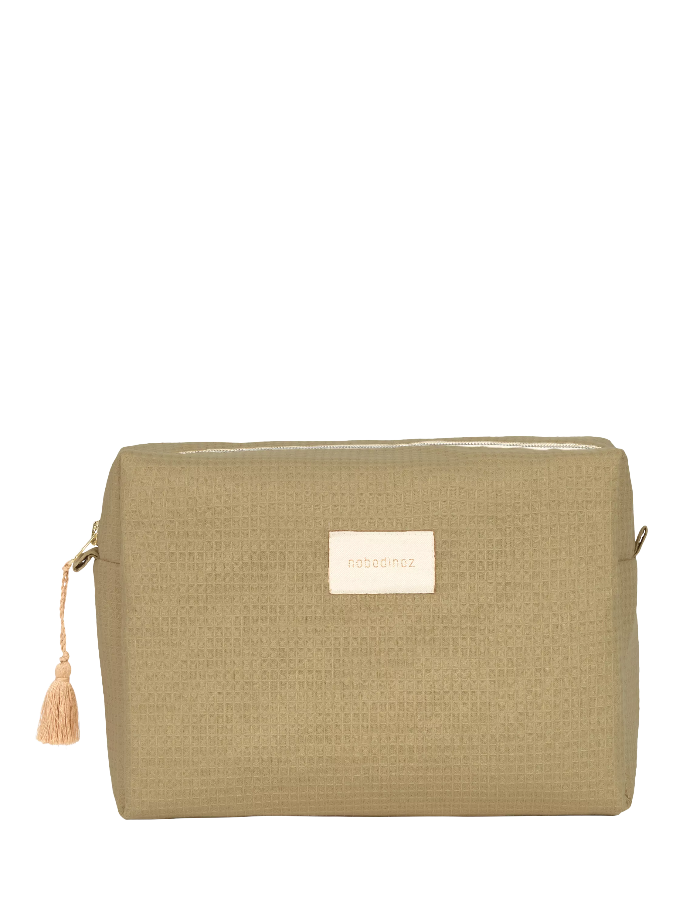 The Diva vanity case is dressed in cotton honeycomb fabric and sports a practical waterproof inside lining. Stock all the lotions, creams, or other baby accessories inside to keep it safe. The honeycomb drawing is exclusive, designed in collaboration with Nobodinoz's Barcelona weavers.