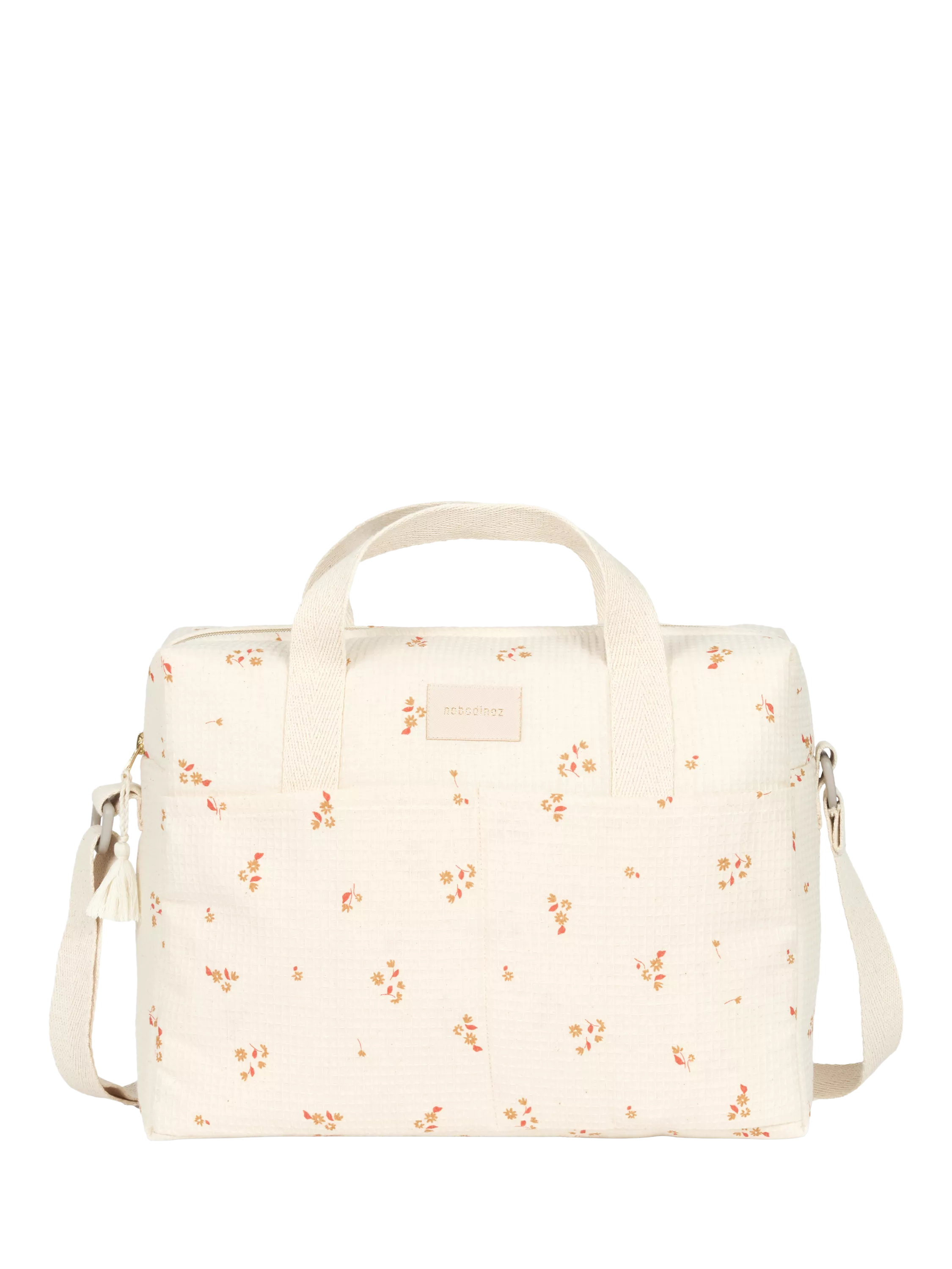 The Gala changing bag in cotton honeycomb has a waterproof interior and two inner pockets for baby's bits and pieces. There's also two outside pockets for what you need right at your fingertips. Thanks to its braided handles you can hang it on your pram or carry it on your shoulder. The honeycomb drawing is exclusive, designed in collaboration with Nobodinoz's Barcelona weavers.