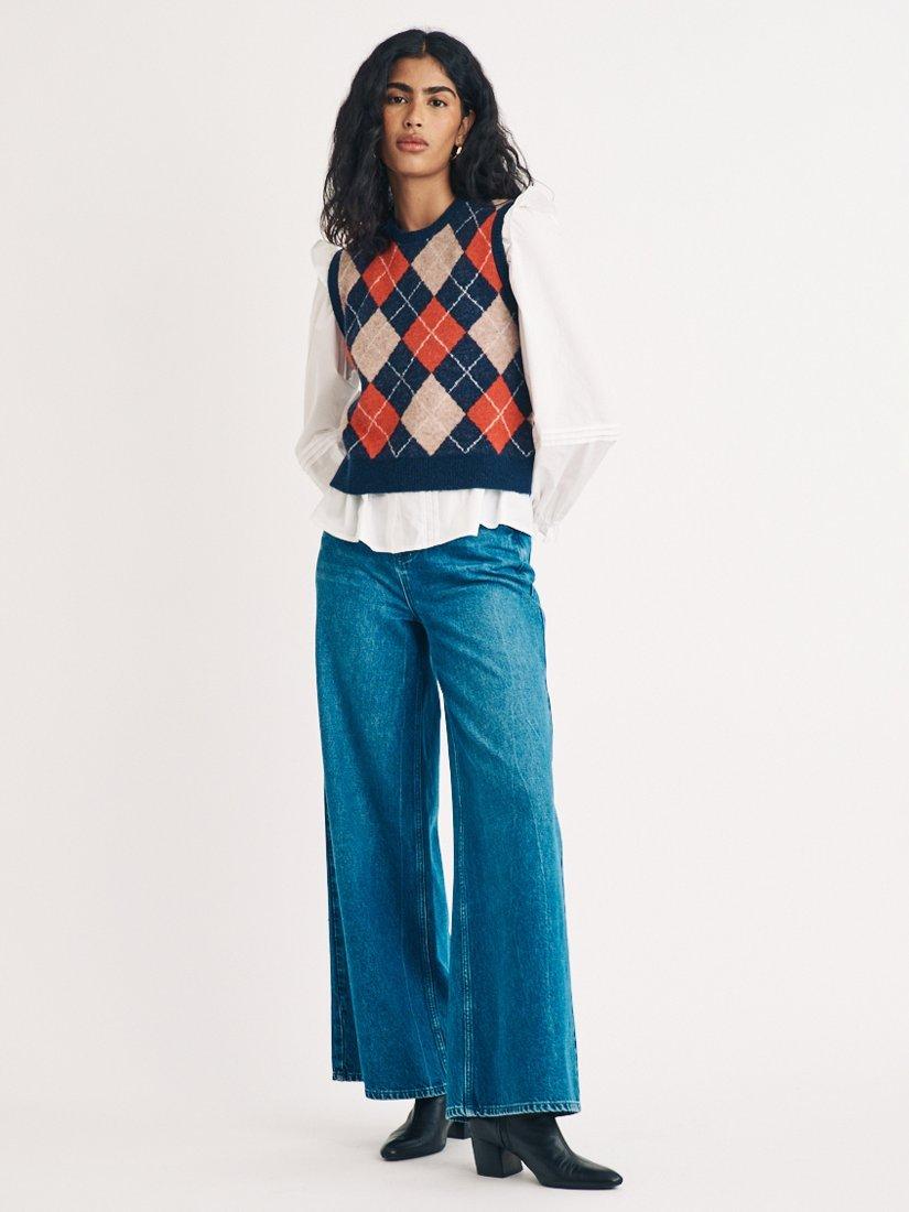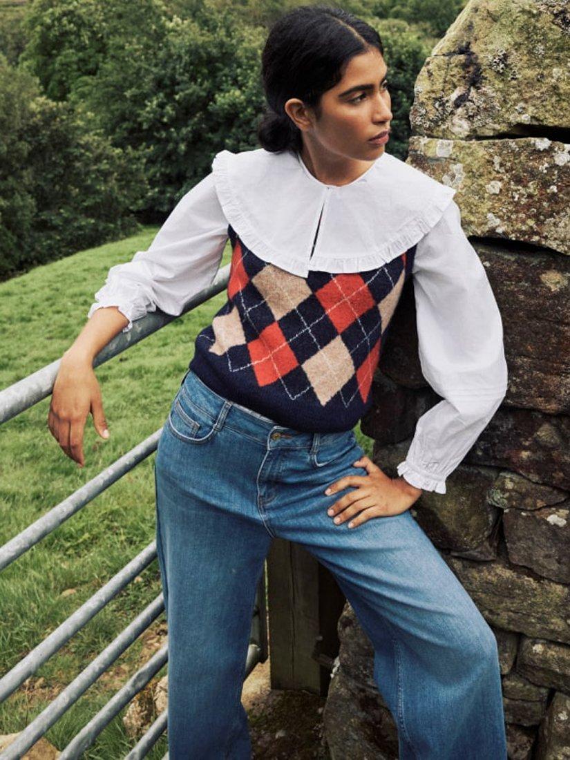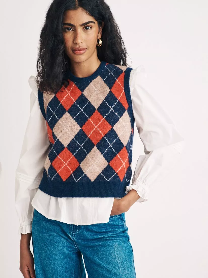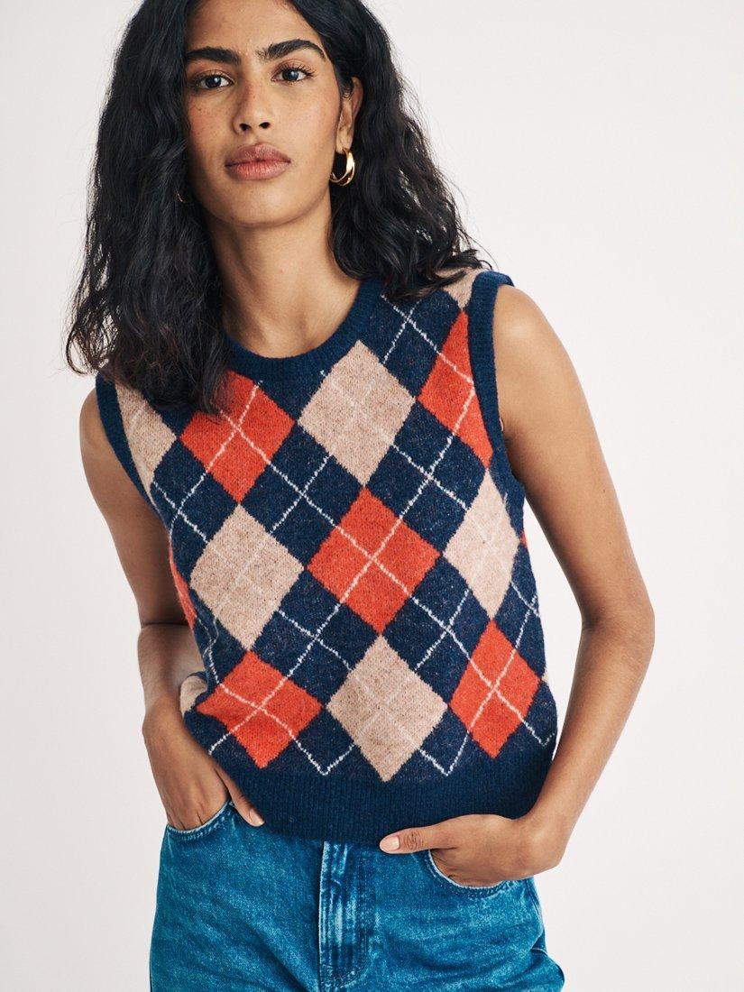 Cosy but make it cool. We can't get enough of the Argyle pattern or flattering v-neck. Team yours with your favourite jeans and boots. Made from a blended fabric which includes naturally temperature-regulating lambswool.