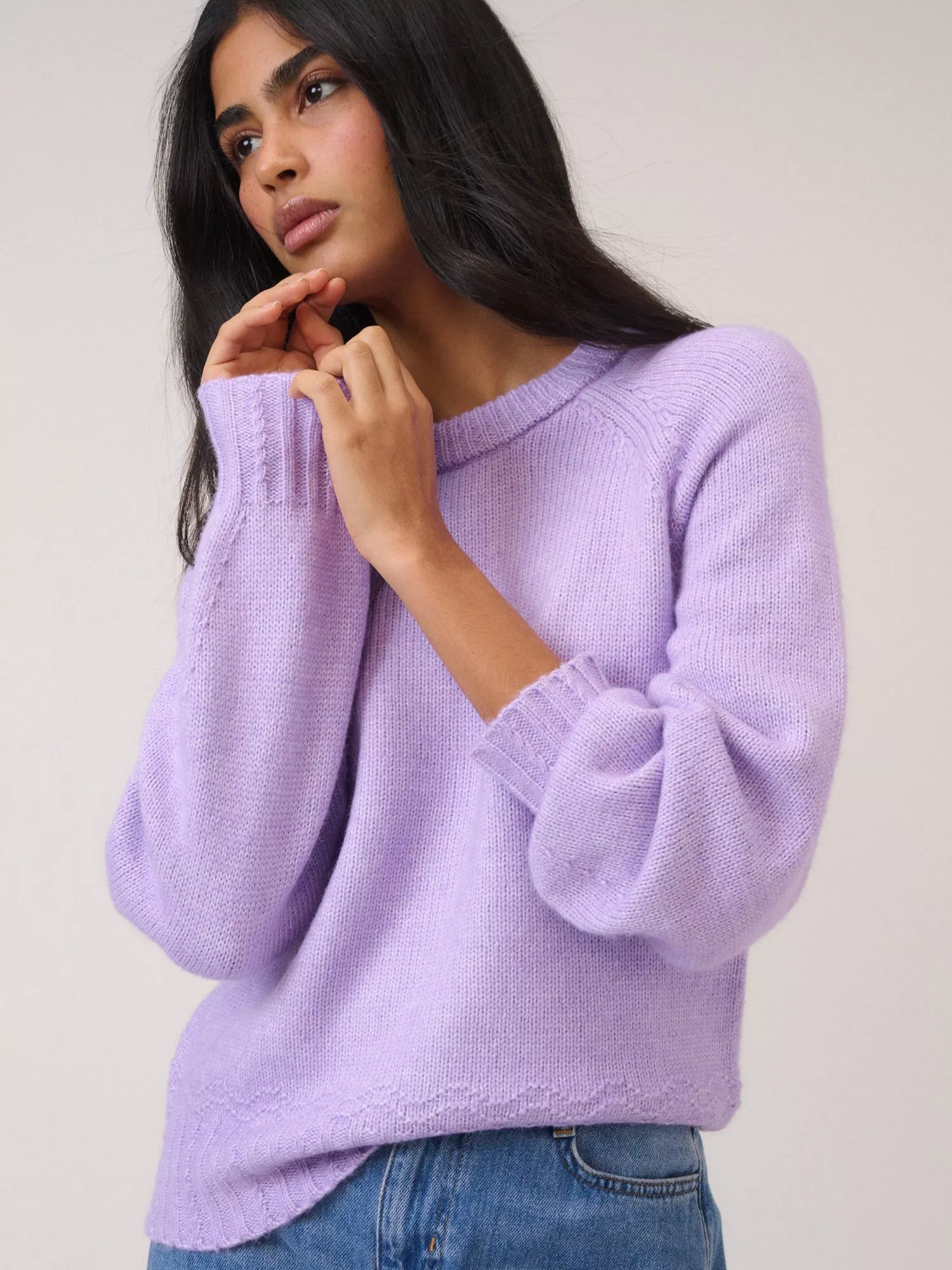 This jumper features a round neckline and long sleeves. Cut to a relaxed fit, the keyhole back is finished with a tie-fastening.