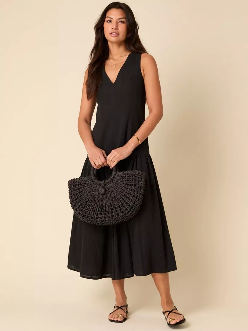Minimal, but not boring. This midi dress is all about clean lines, a soft drape, and a perfectly relaxed smock fit. Just add chunky sandals.