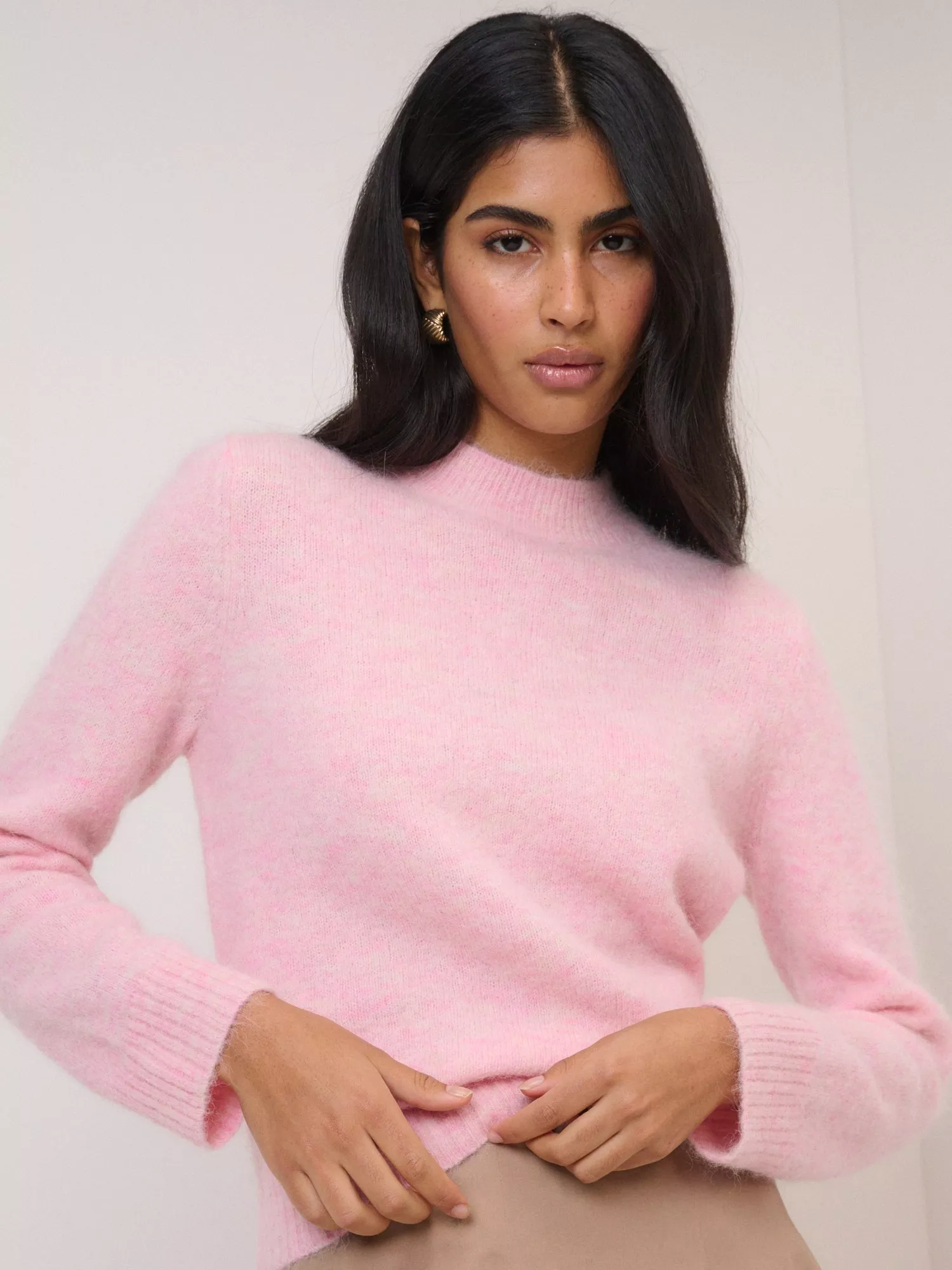 Crafted from a soft blend with luxurious wool and alpaca, this jumper features a mock neckline and long sleeves. Cut to a relaxed fit, it's finished with wide ribbed trims. We recommend selecting your usual size.