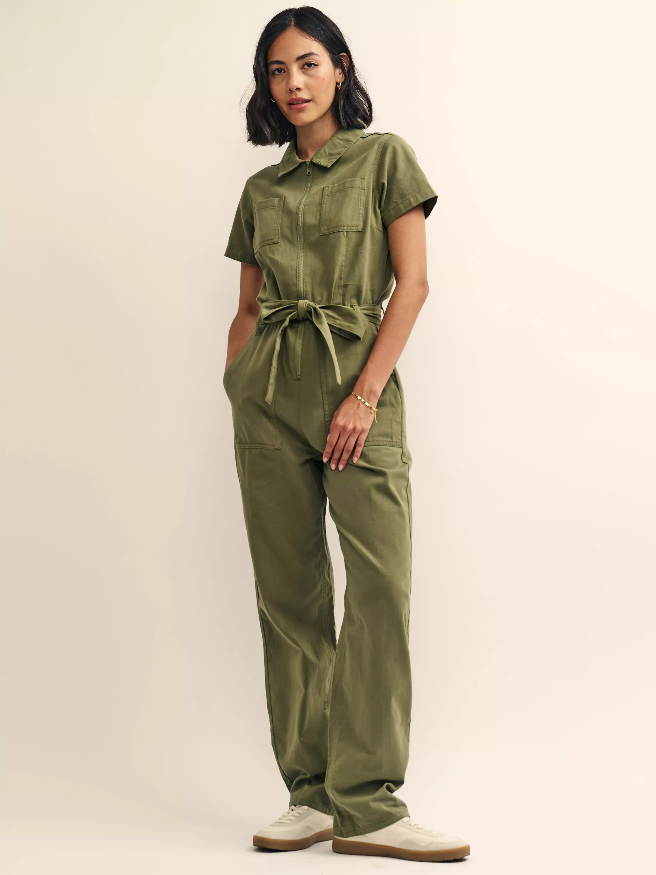 Some mornings require a quick decision and this jumpsuit is sure to deliver. Made entirely from organic cotton, the soft twill fabric will work hard from week to weekend. Plenty of pockets, a statement zip and the waist tie are inspired by the utility trend. Just add retro trainers and go.