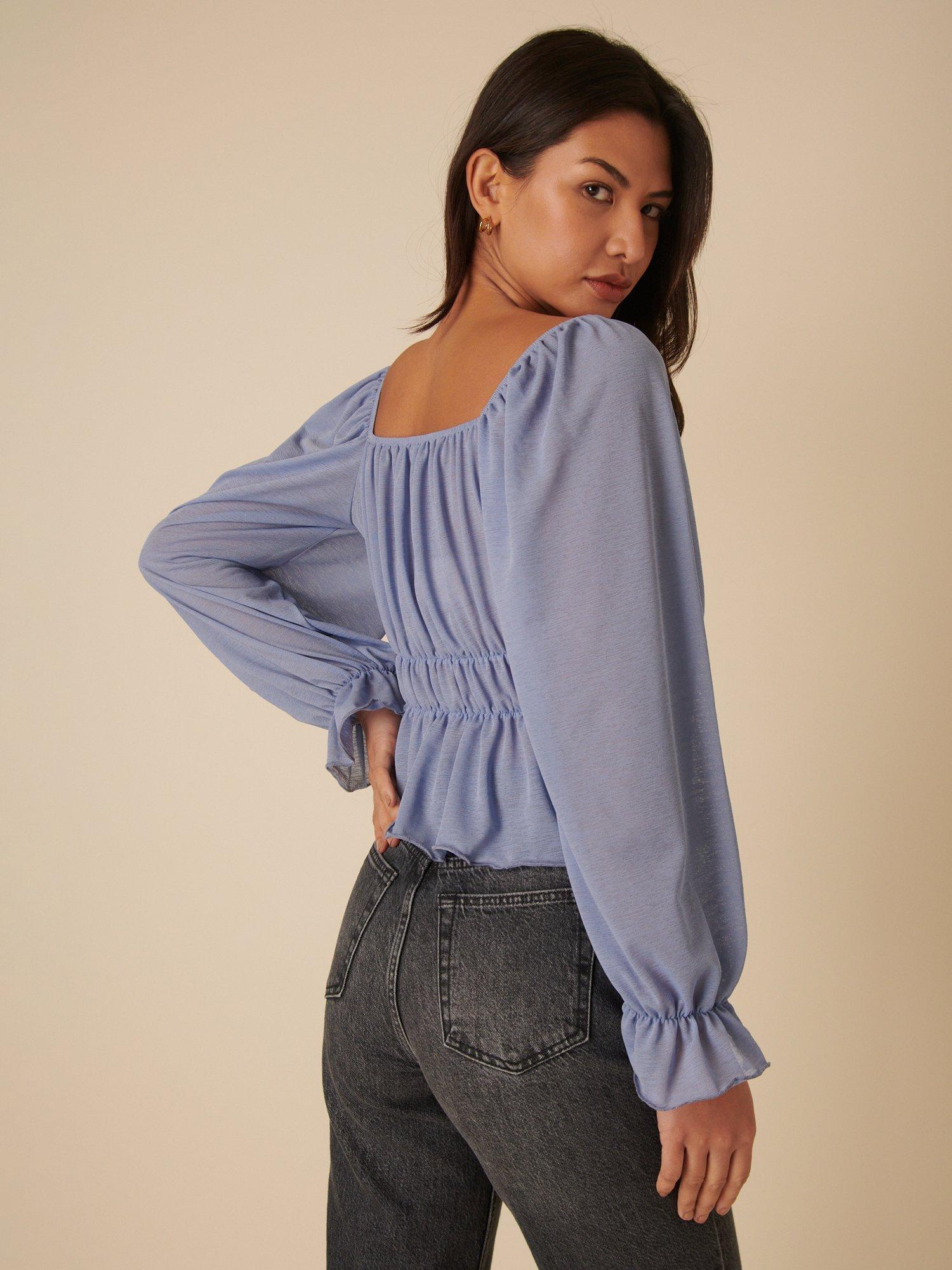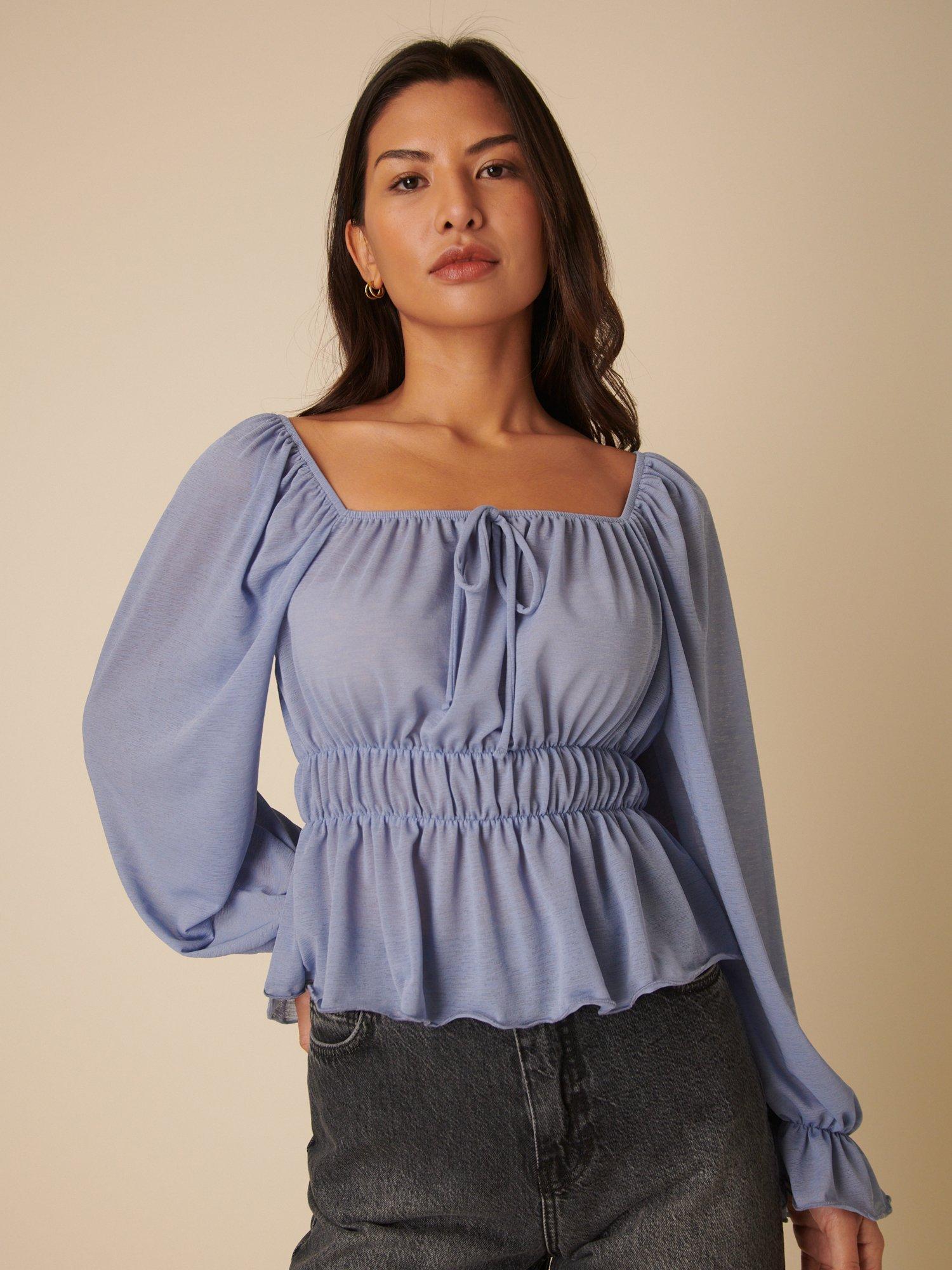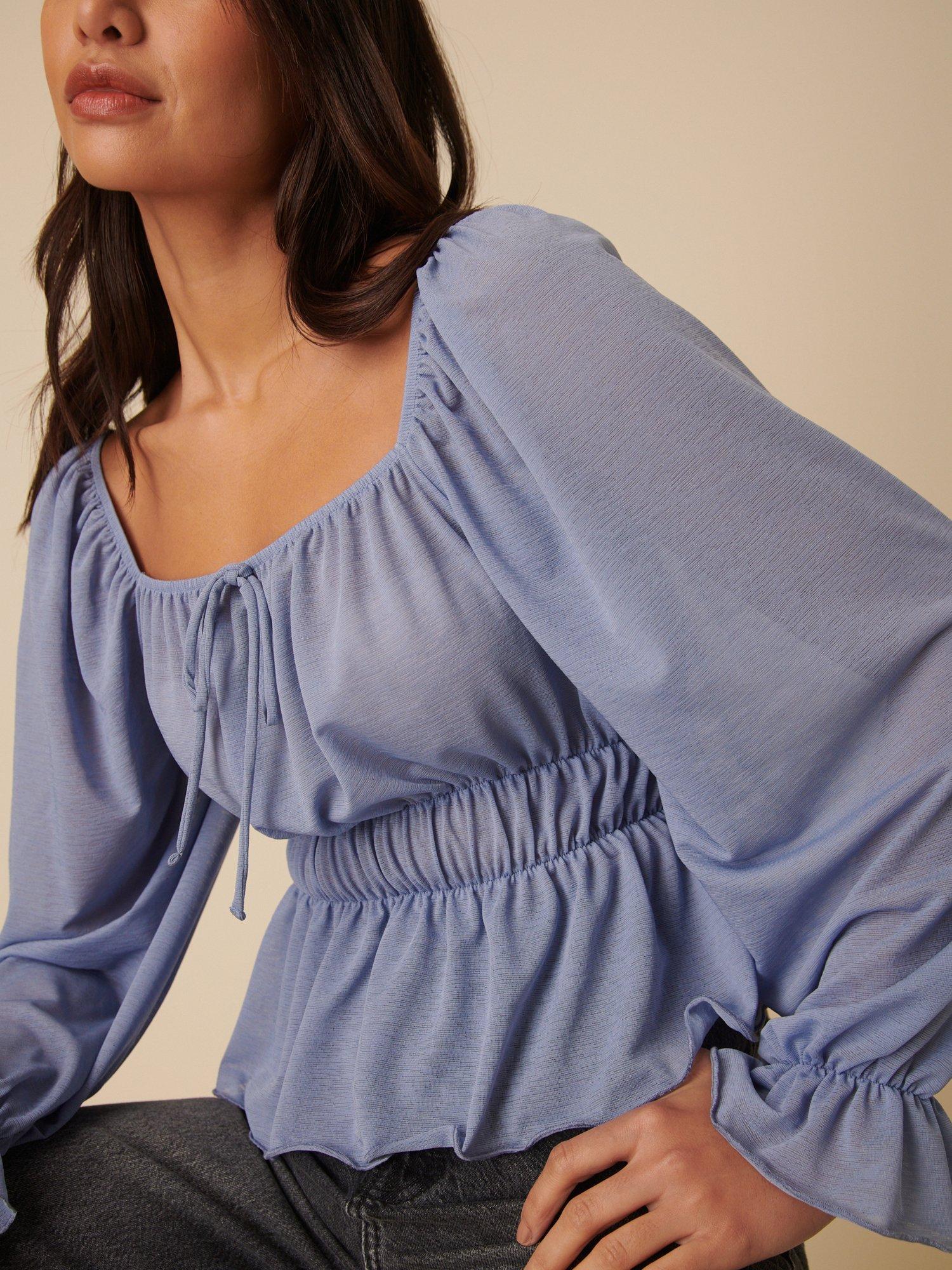 Oh so breezy. We love the long balloon sleeves and elegant square neckline on this blouse. The elasticated cuffs and trio of ties are the perfect finishing touches. Style with everything you already own.
