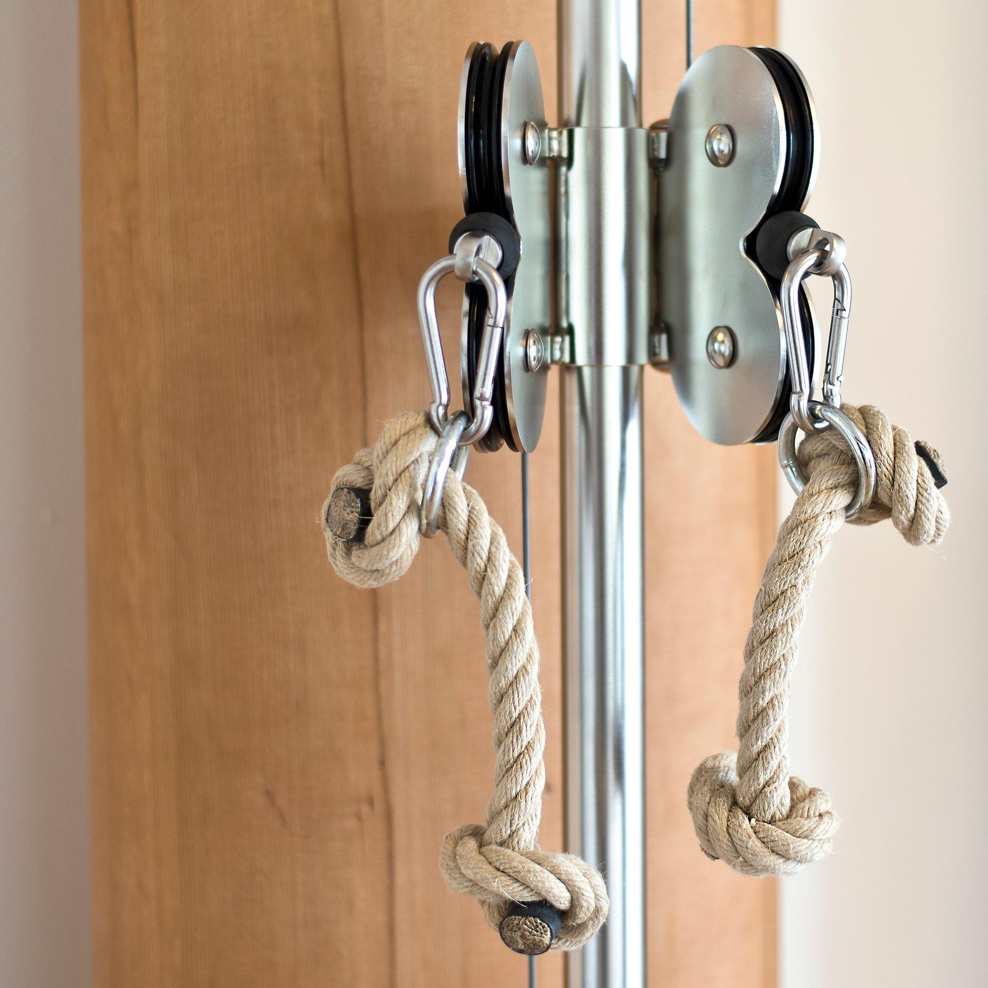 Save space with the adjustable pulley. Fix to a secure wall and you will have a cable pulley machine. Taking up such little space, you can enjoy exercises that would normally need a much larger piece of equipment.
