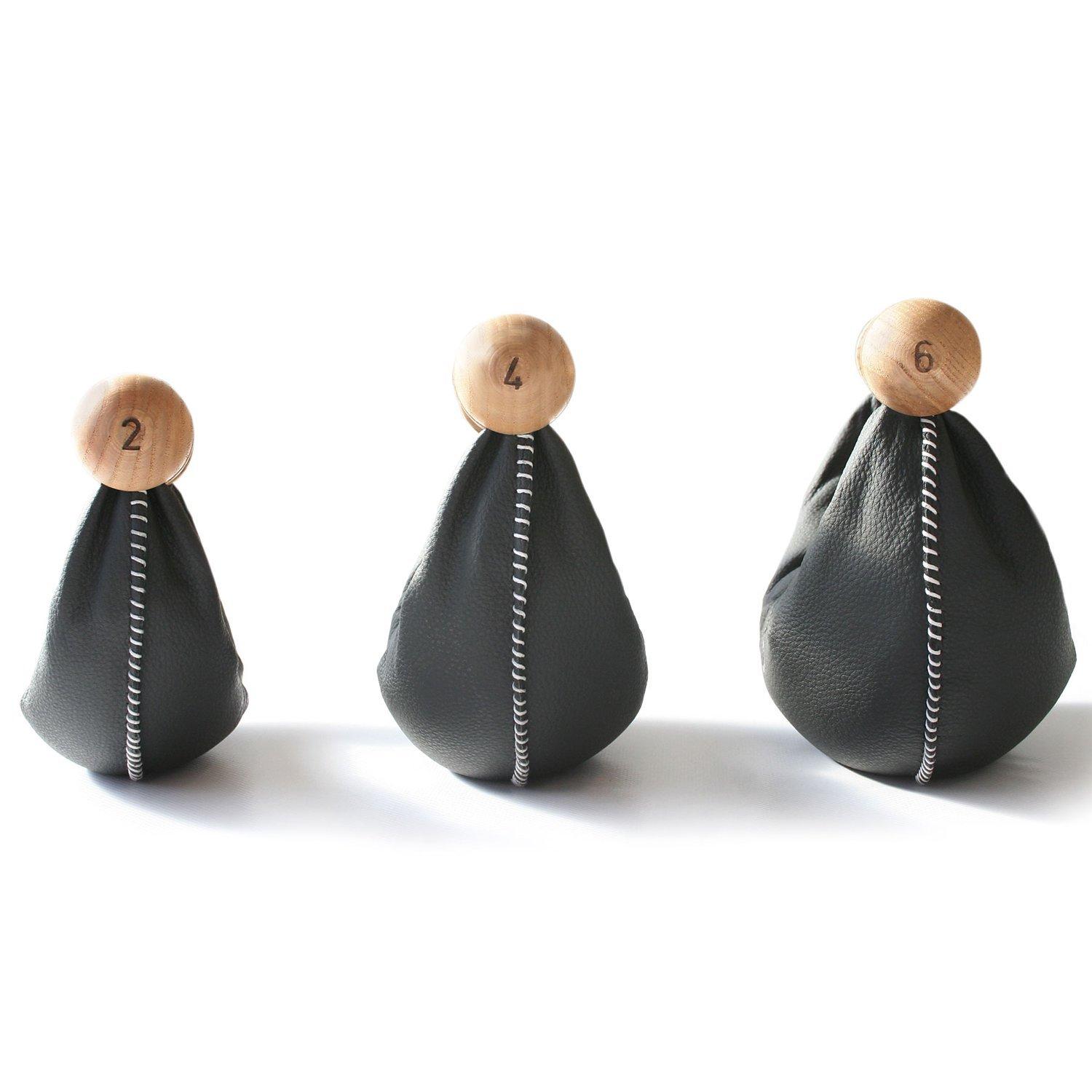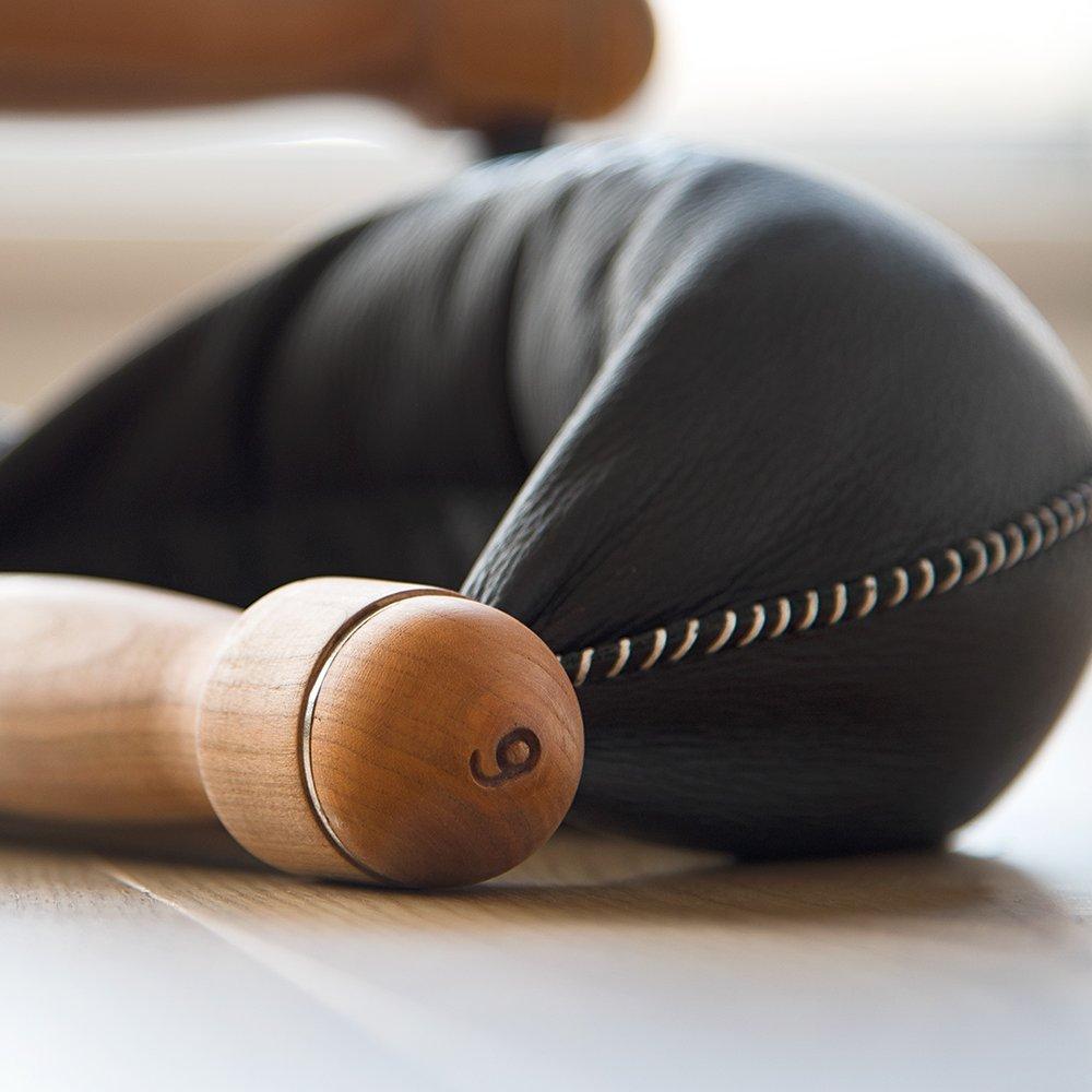 Each swing Bell consists of a solid wood handle attached to a hand-stitched artificial leather case. For weight, each case contains tiny iron pellets that support the dynamic imbalance of your movement by shifting within the case - delivering extra stimulus for your joints, muscles and connective tissue.