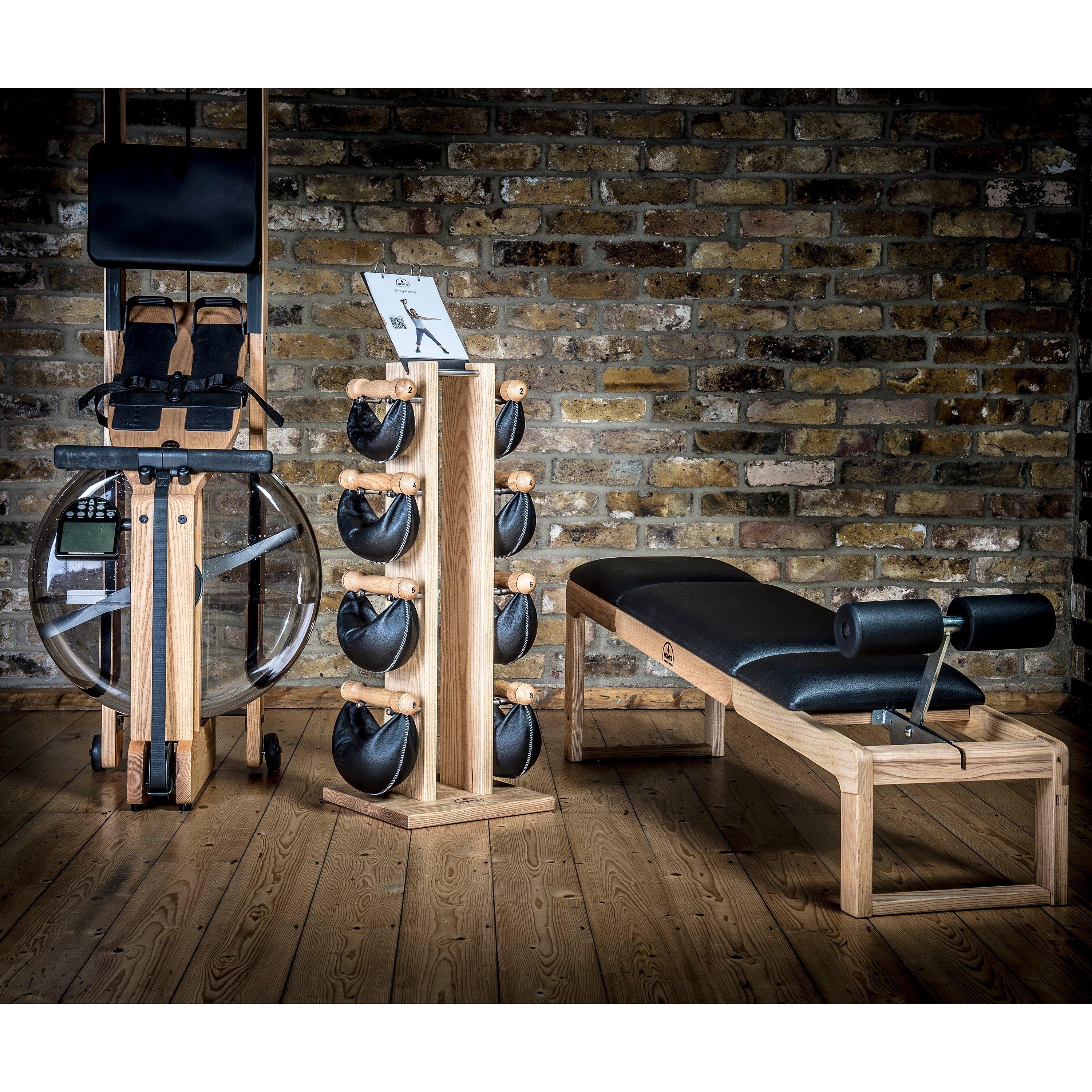 Workout with this stylish and practical alternative to the traditional kettlebell, the NOHrD Swing Tower Set. Included are four pairs of swing bells: 2, 4, 6, and 8 kg.