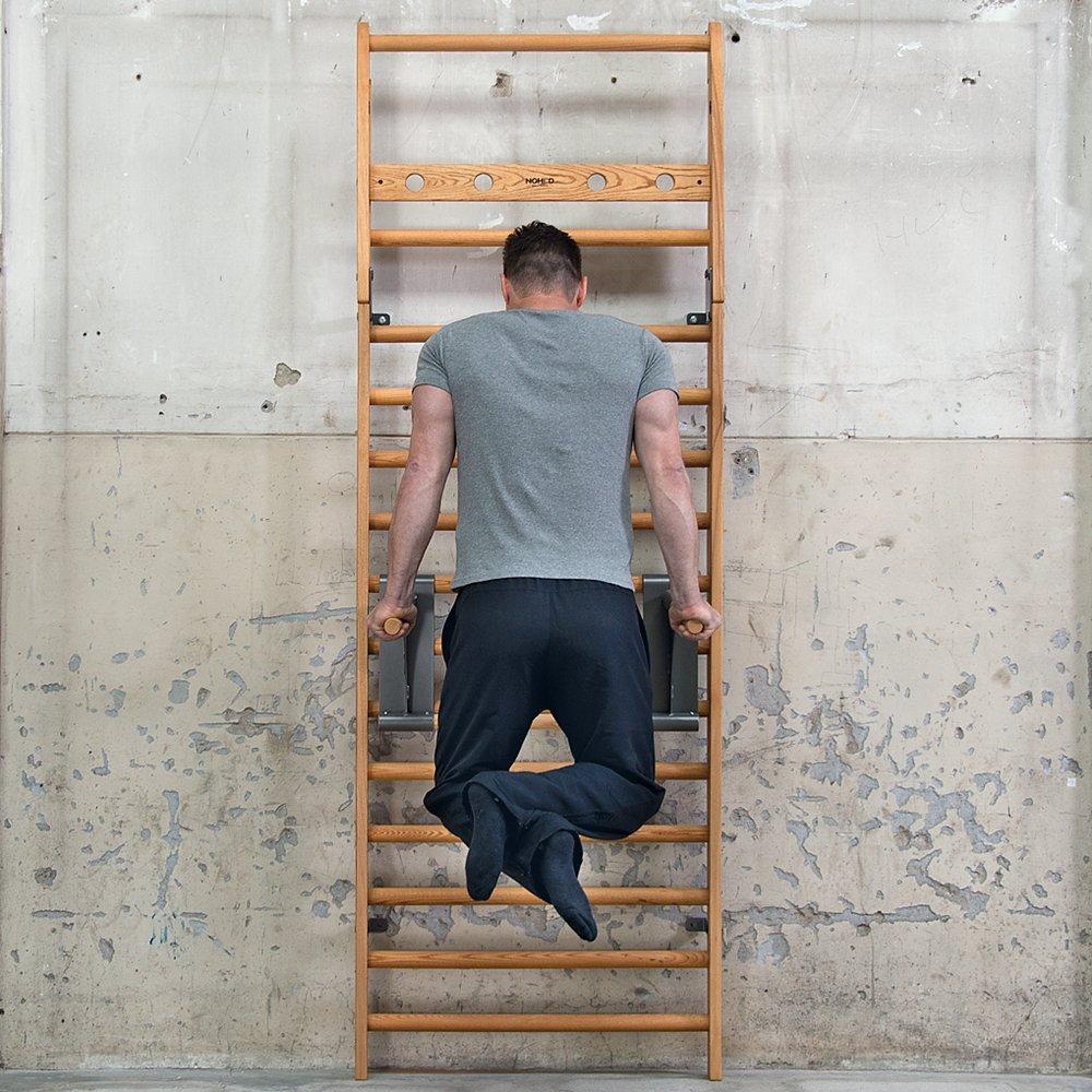 Simply hook this handy attachment onto the wall bars to perform a wide range of bodyweight exercises such as dips, pull ups and press ups.