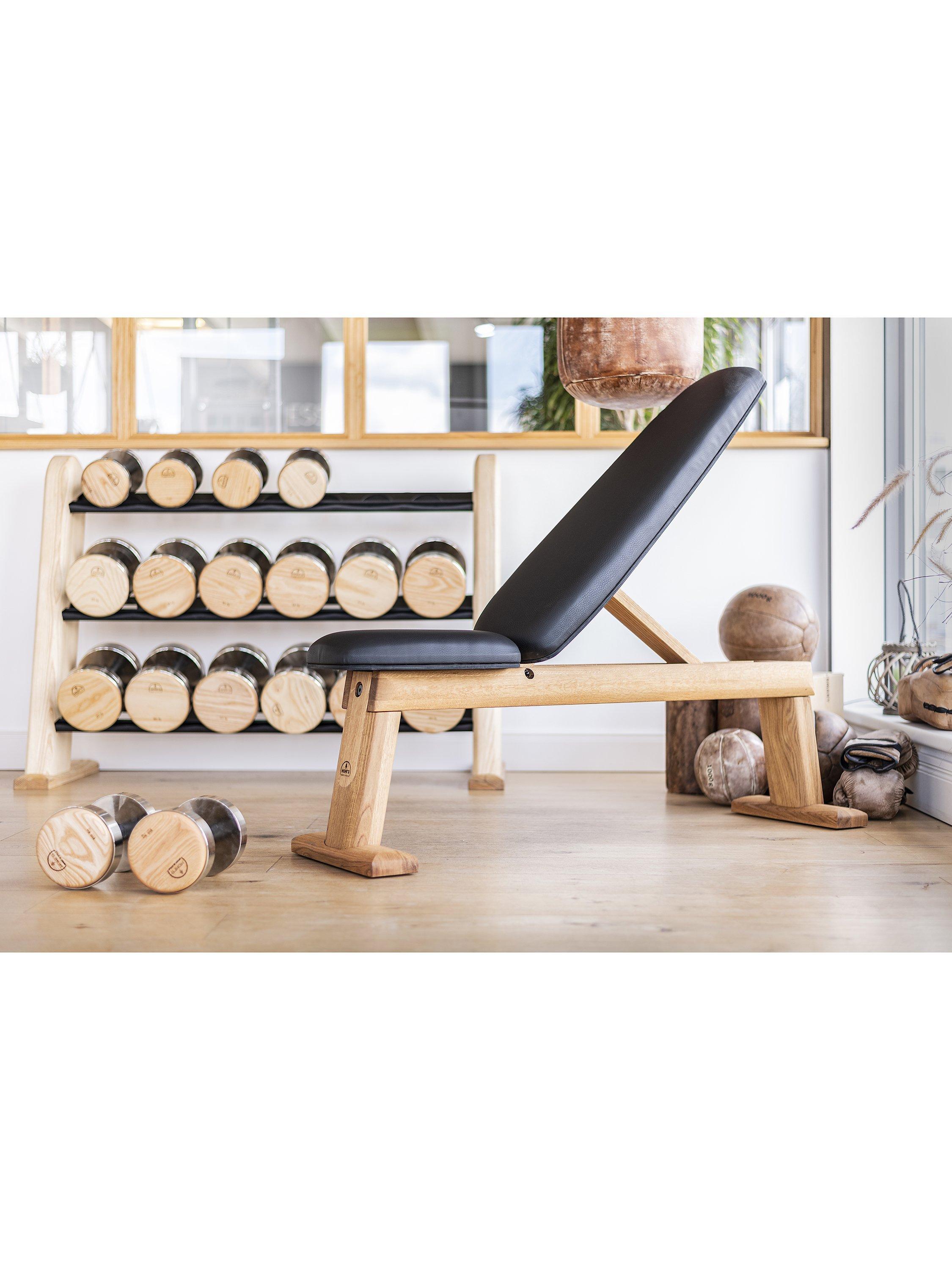 Don't think of this just as a gym accessory though. Made by hand from high-quality and durable solid wood, the Ash finish gives it a modern look that allows you to set up your gym in any room without disturbing the tranquillity of your home.