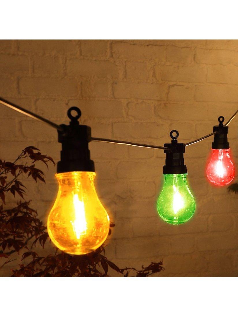 Ten Multicolour Bulb Festoon Lights with a NOMA EasyTimer included, making them easy to set up. The light chain length is 3.8m with a 3m lead cable. Connect up to eight sets of these from one power source to create the right ambiance for your garden or patio.