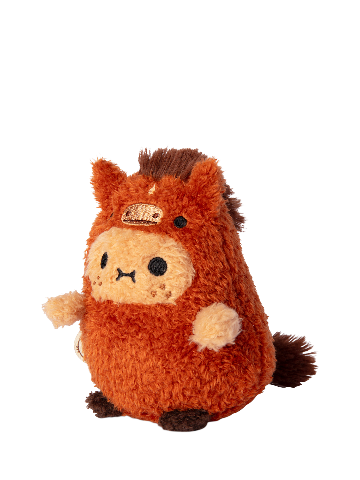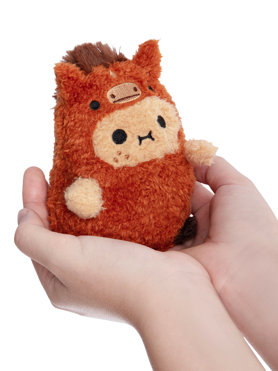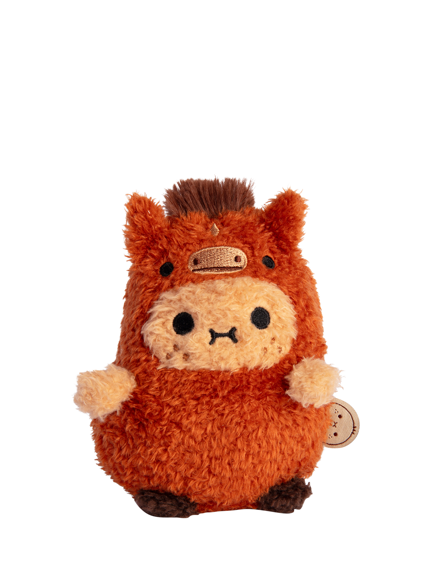 This mini potato plushie is wearing their comfiest little horse suit, complete with an incredibly fluffy tail and a fabulous soft mane for you to stroke. This is one graceful spud.