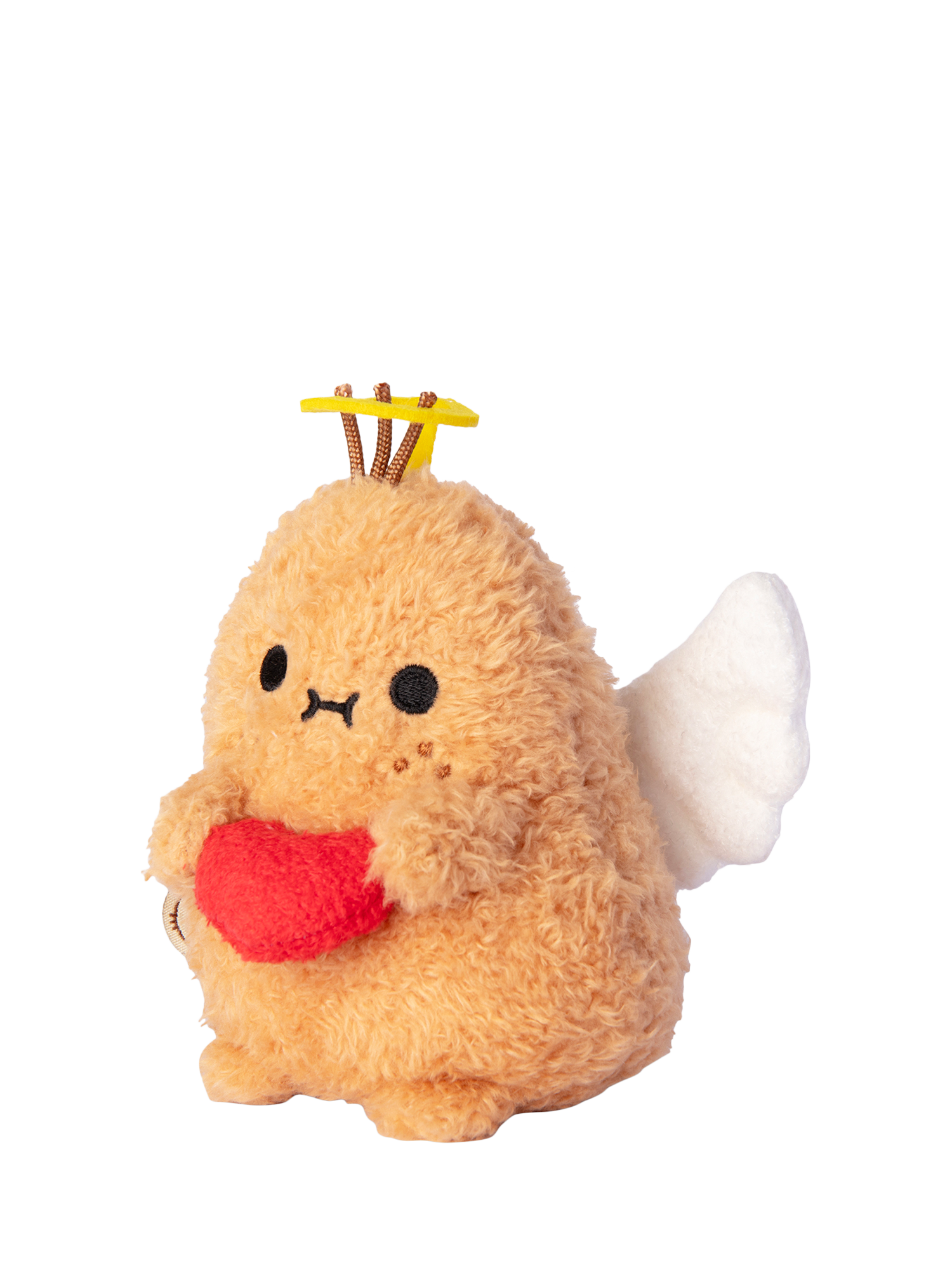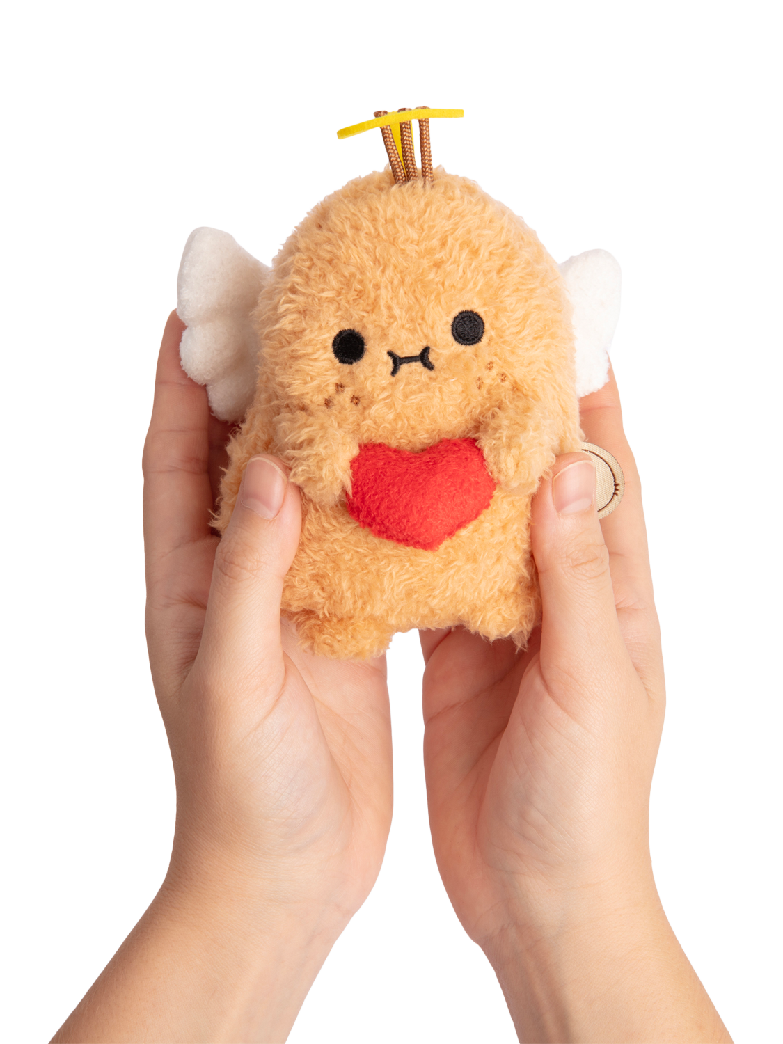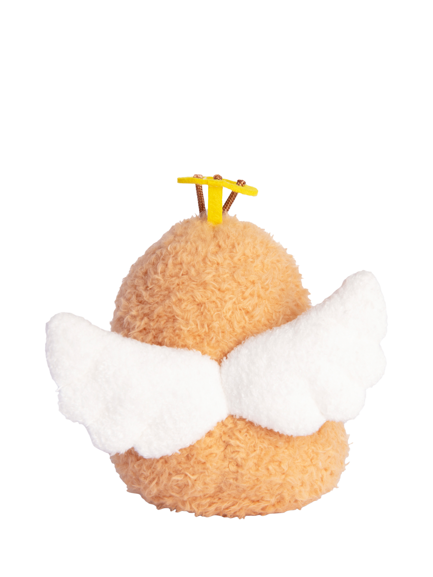This spud is made from super soft brown fabric, with tiny angel wings, a golden halo and a love heart in their hands. And they're stuffed to the brim for those extra chubby cuddles.
