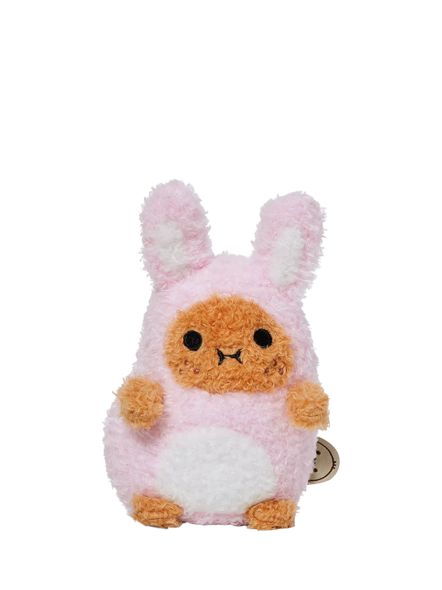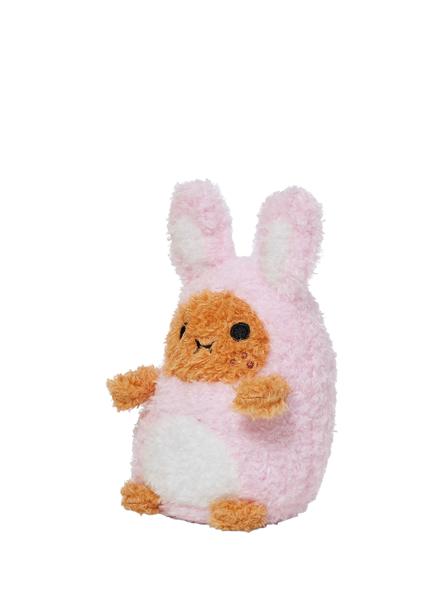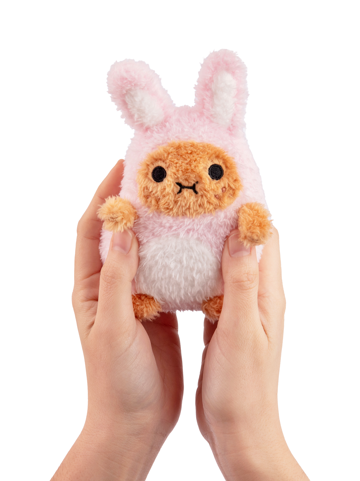 This mini potato plushie is made from super soft fluffy pink fabric, with soft little rabbit ears, a pompom tail and stuffed to the brim for those extra chubby cuddles.